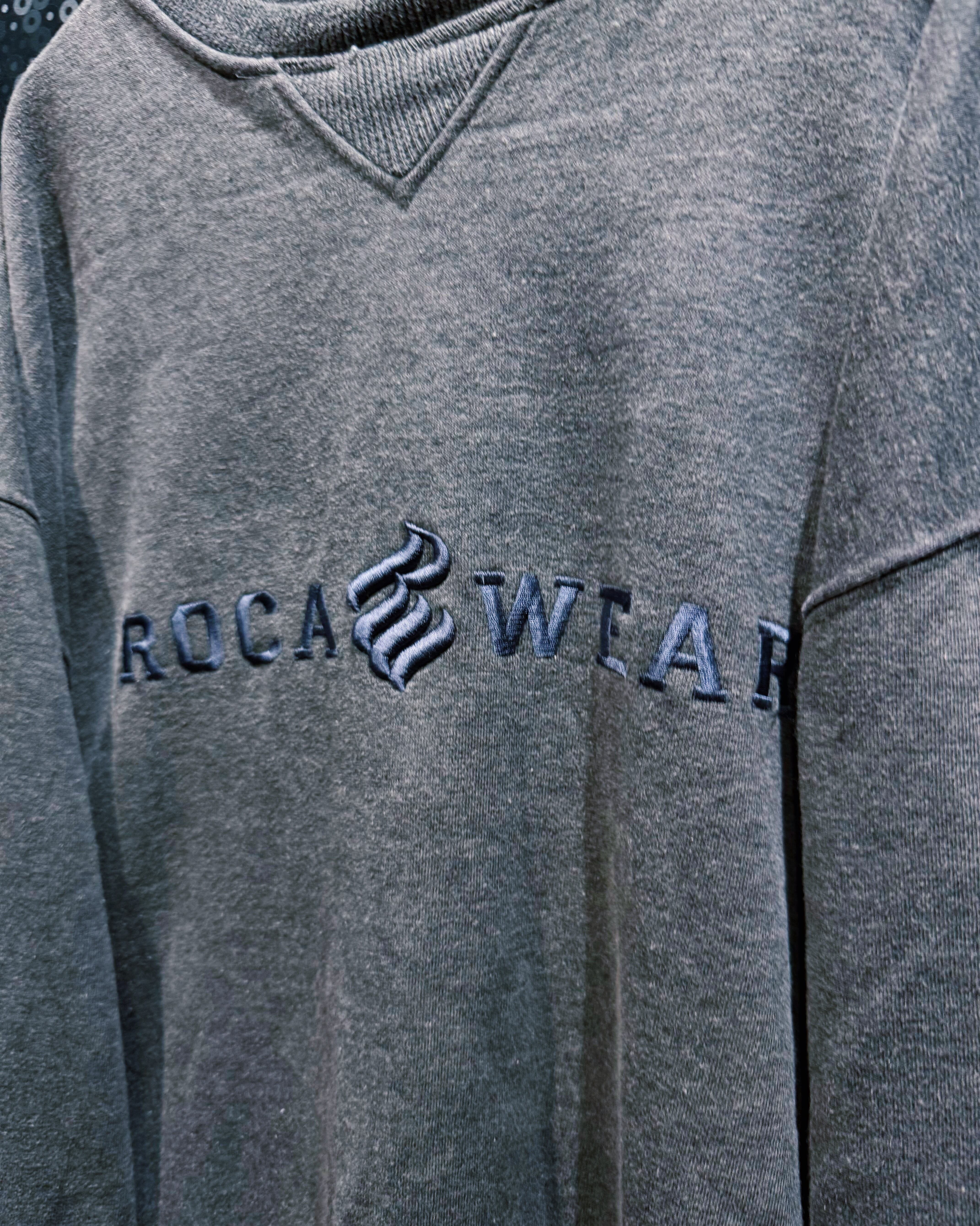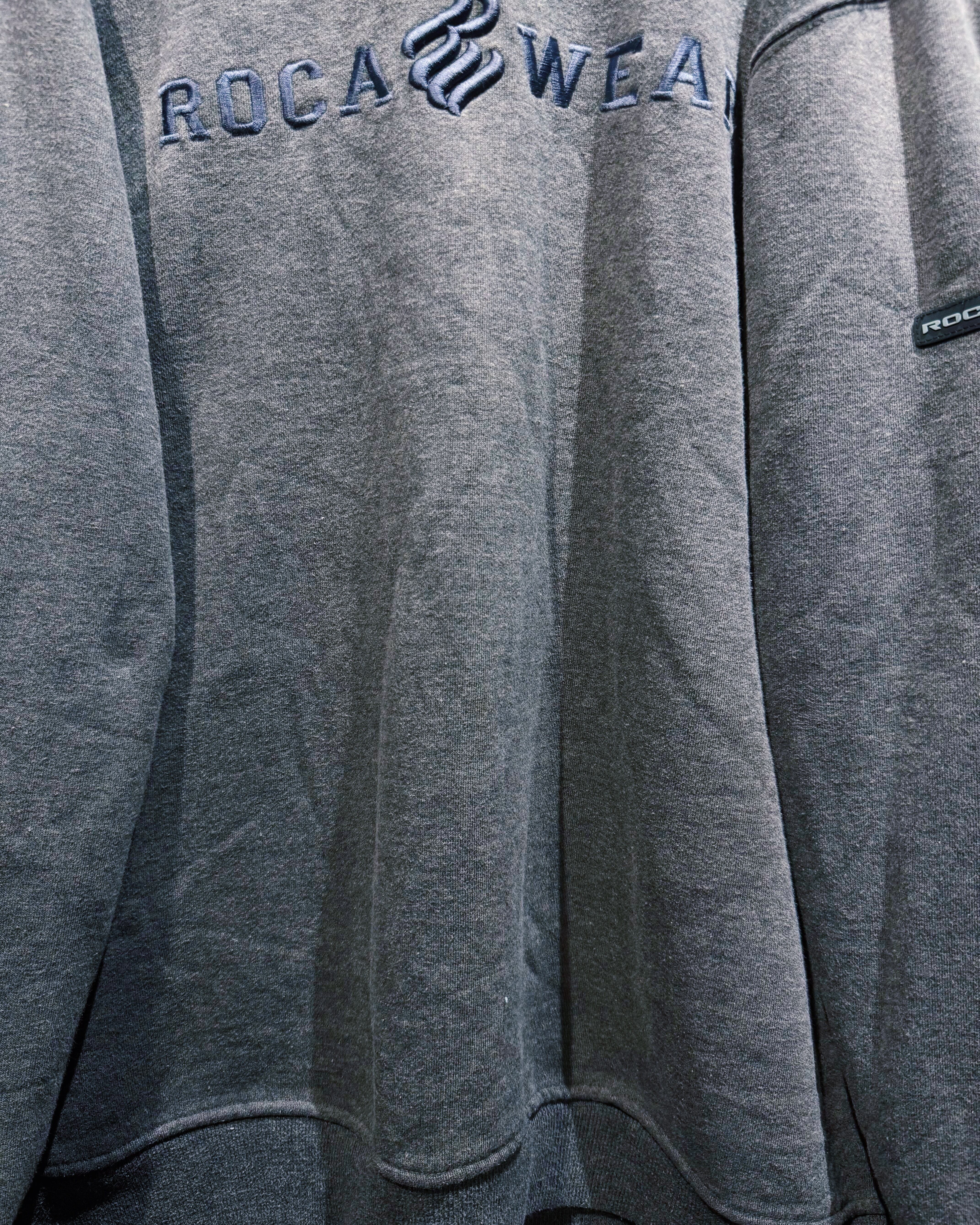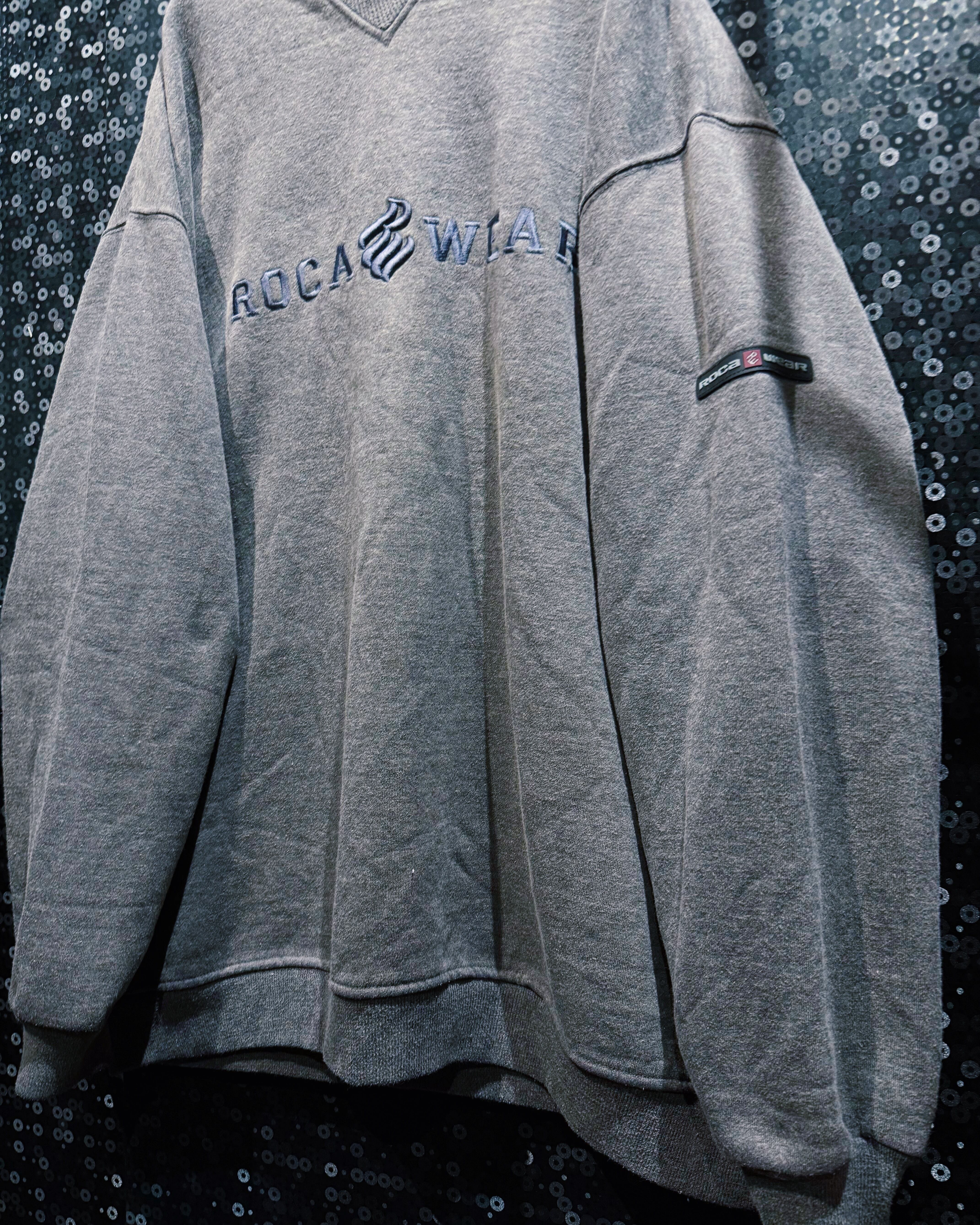 無駄のないグレーの単色に、深いネイビーのロゴ刺繍が映える洗練されたデザイン。ストリートのヘリテージをそのまま纏える、Rocawear黄金期の名残を感じるオーバーサイズヴィンテージスウェット。
