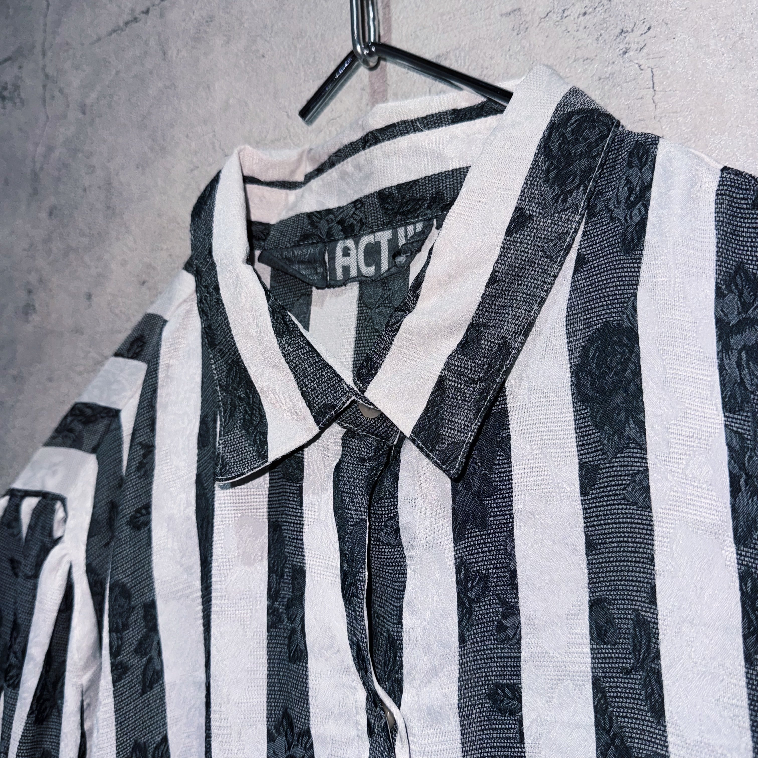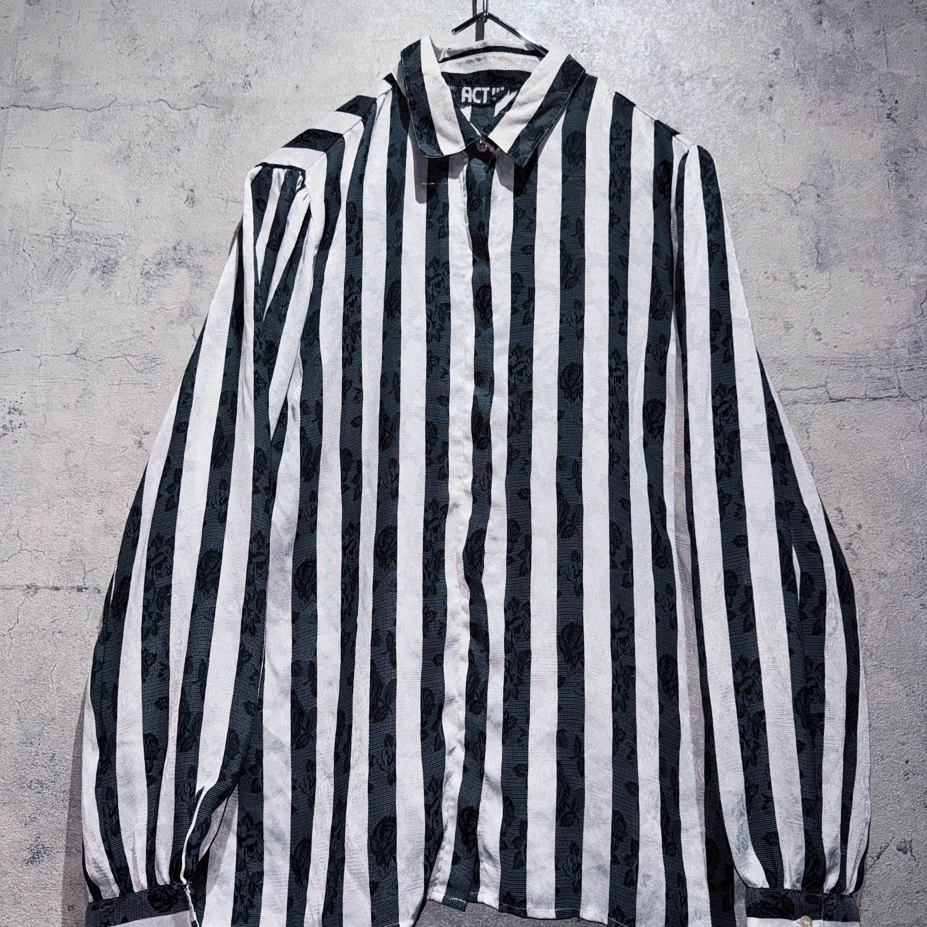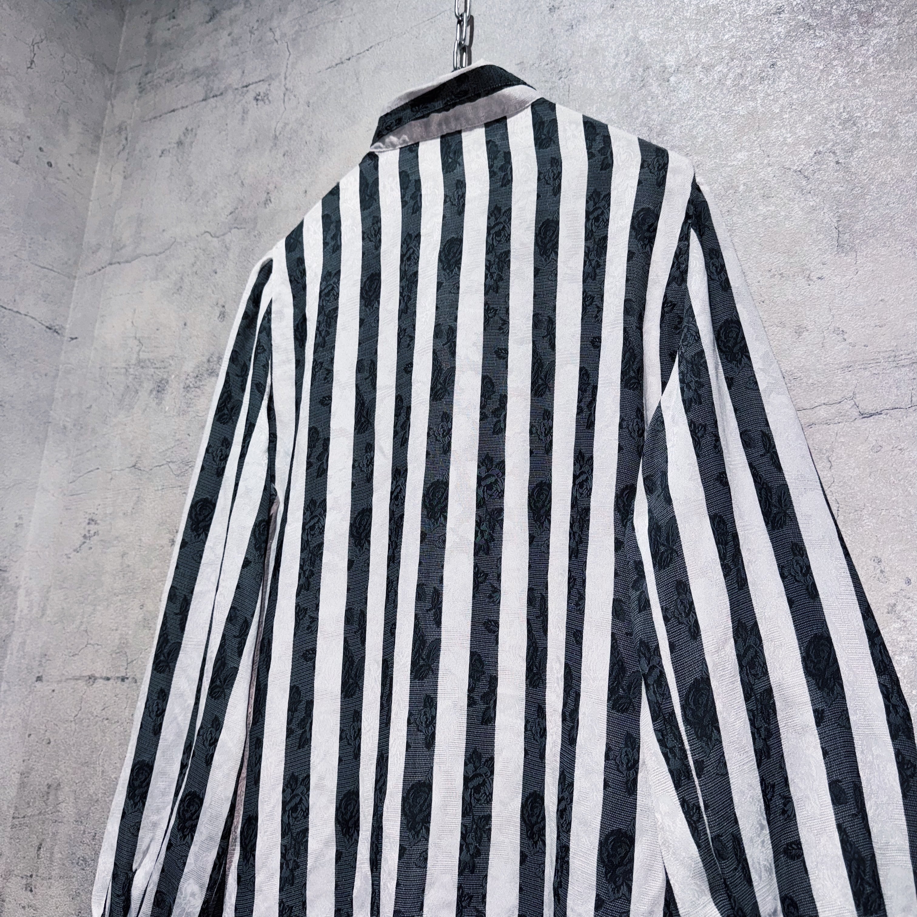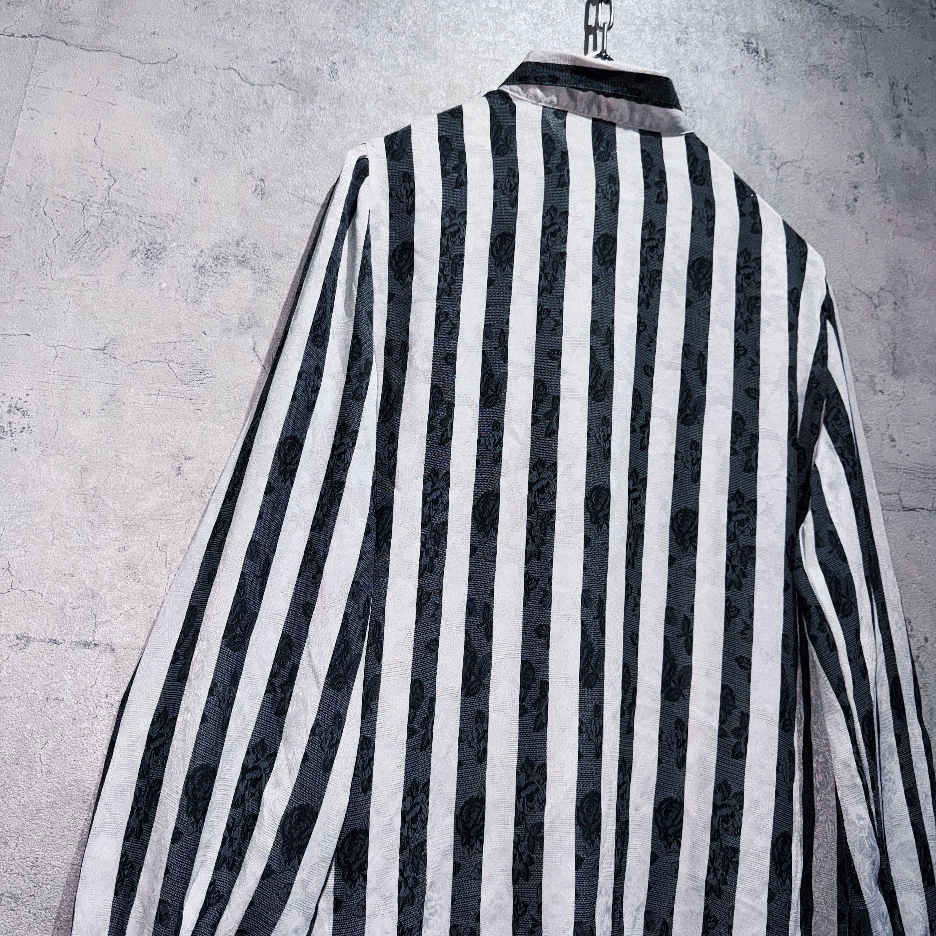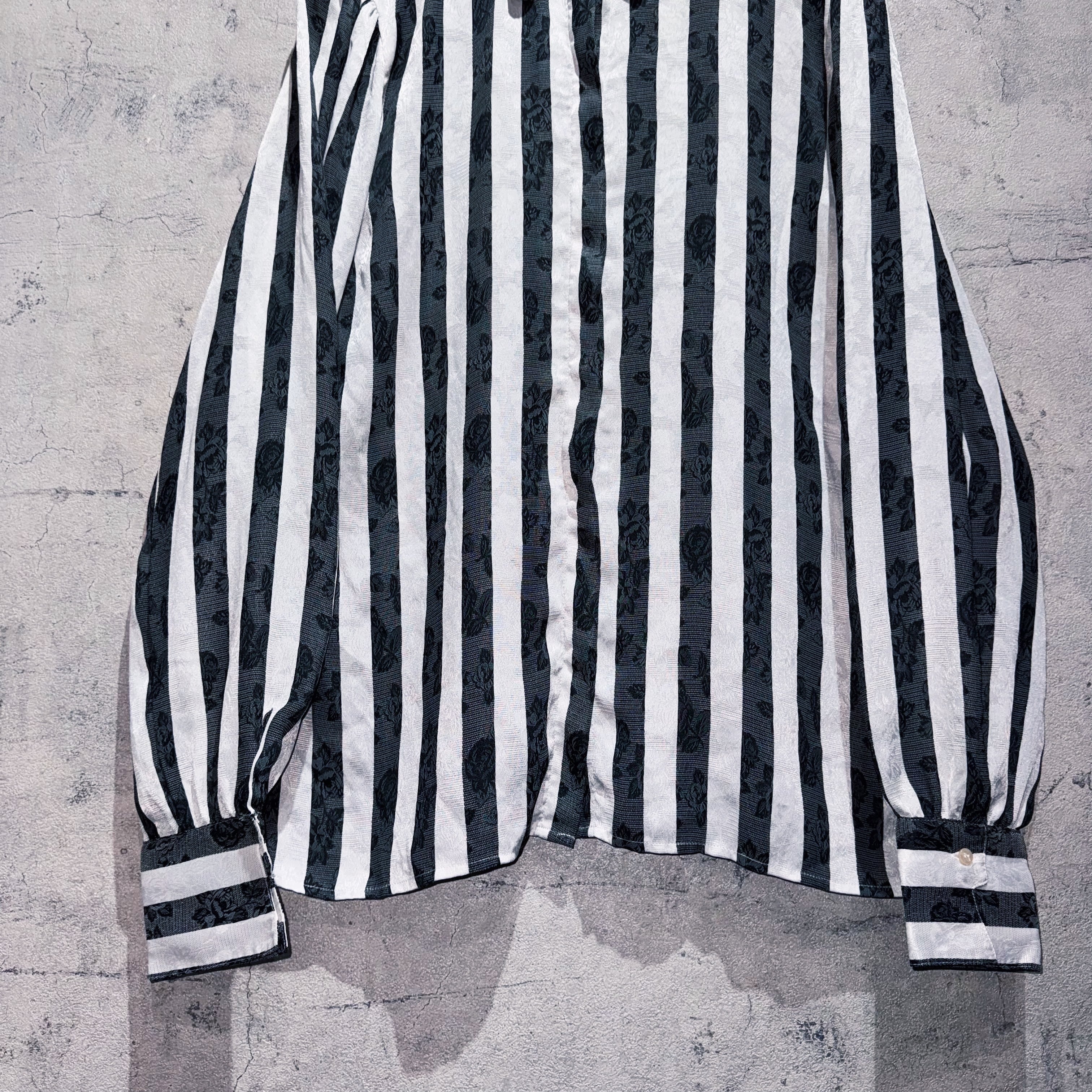 ヴィンテージビューティフルフラワーパターンデザインストライプシャツ