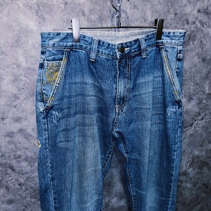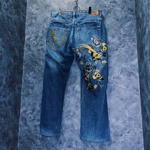 【doppio】00’s vintage “Artful Dodger” yellow bird embroidery design denim pants