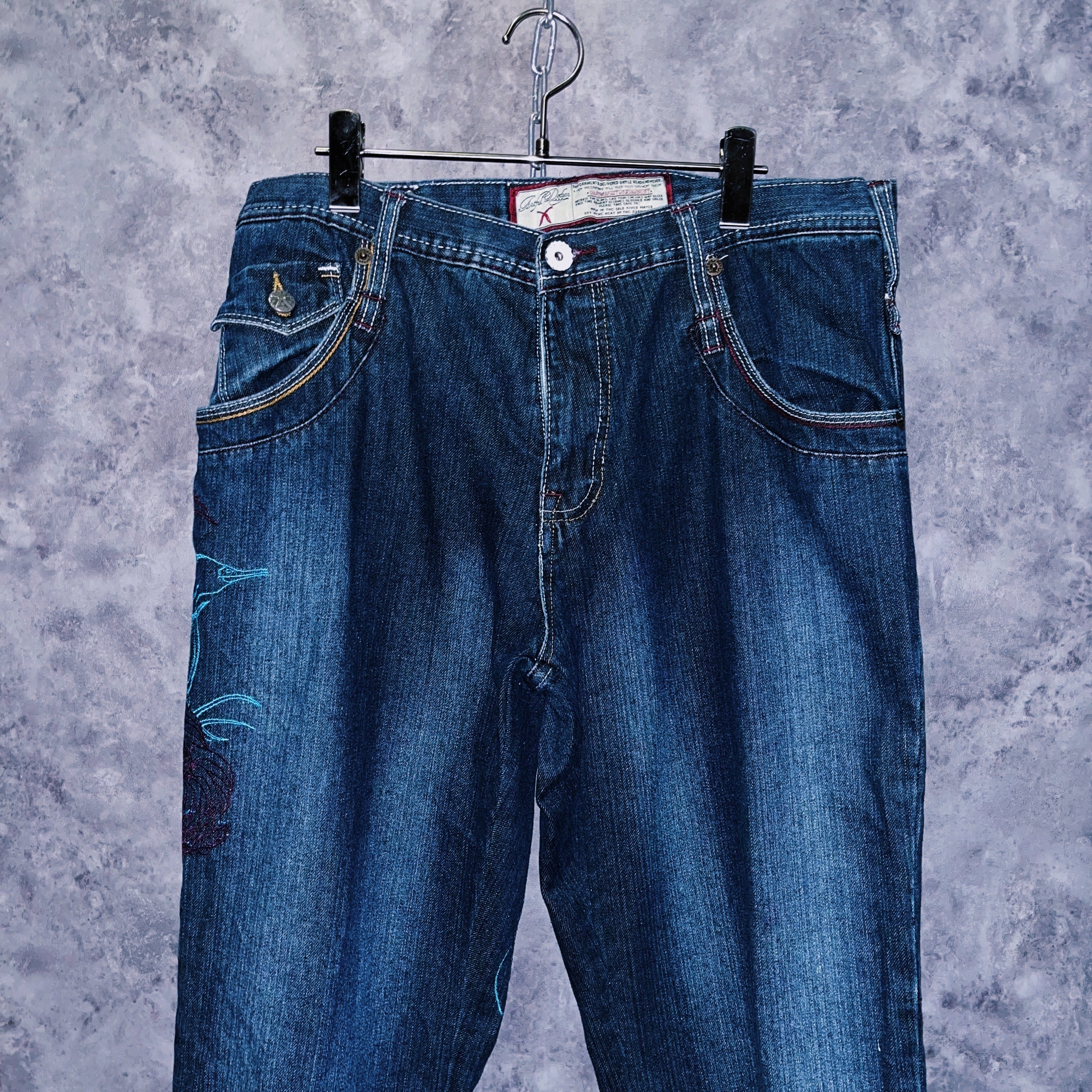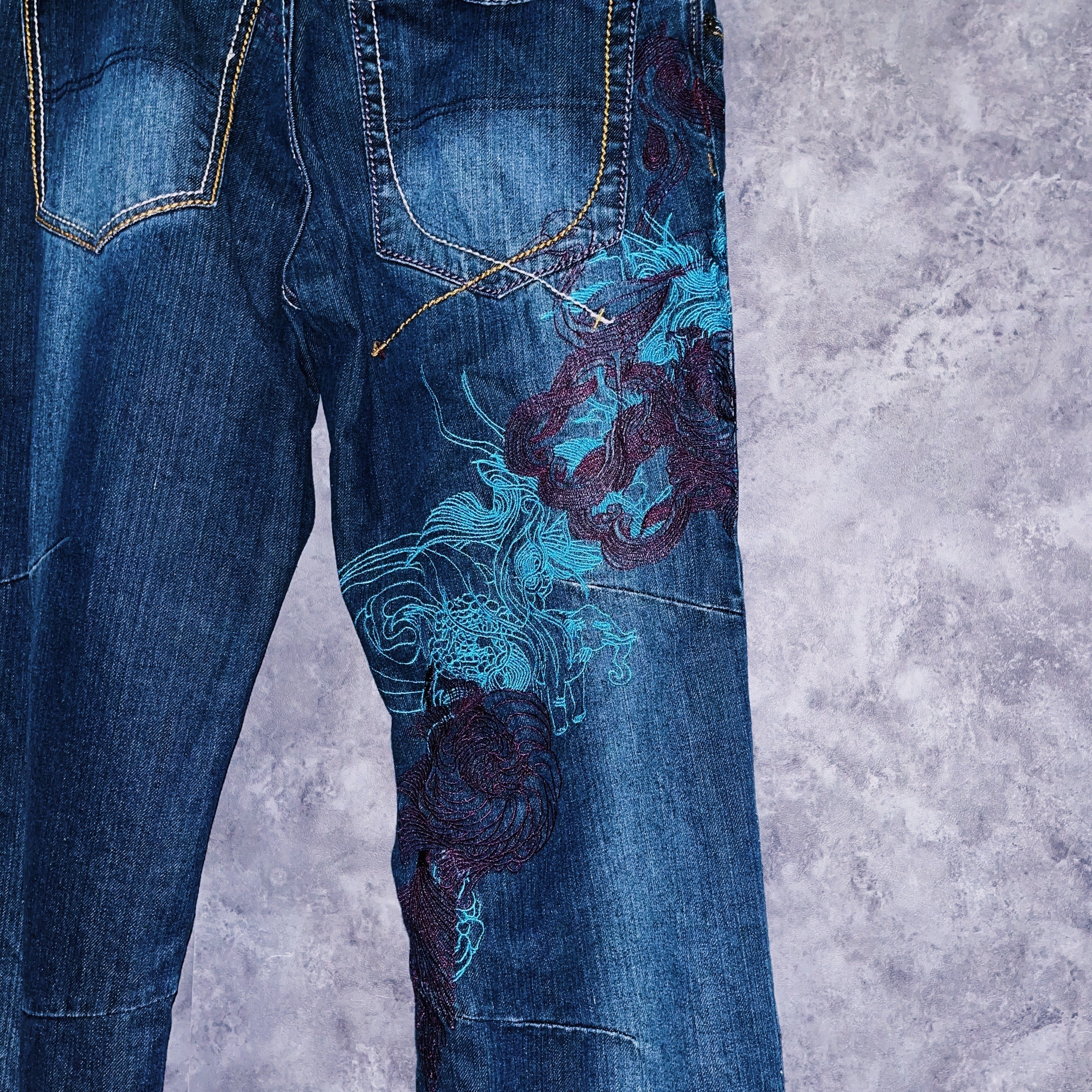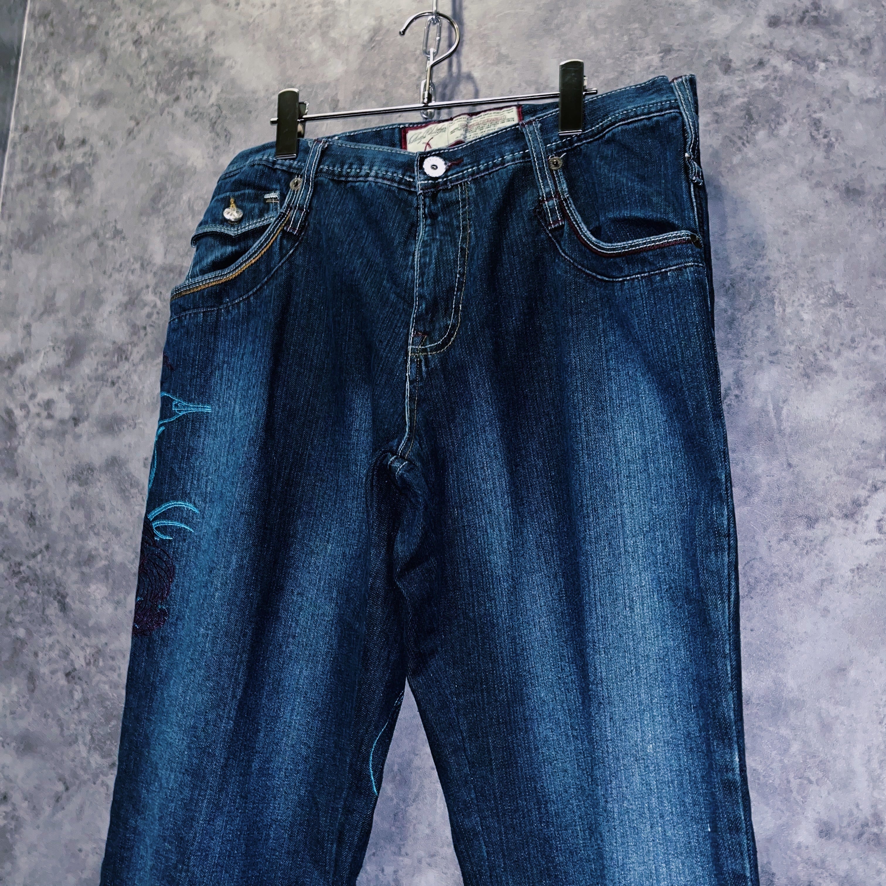 00’s vintage “Artful Dodger” flower embroidery design denim pants