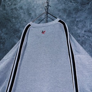 シンプルなグレーカラーのボディにストライプデザイン。どんなアイテムとも相性よく馴染んでくれ、かなりオーバーなサイジングはストリートHIPHOPスタイルのコーデにおいて輝く主役を担ってくれるでしょう。