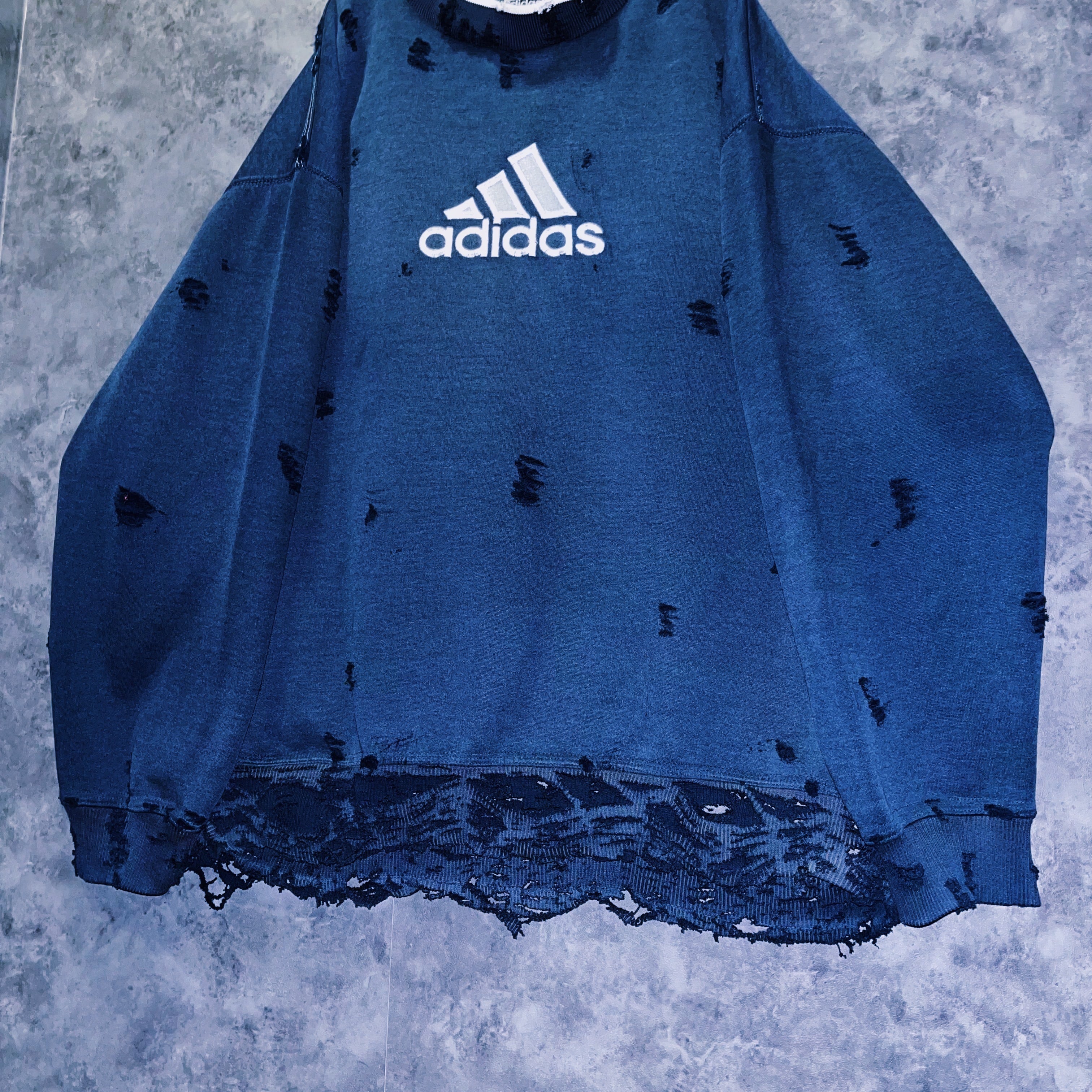 vintage “adidas” performance logo embroidery design boro custom sweat pullover