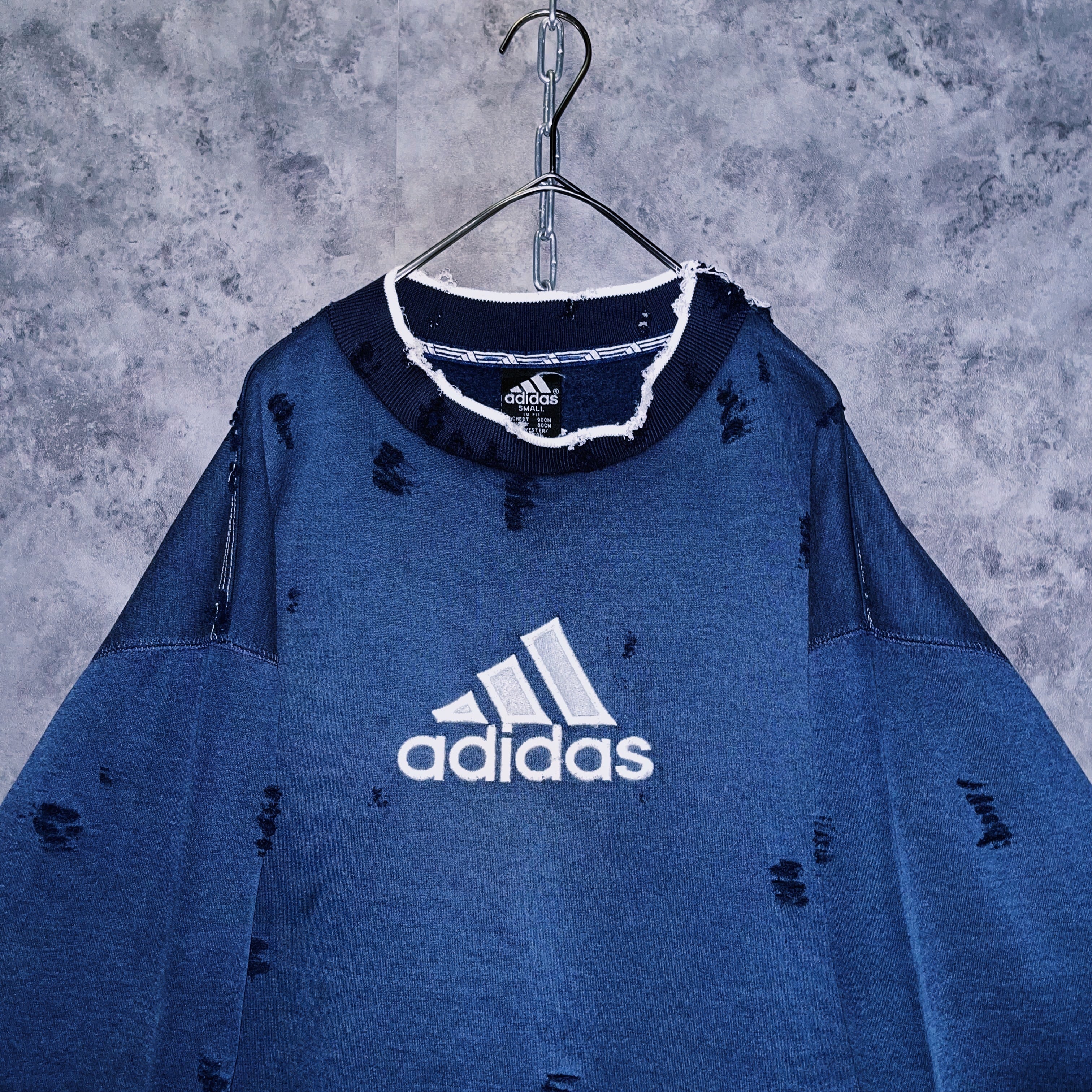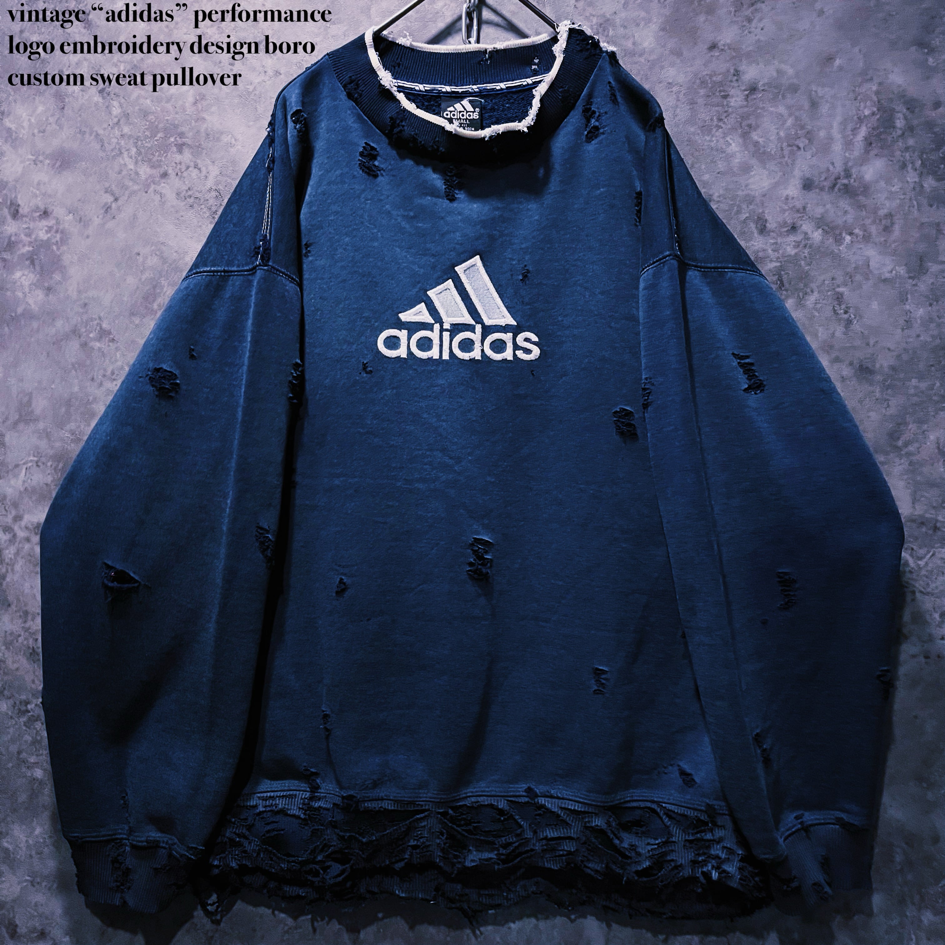 ヴィンテージ“adidas”パフォーマンスロゴエンブロイダリーデザインボロカスタムスウェットプルオーバー