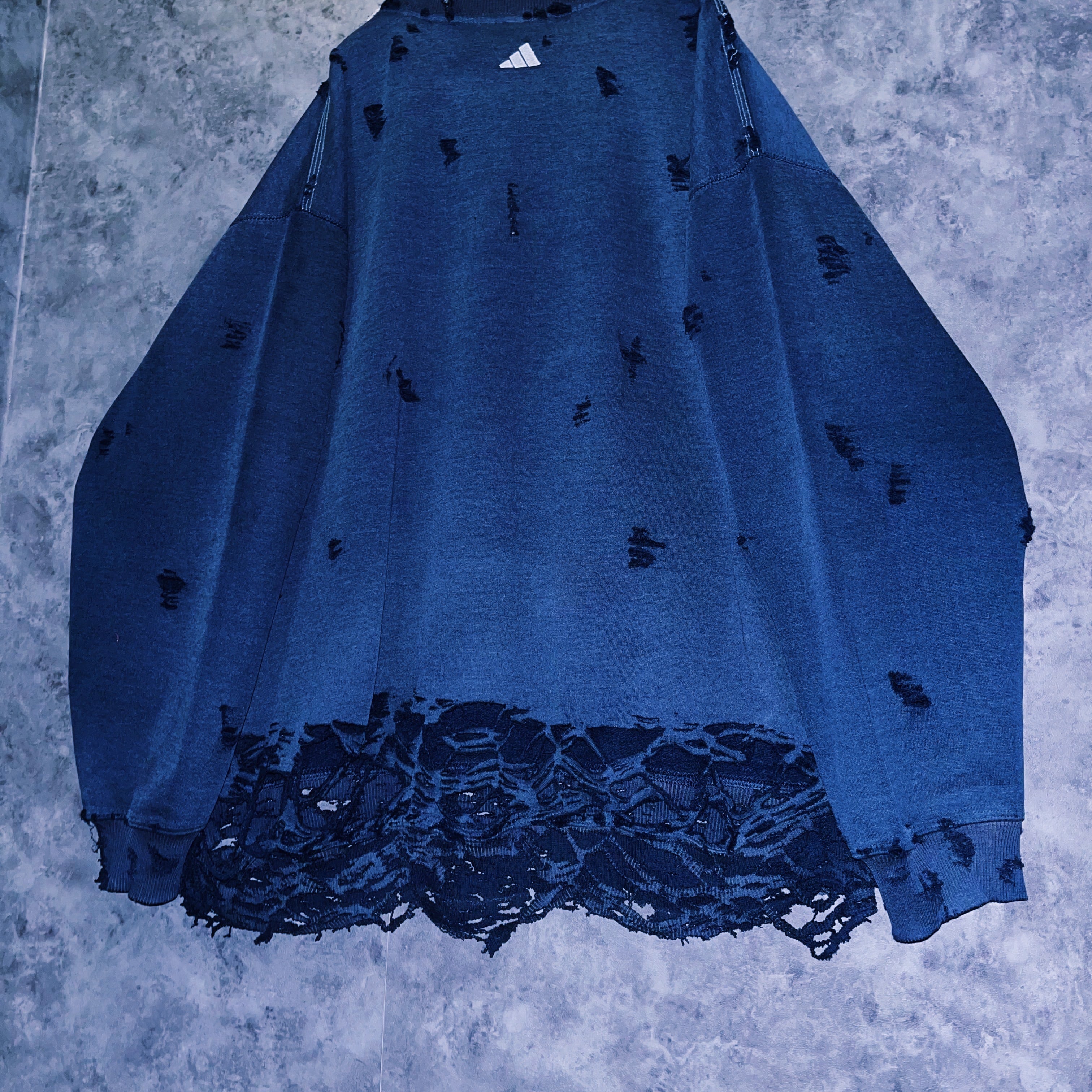 【doppio】vintage “adidas” performance logo embroidery design boro custom sweat pullover