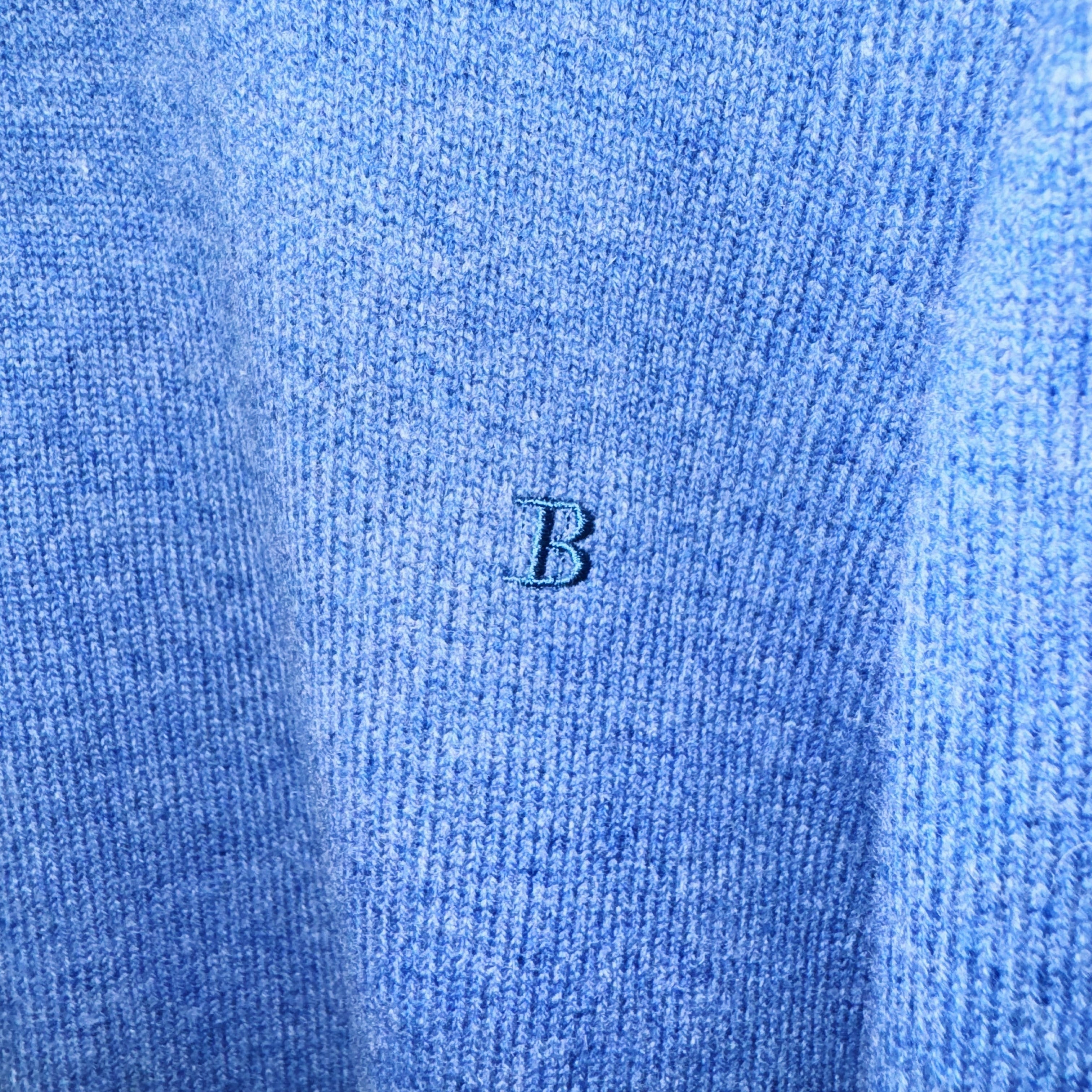 色合いが非常に良いベイビーブルーのボディに胸元には「B」とブランドの頭文字の刺繍があしらわれたベーシックなプルオーバーニット。