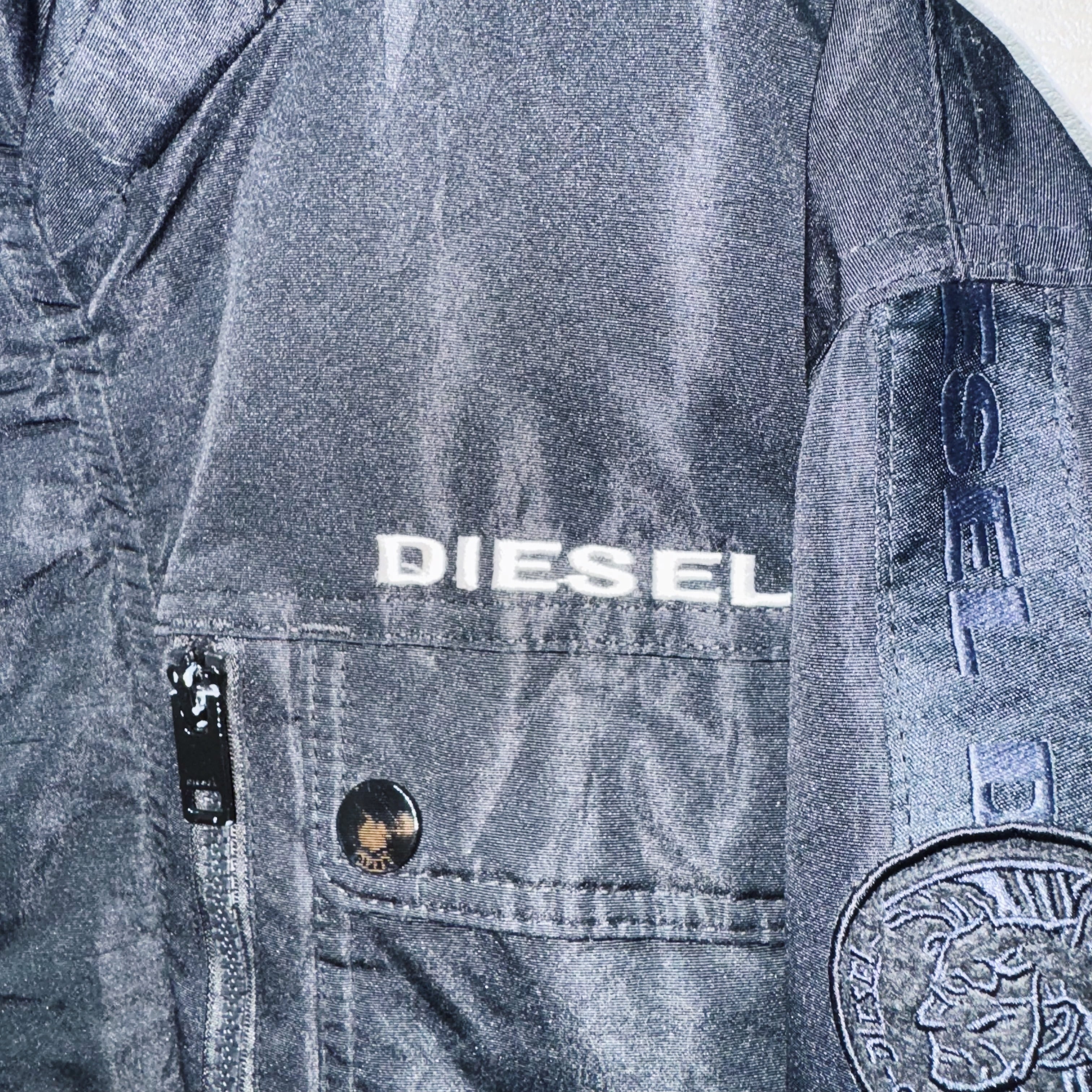 ブランド名が刻まれたラインストライプを両袖にあしらい、袖にはディーゼルの象徴的なロゴでもある「ブレイブマン」をあしらったポリスマンジャケット。