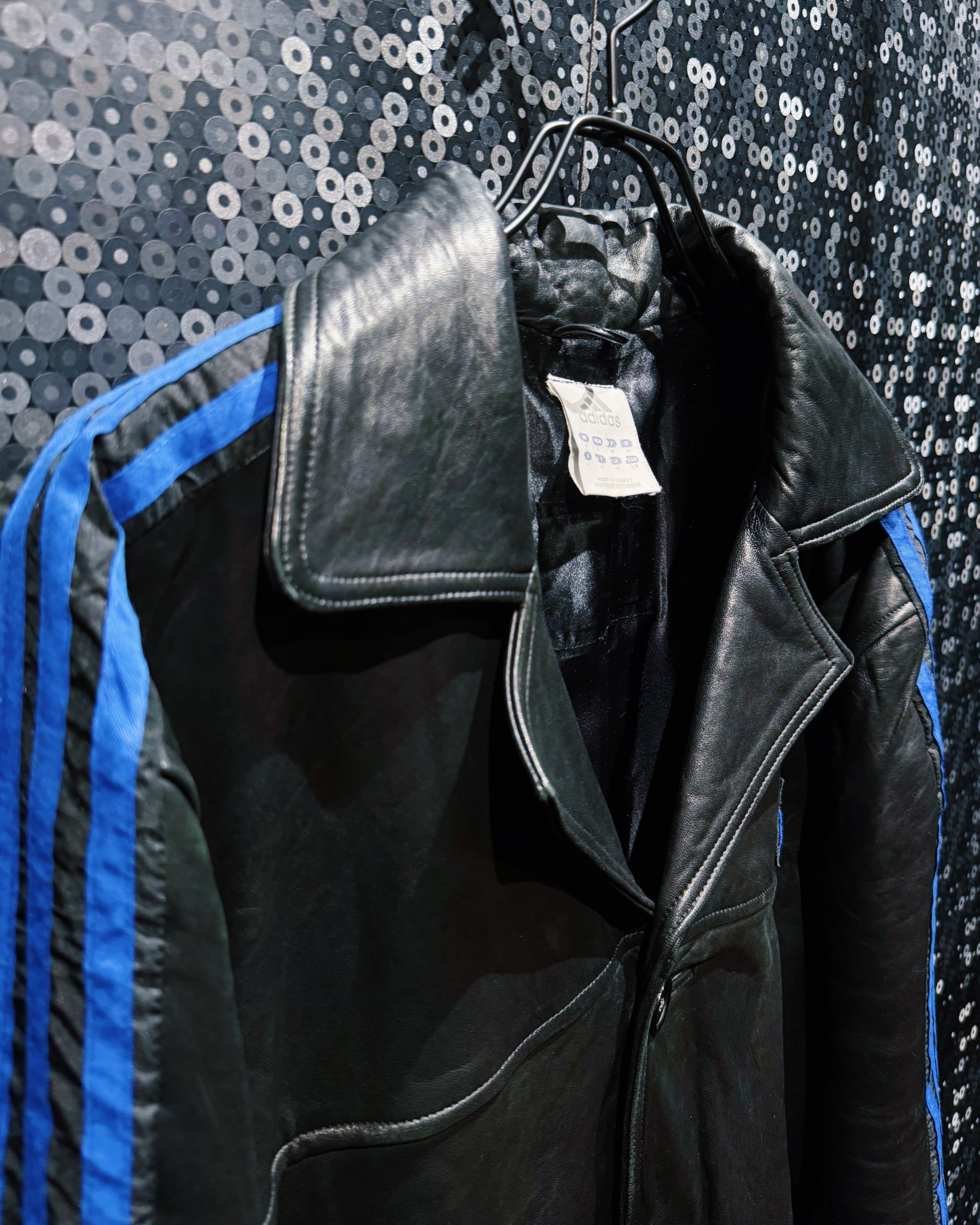 【ÆIEM】"original remake"vintage adidas Blue three stripe tailored leather jacket