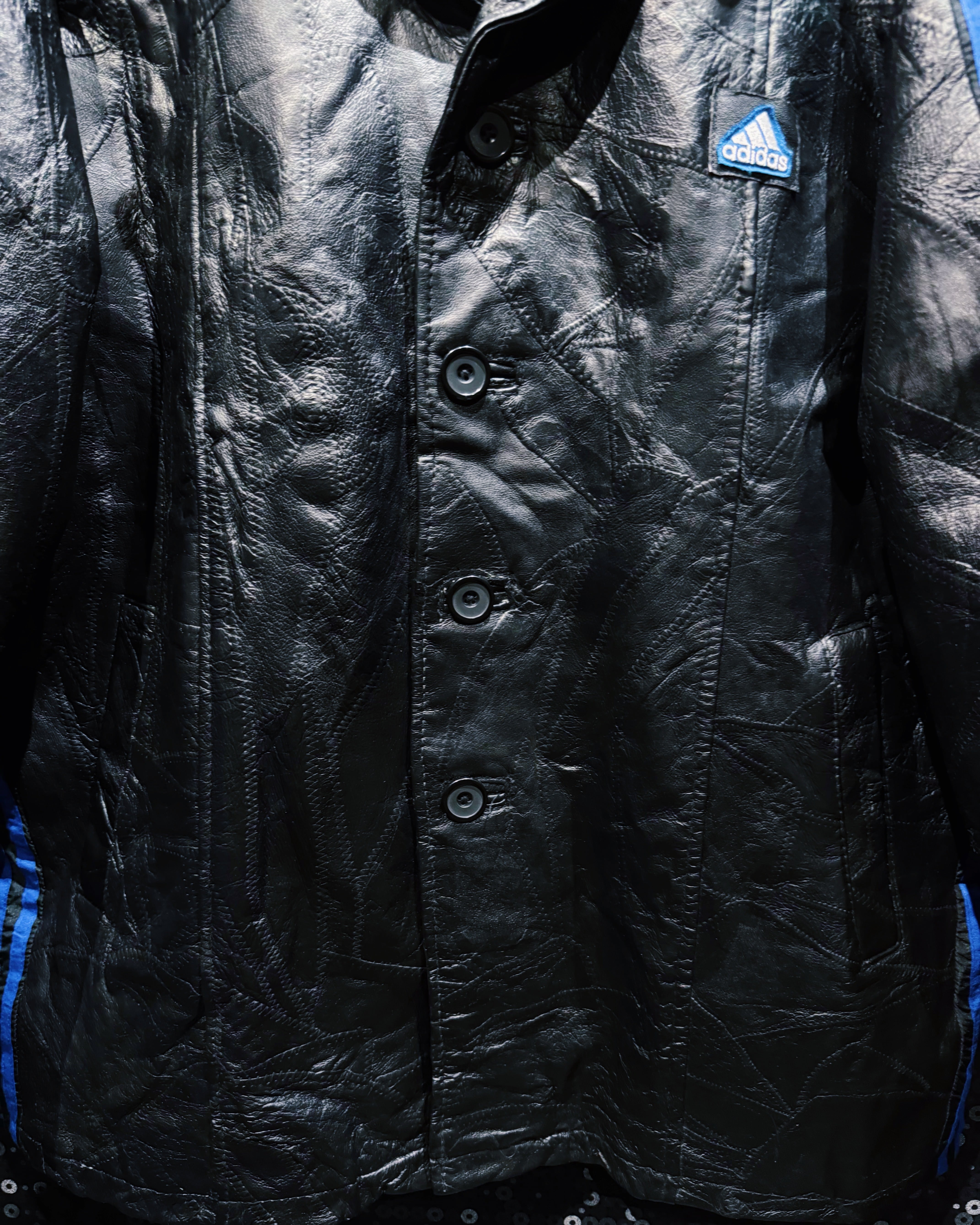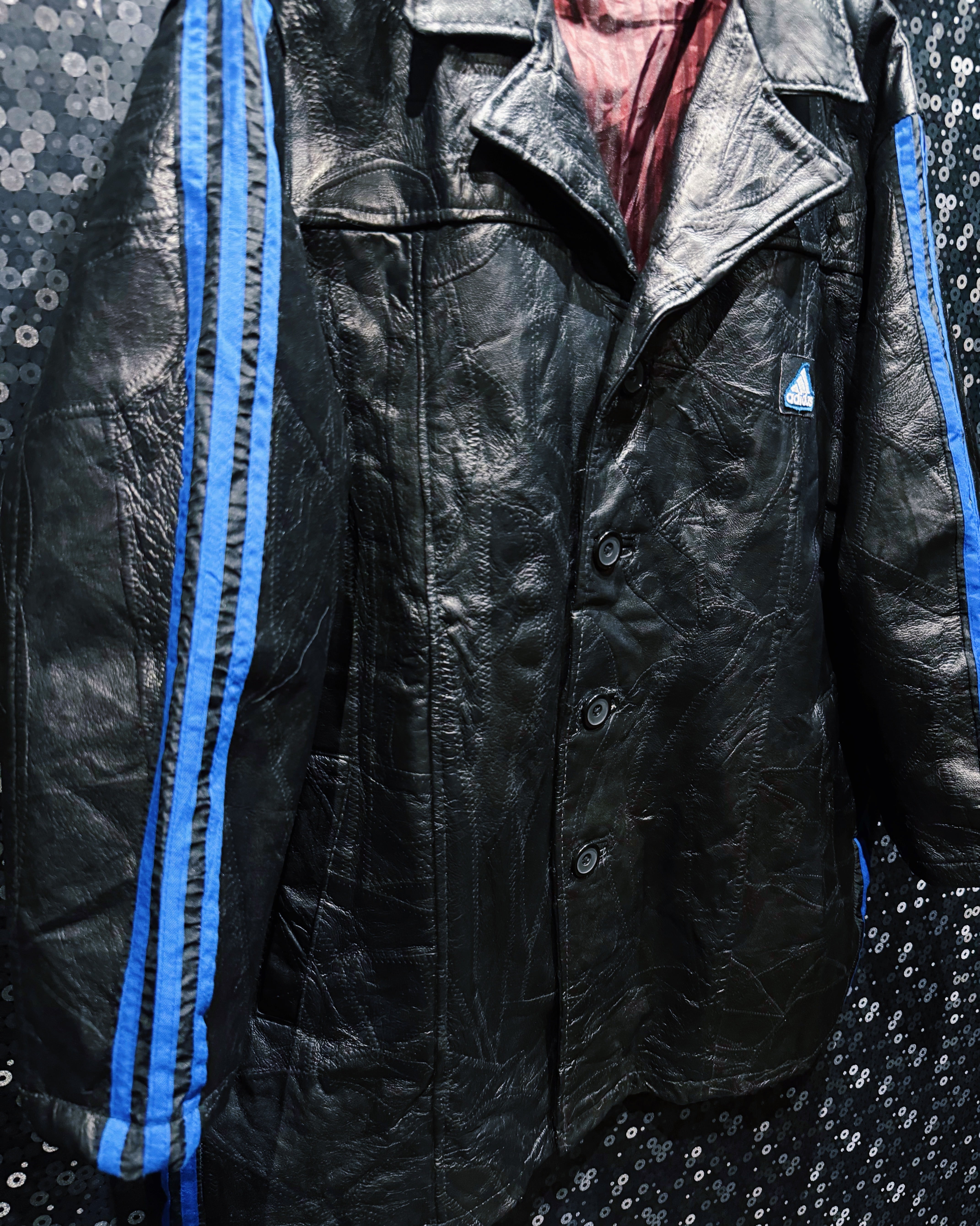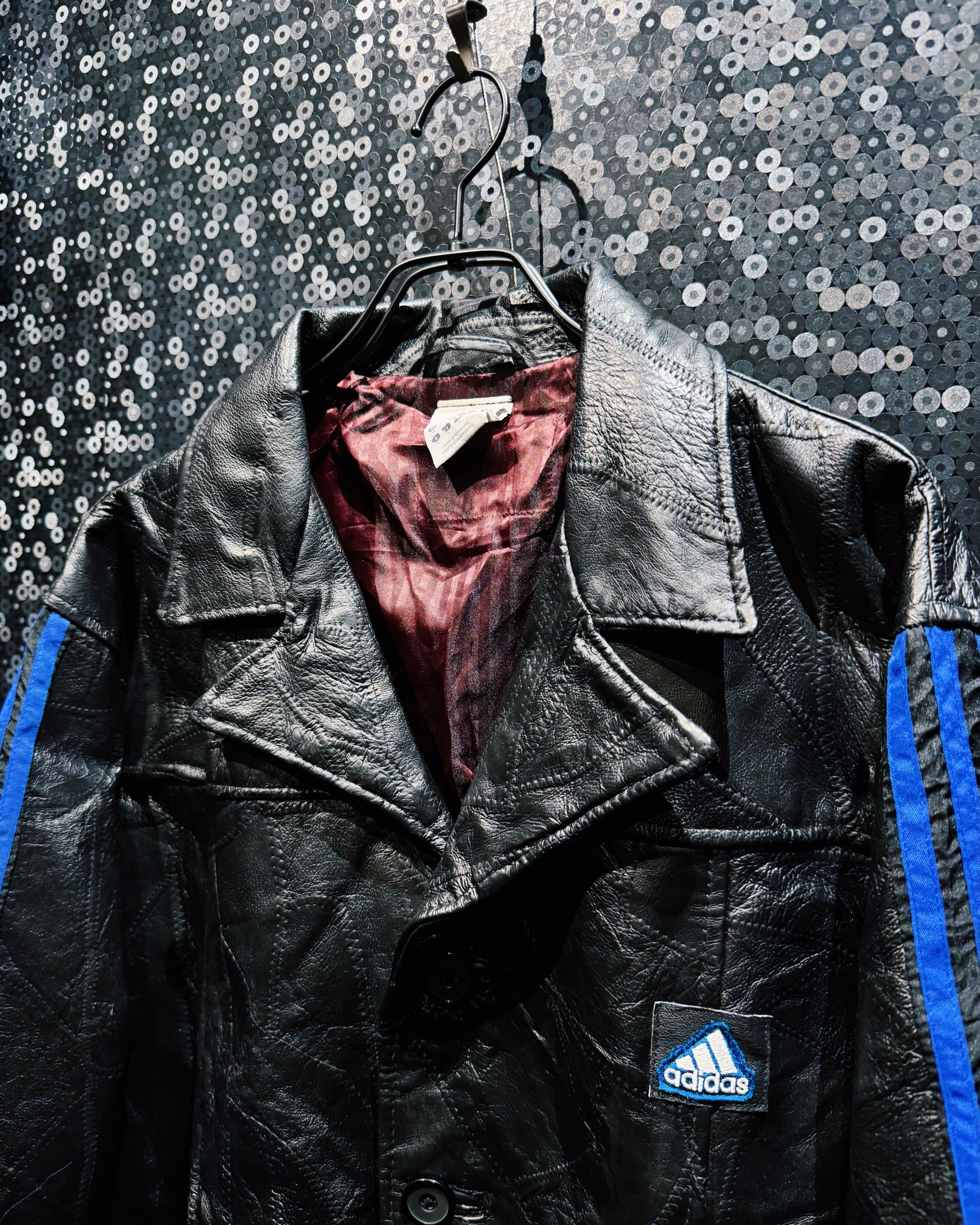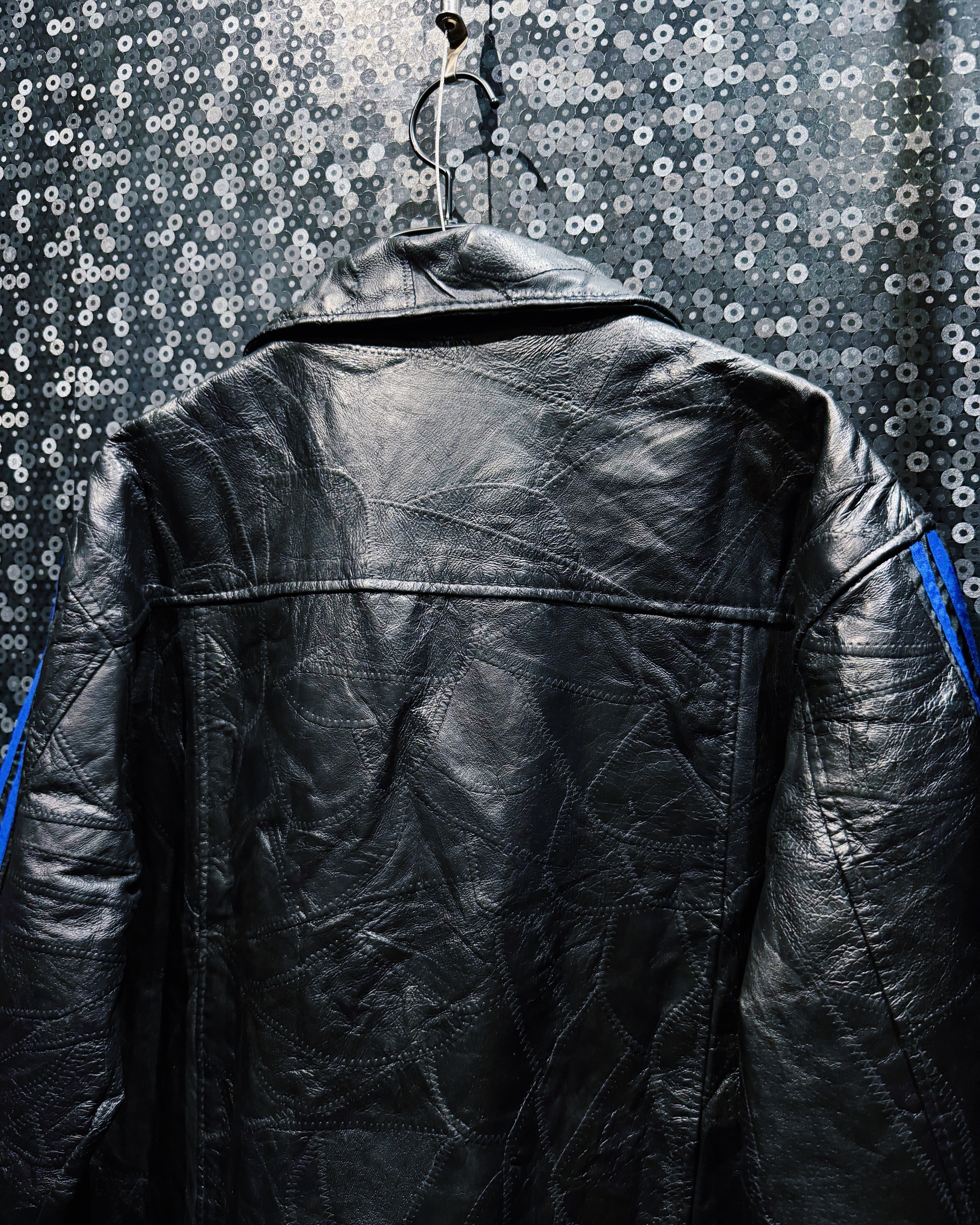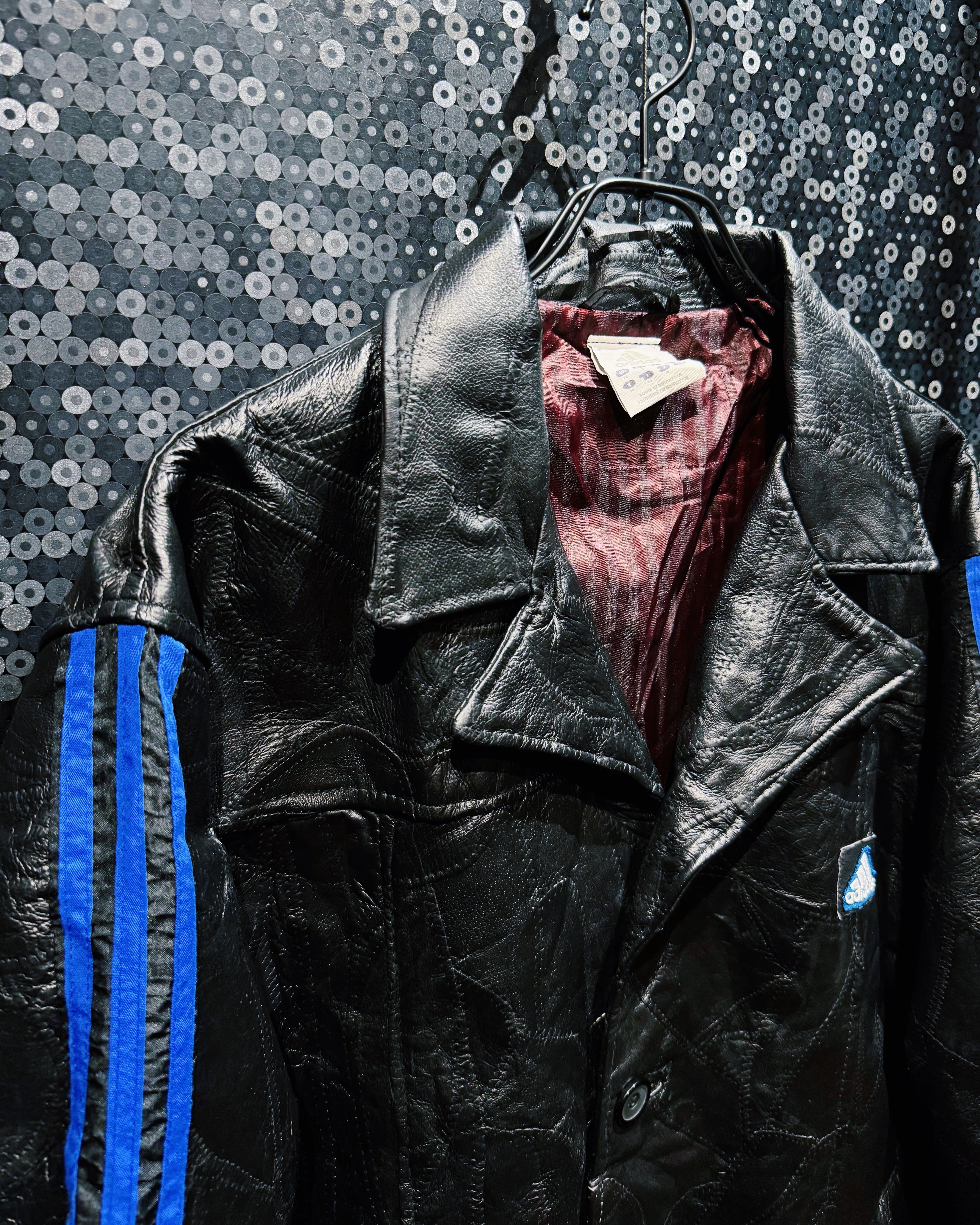 【ÆIEM】"original remake"vintage adidas Blue three stripe tailored leather jacket