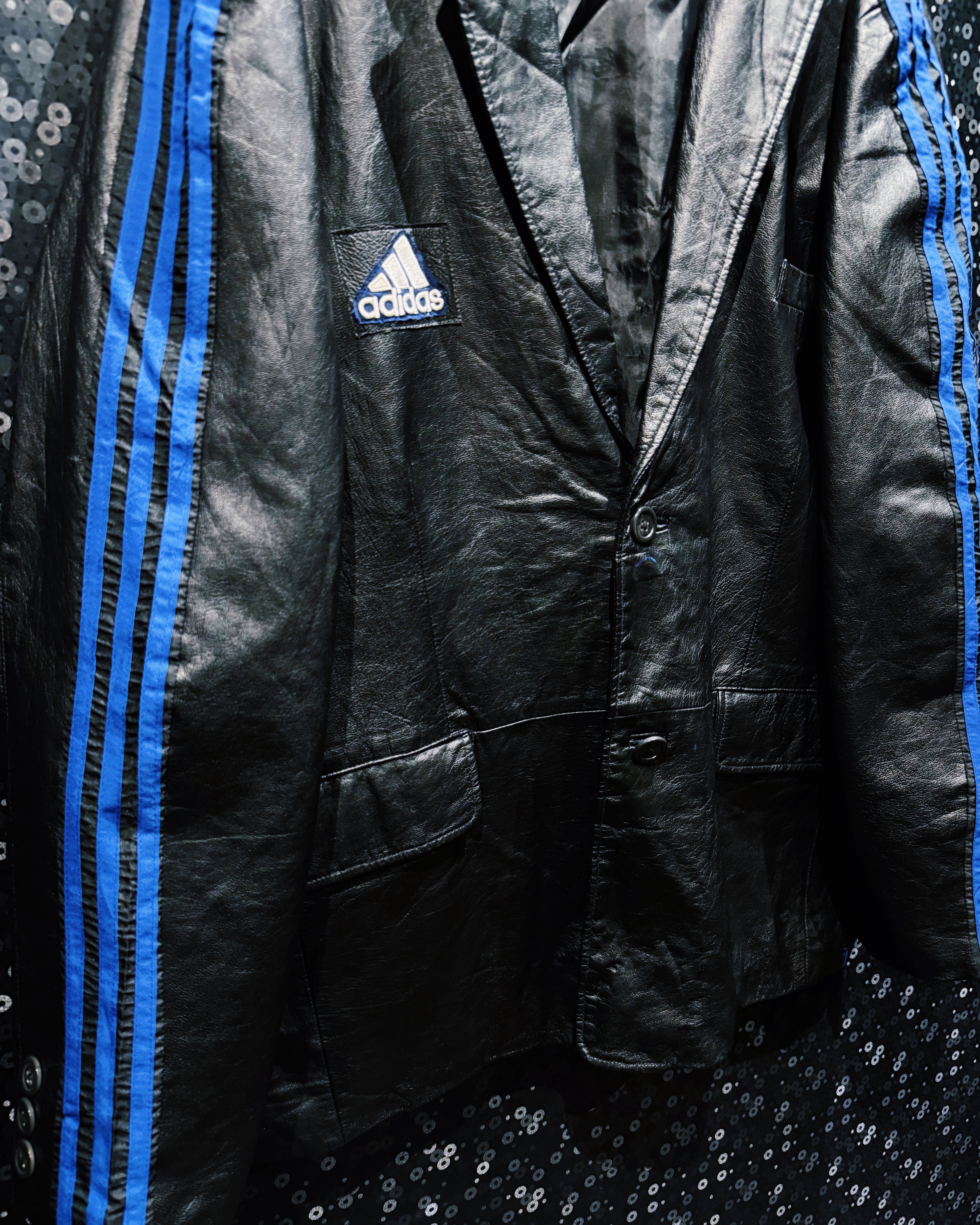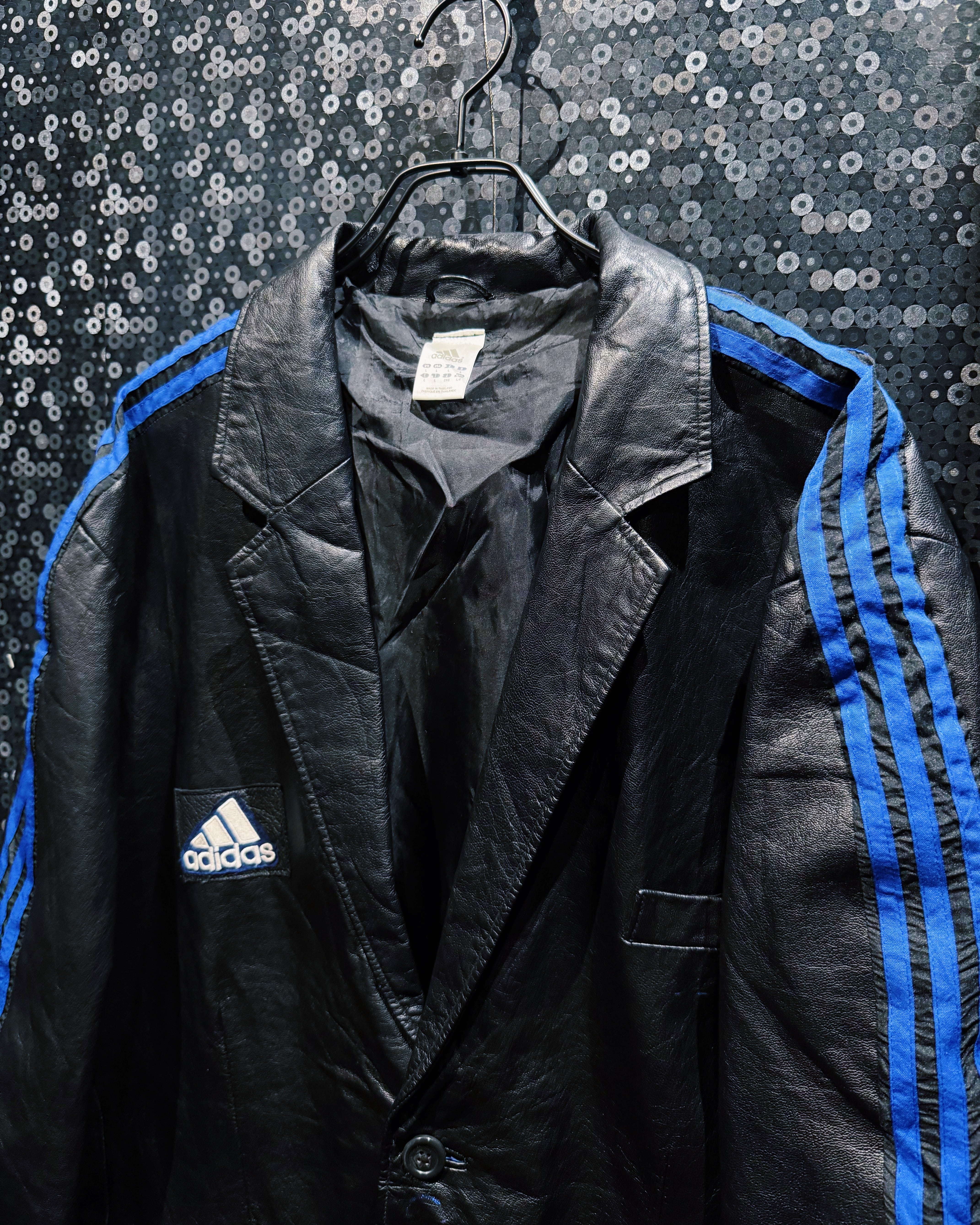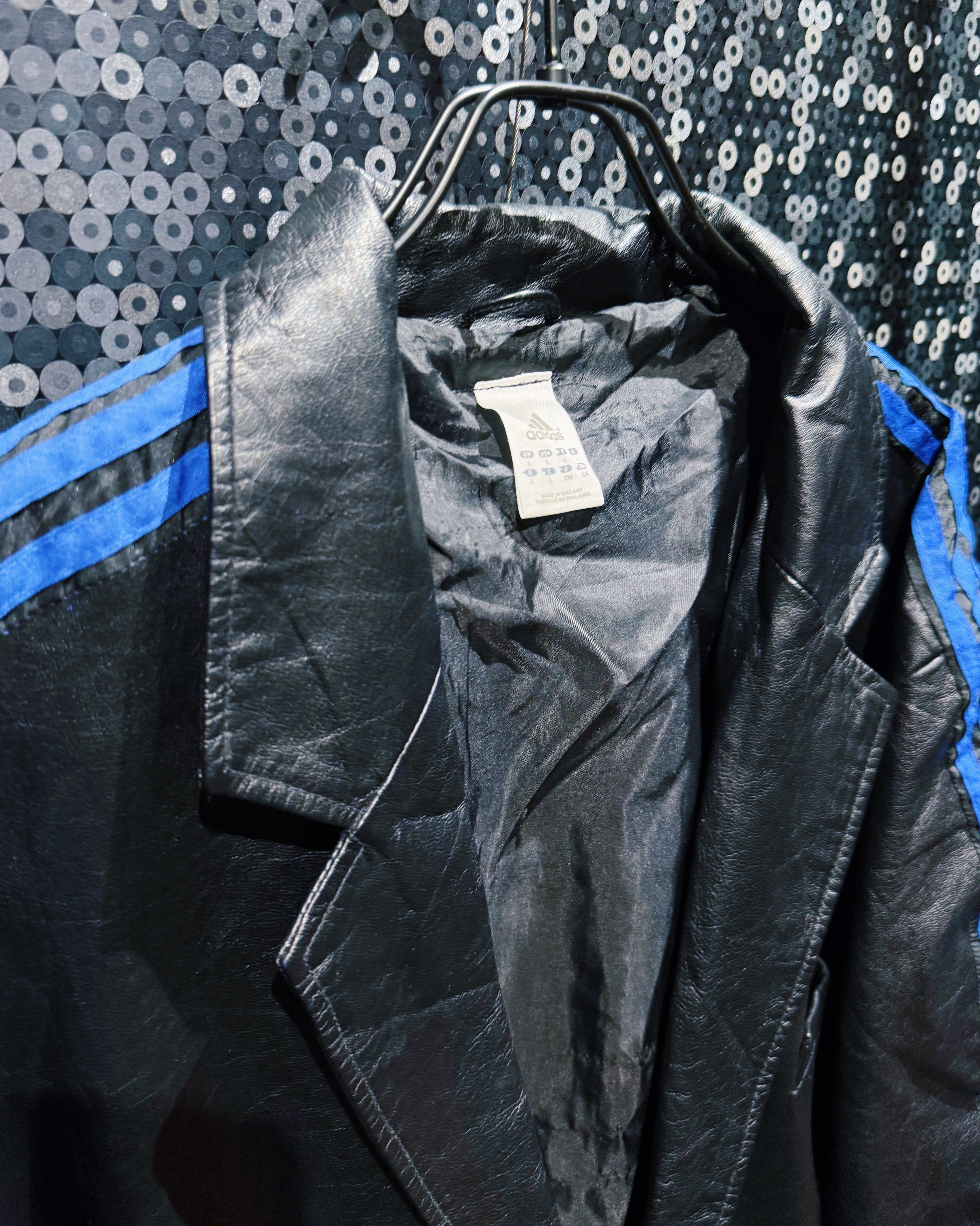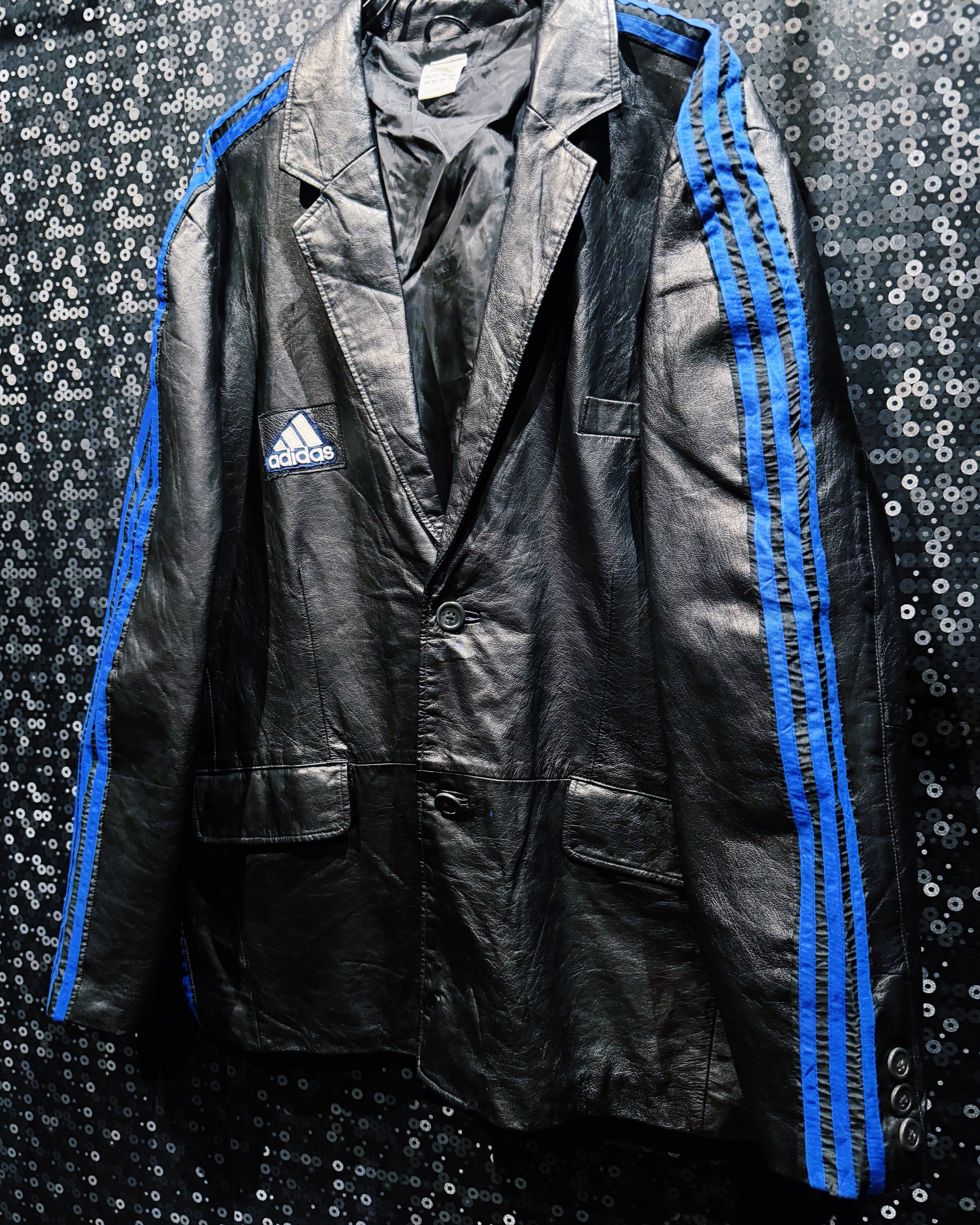 【ÆIEM】"original remake"vintage adidas blue three stripe tailored leather jacket