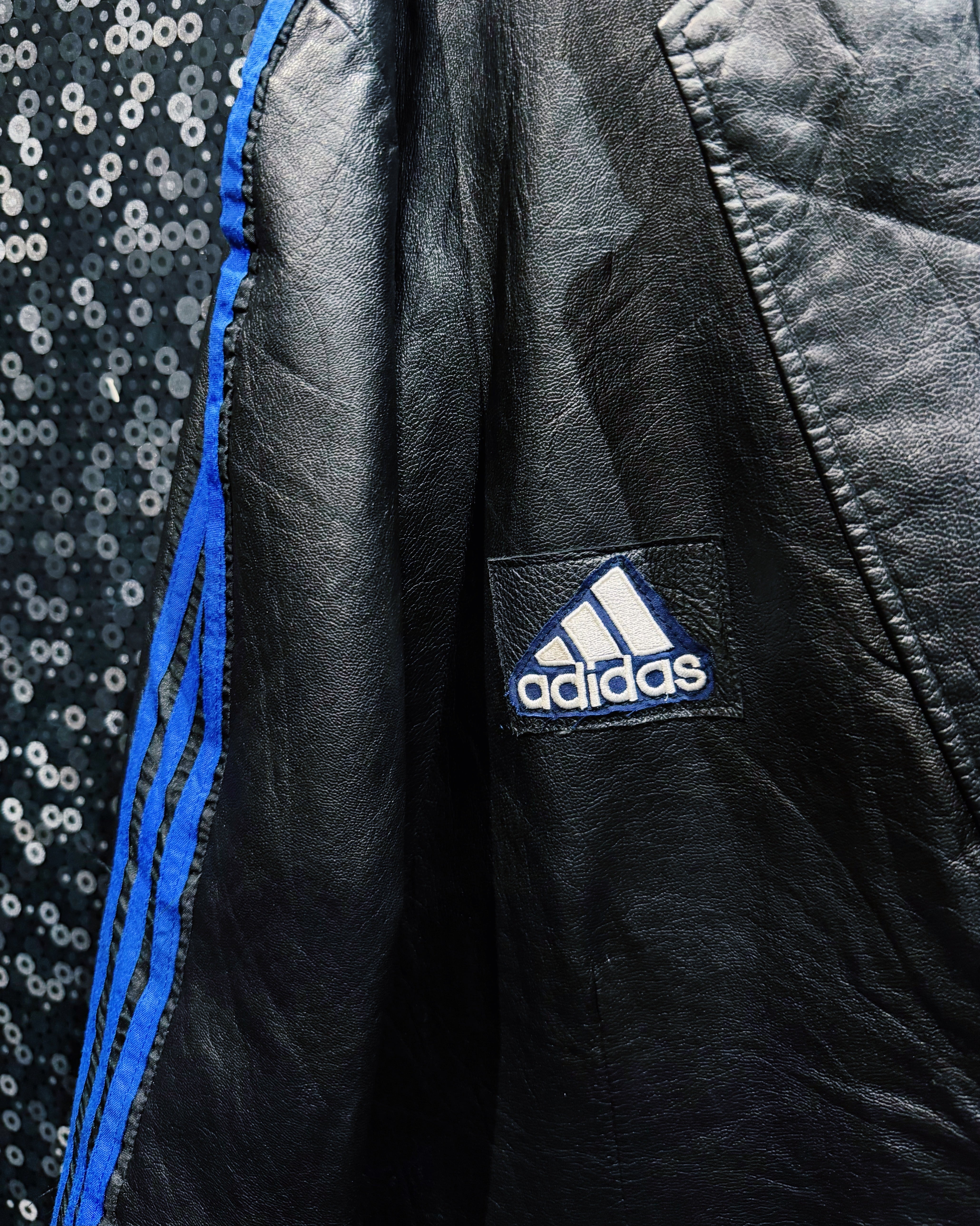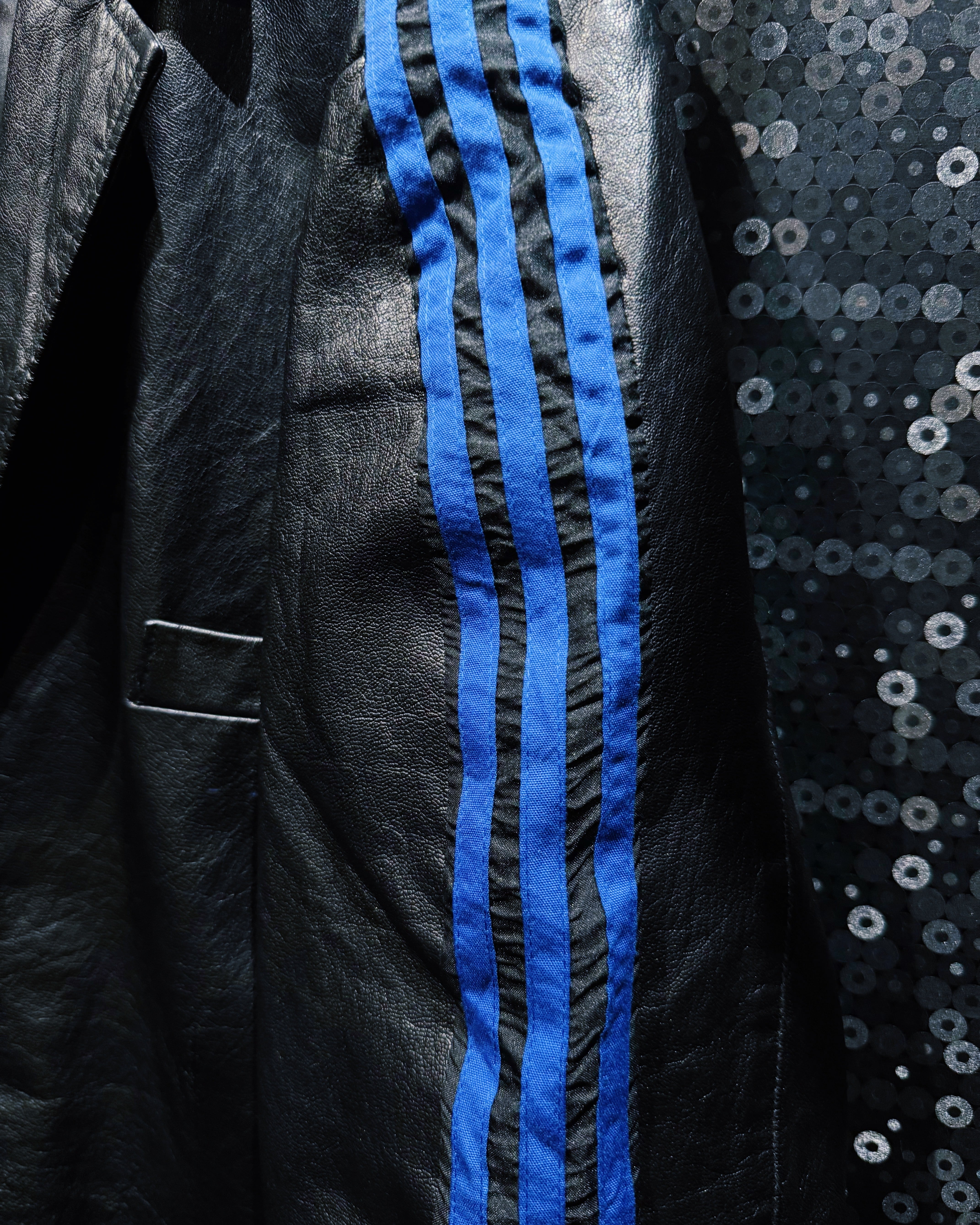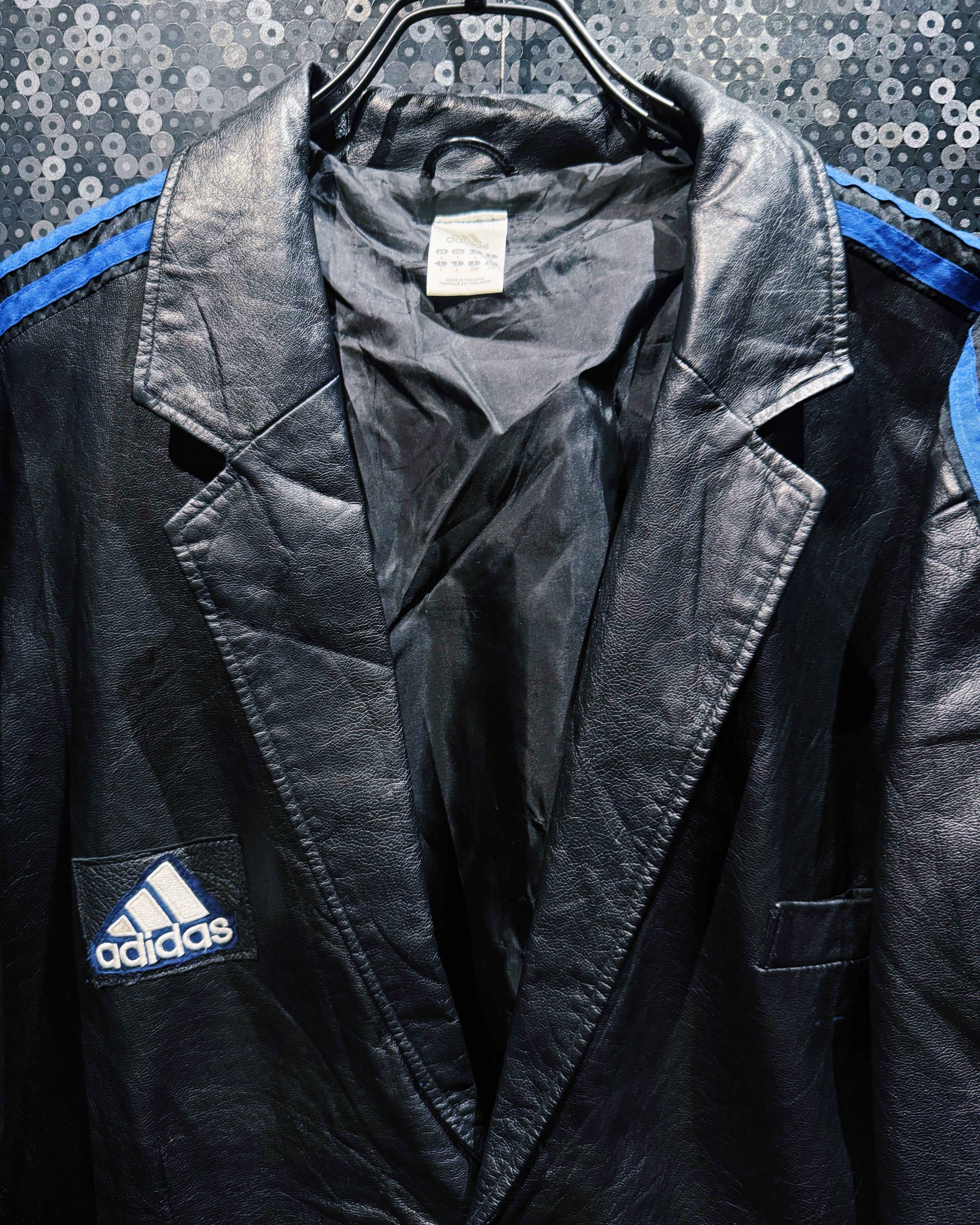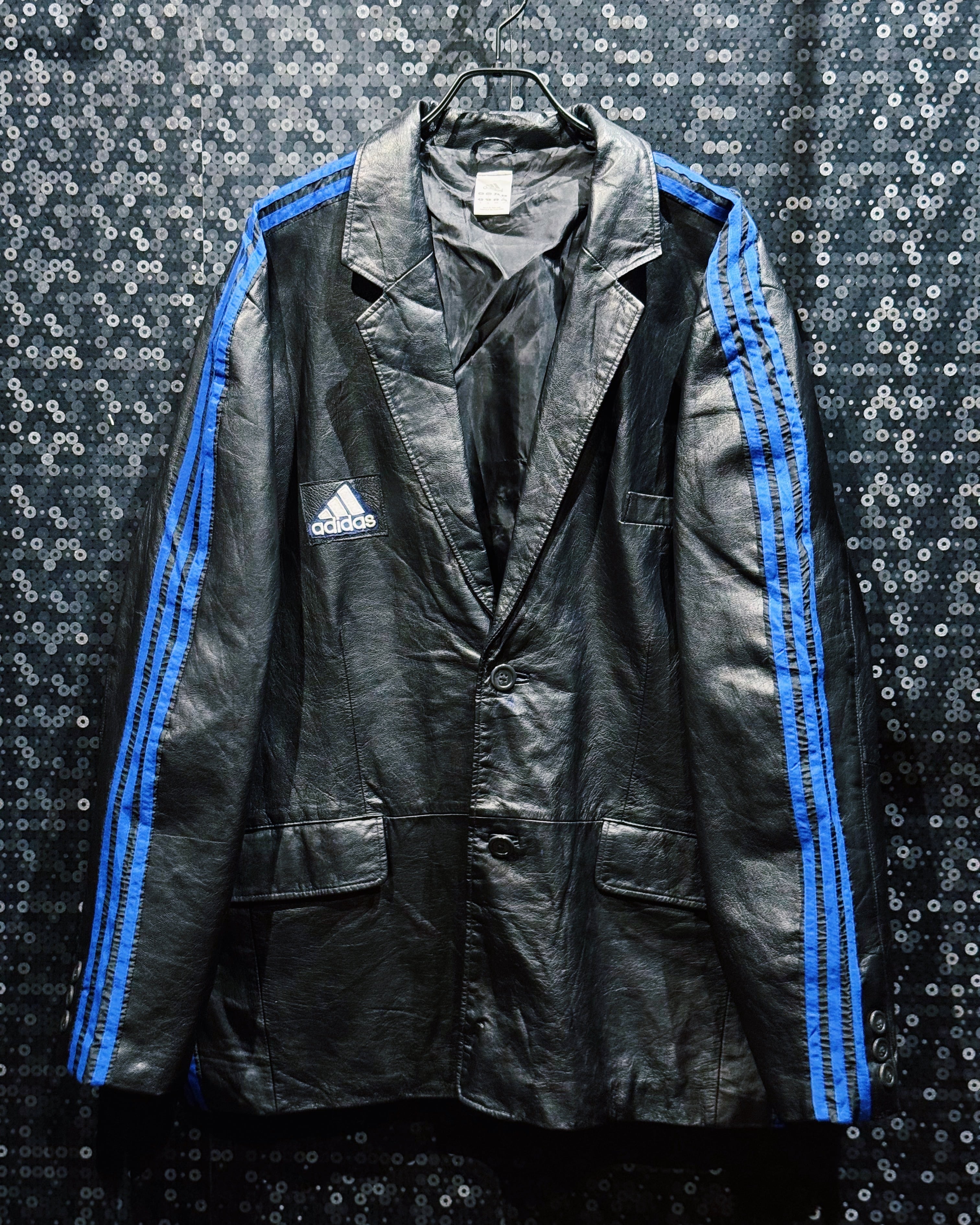 【ÆIEM】"original remake"vintage adidas blue three stripe tailored leather jacket
