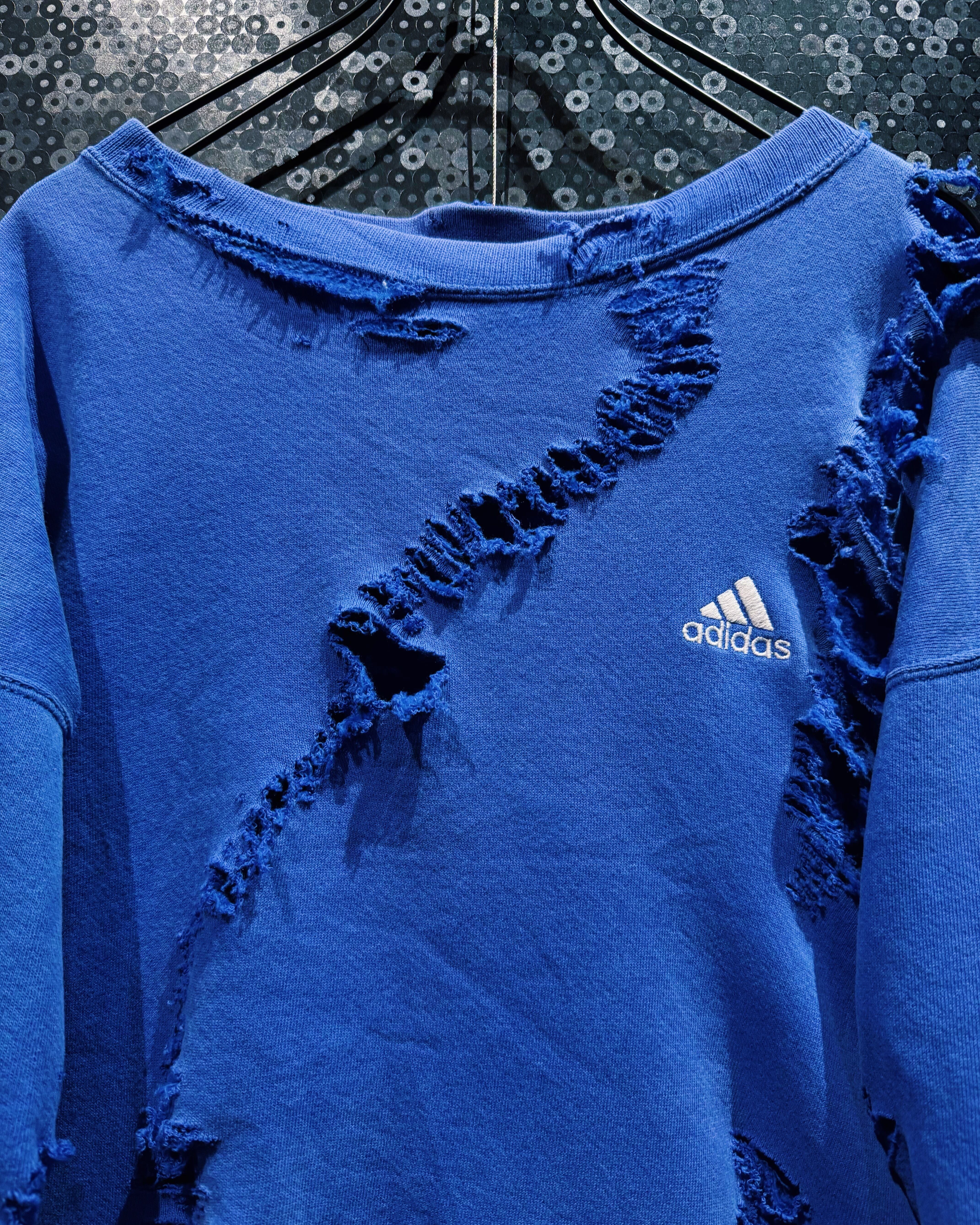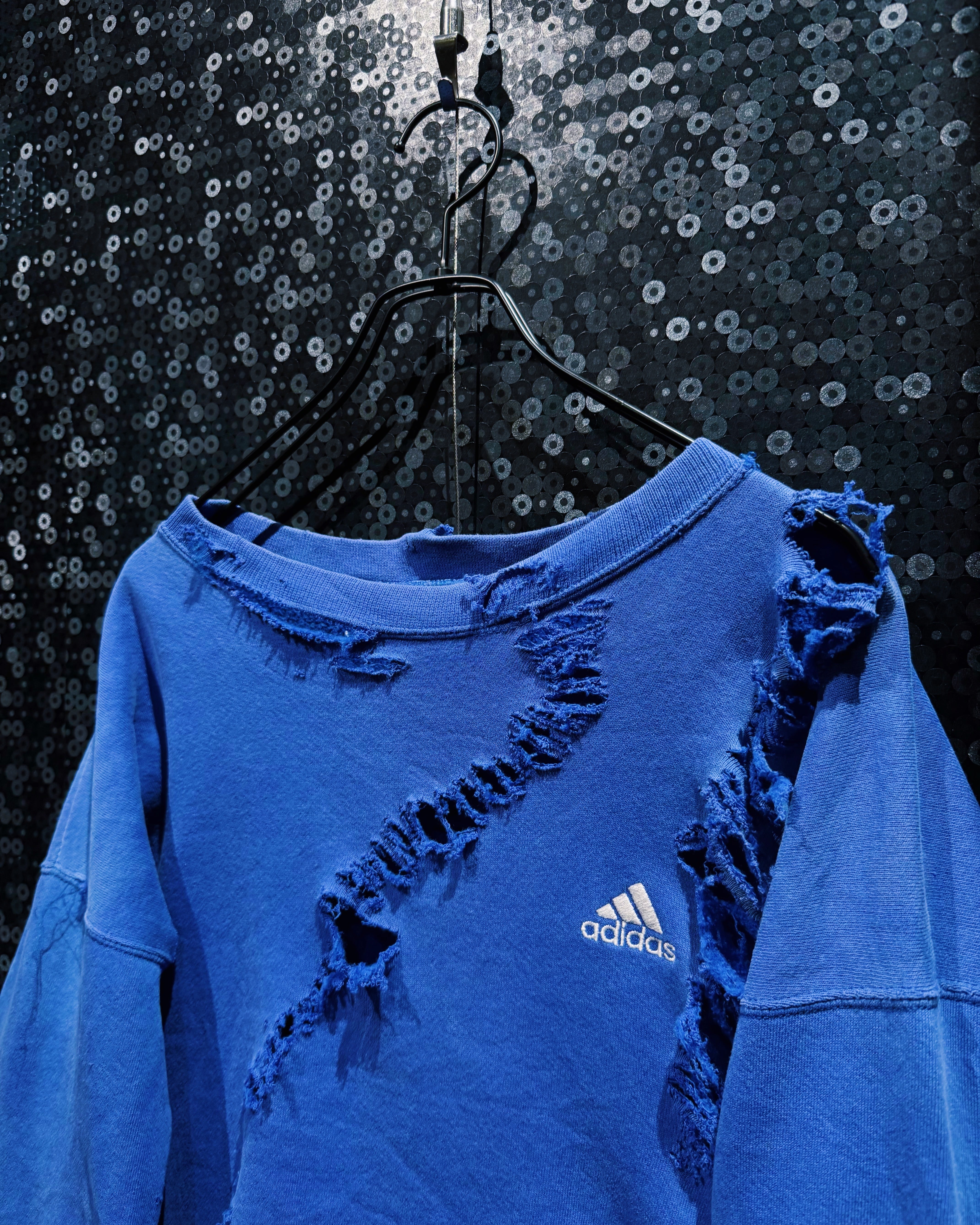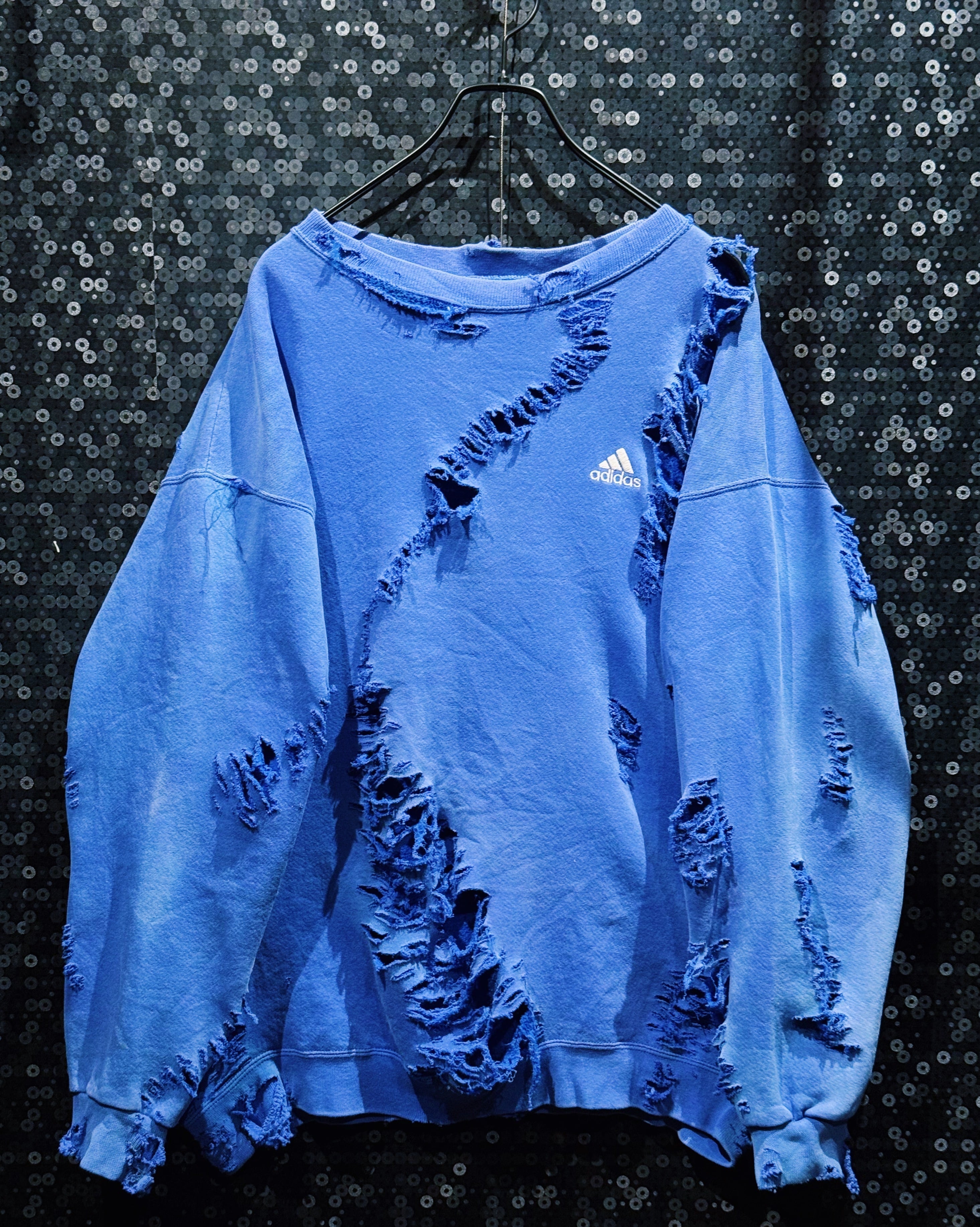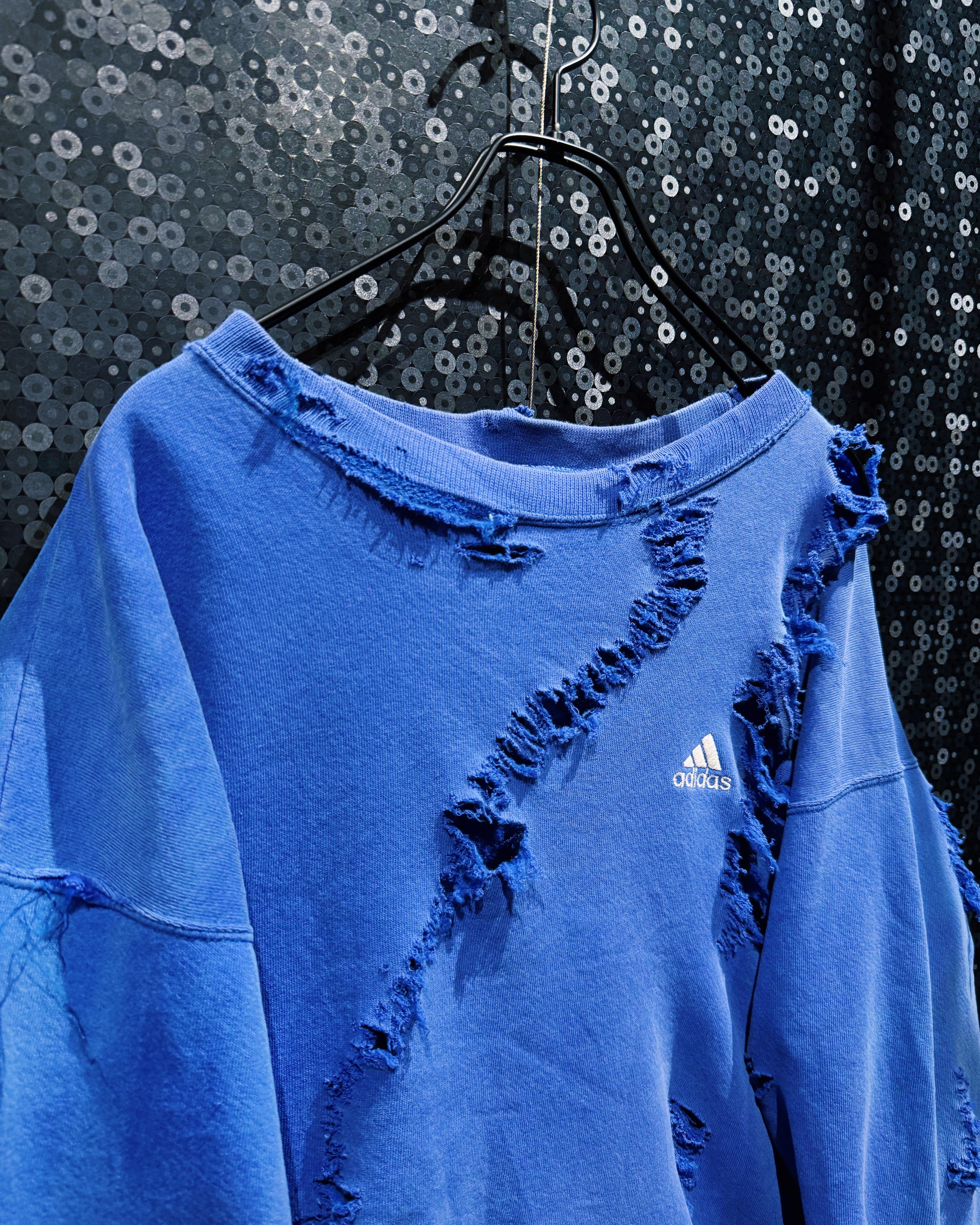【ÆIEM】original boro remake“adidas"vintage performance electric blue destroy sweat