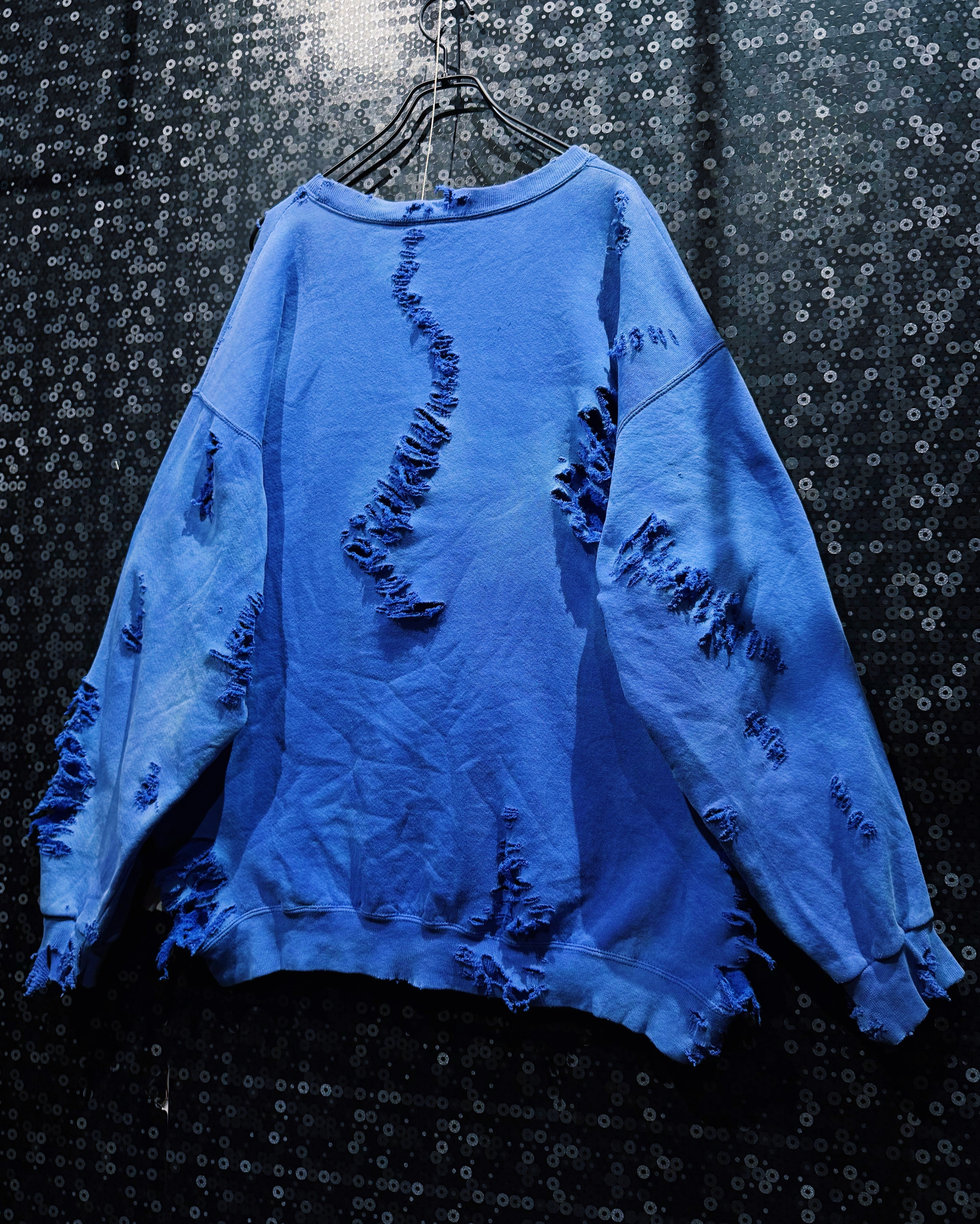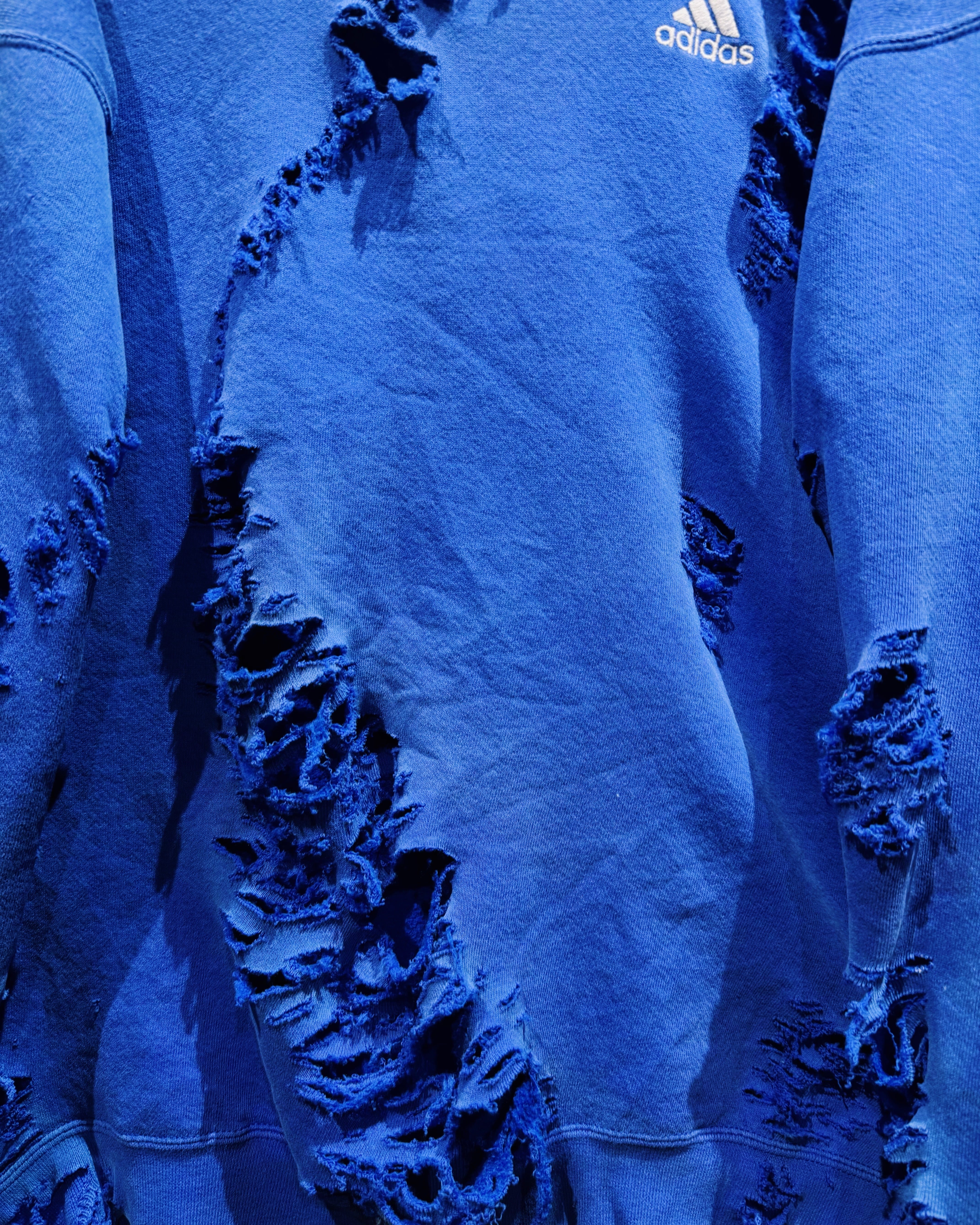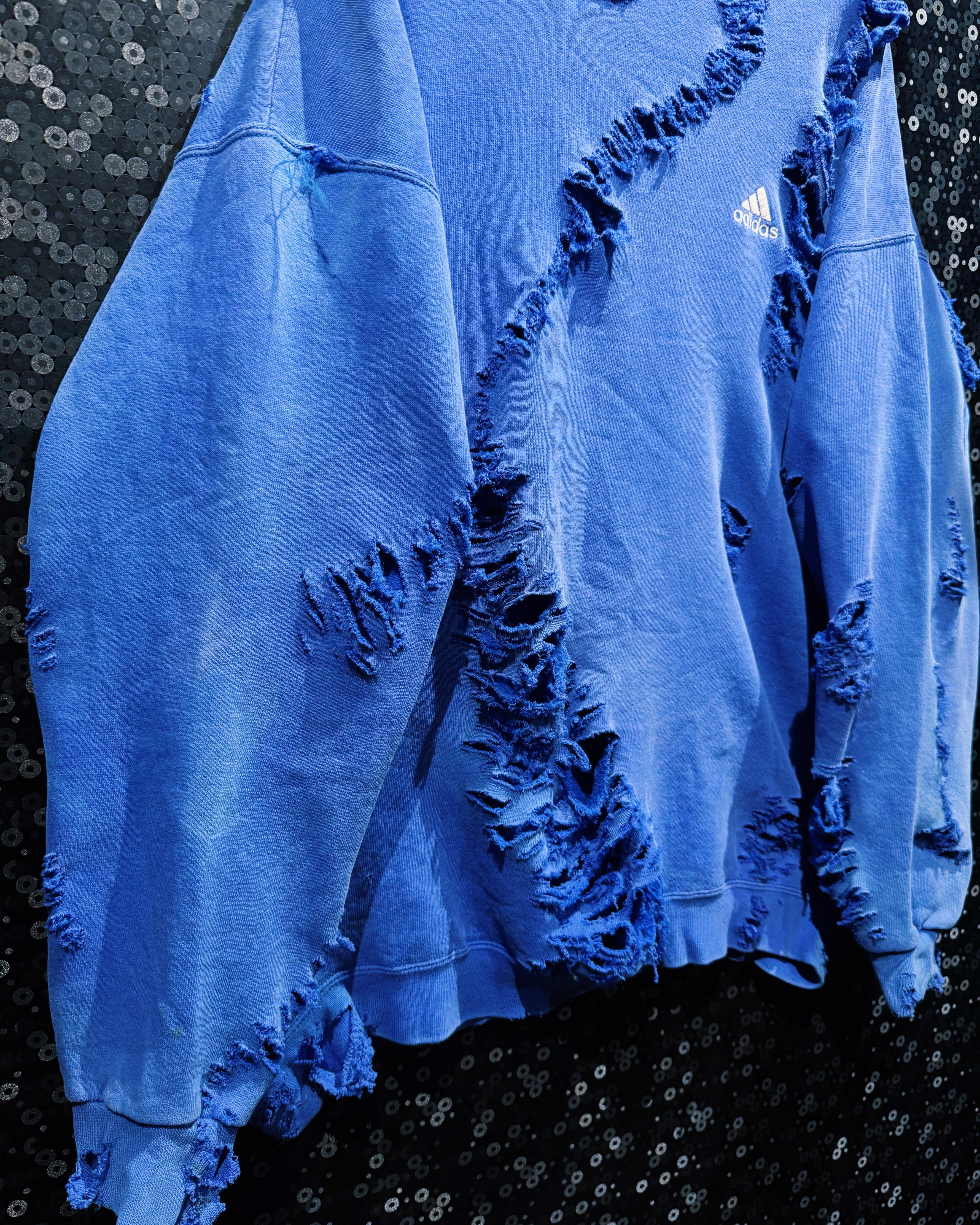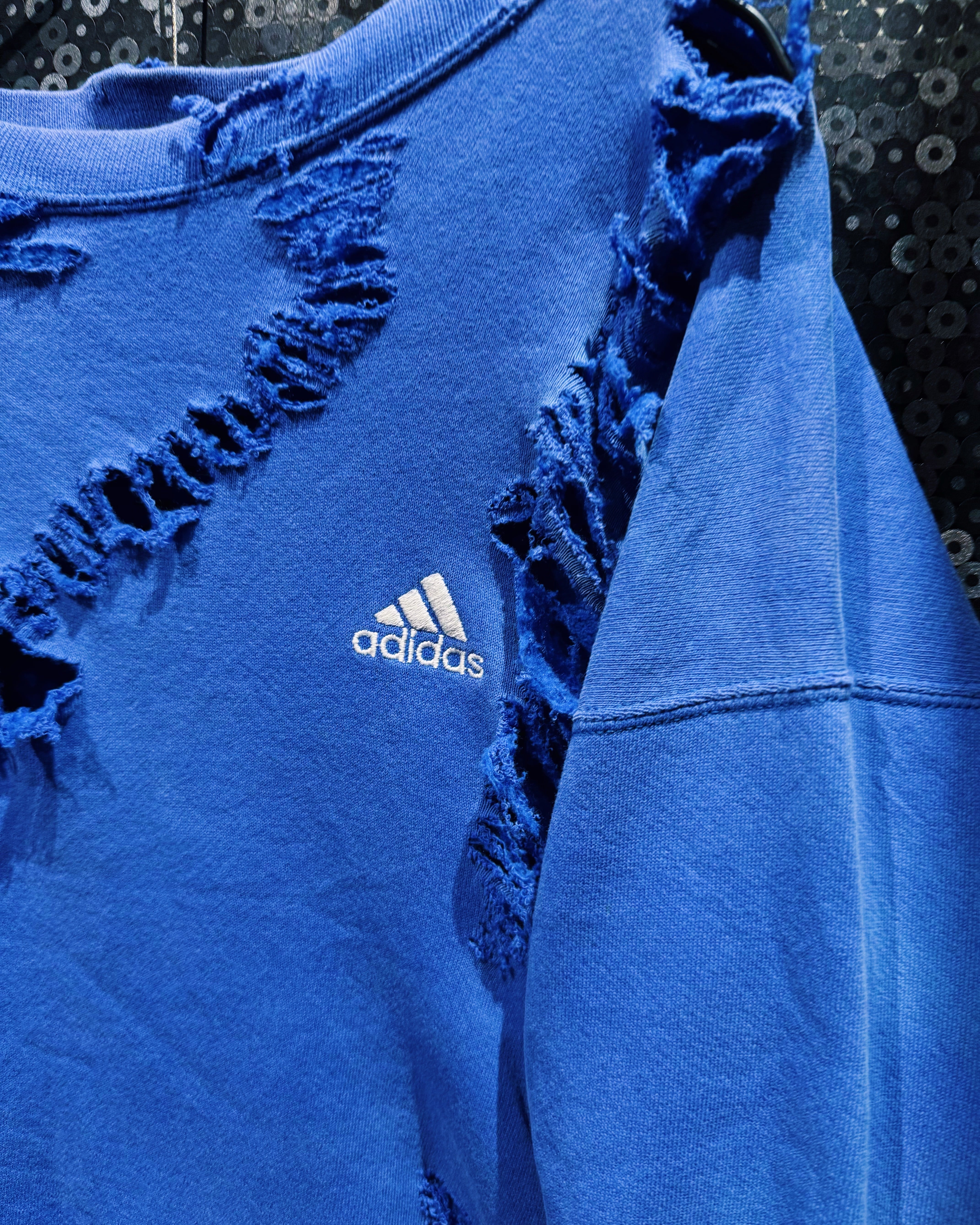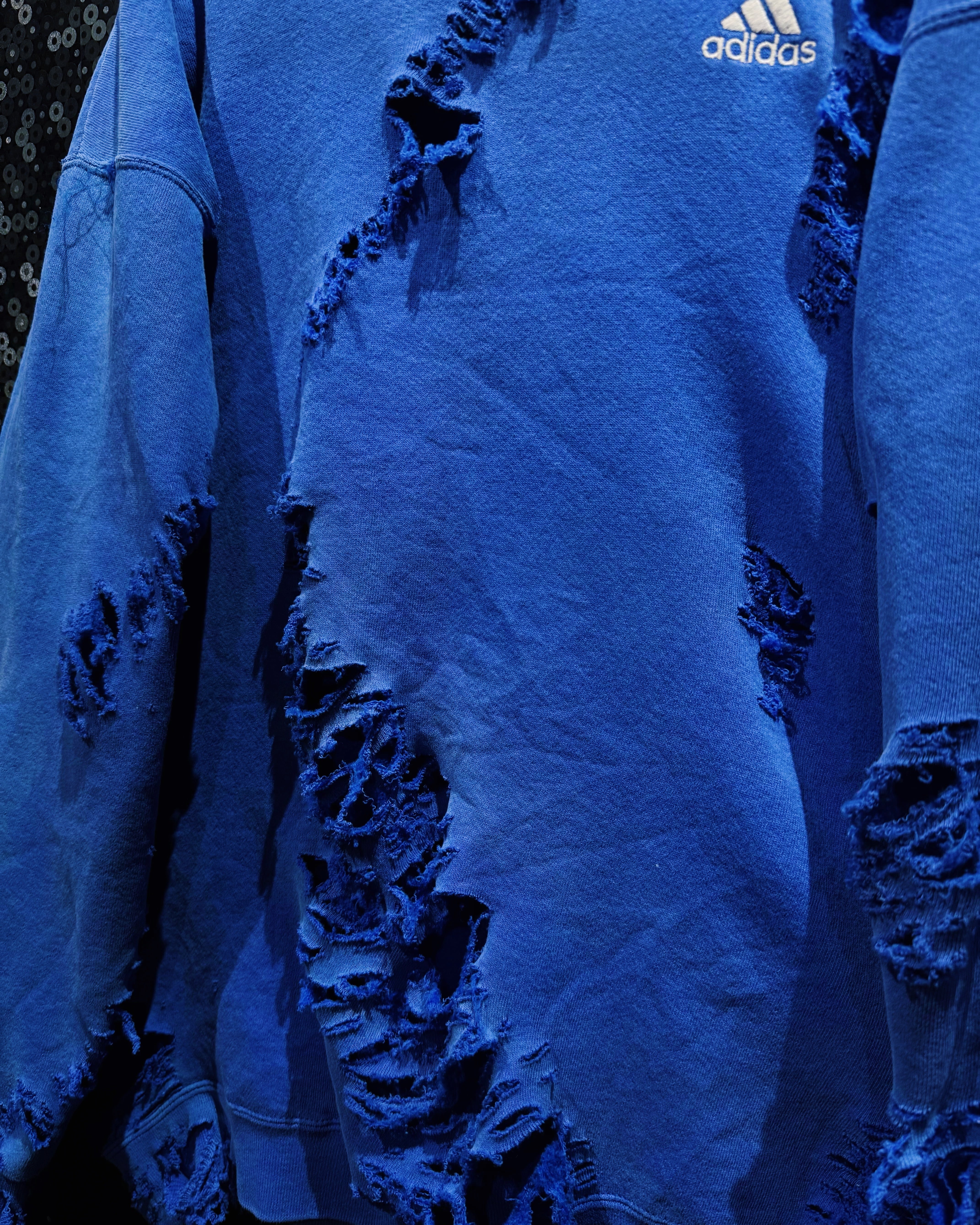 【ÆIEM】original boro remake“adidas"vintage performance electric blue destroy sweat