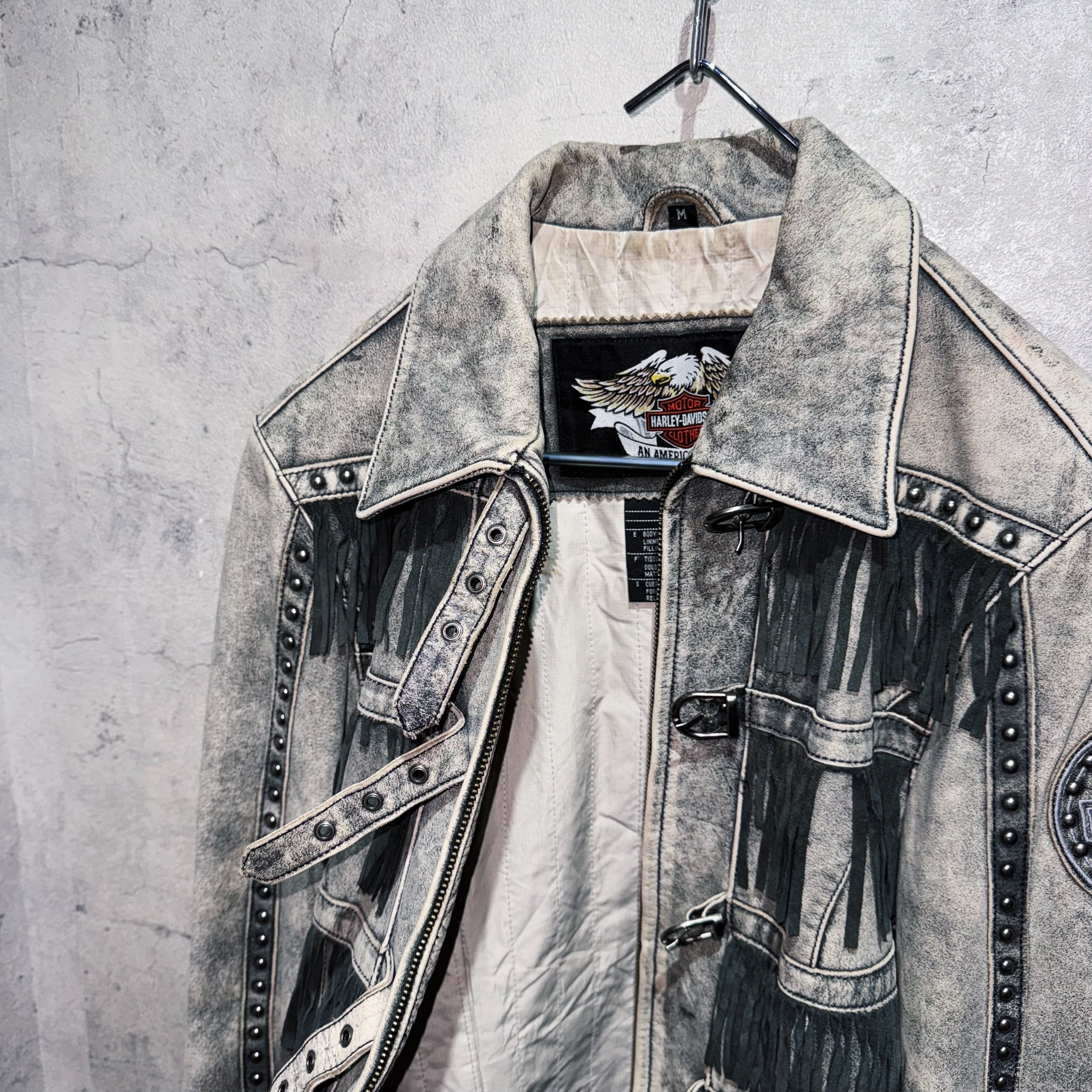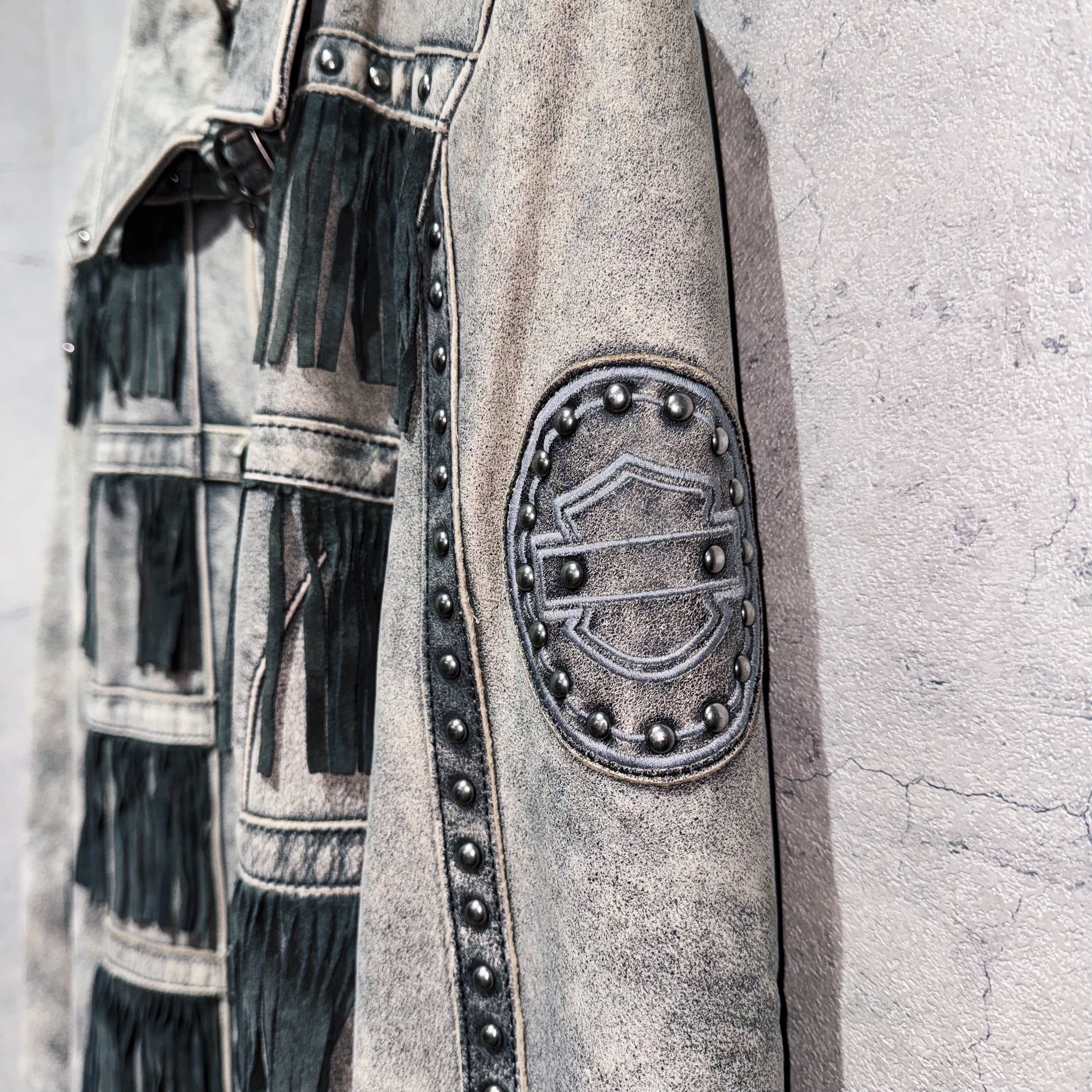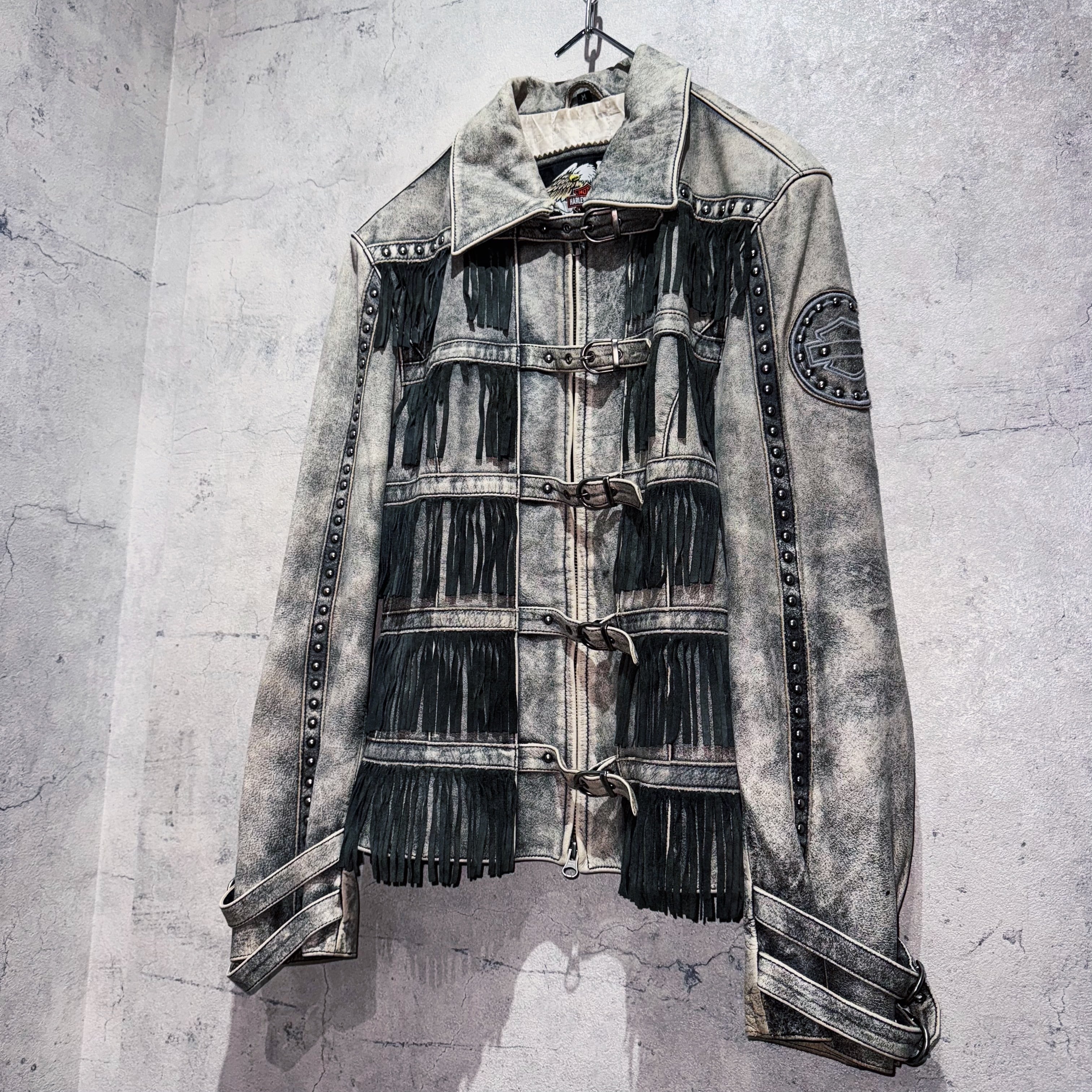 "Harley-Davidson"fringe&studs design belt leather jacket