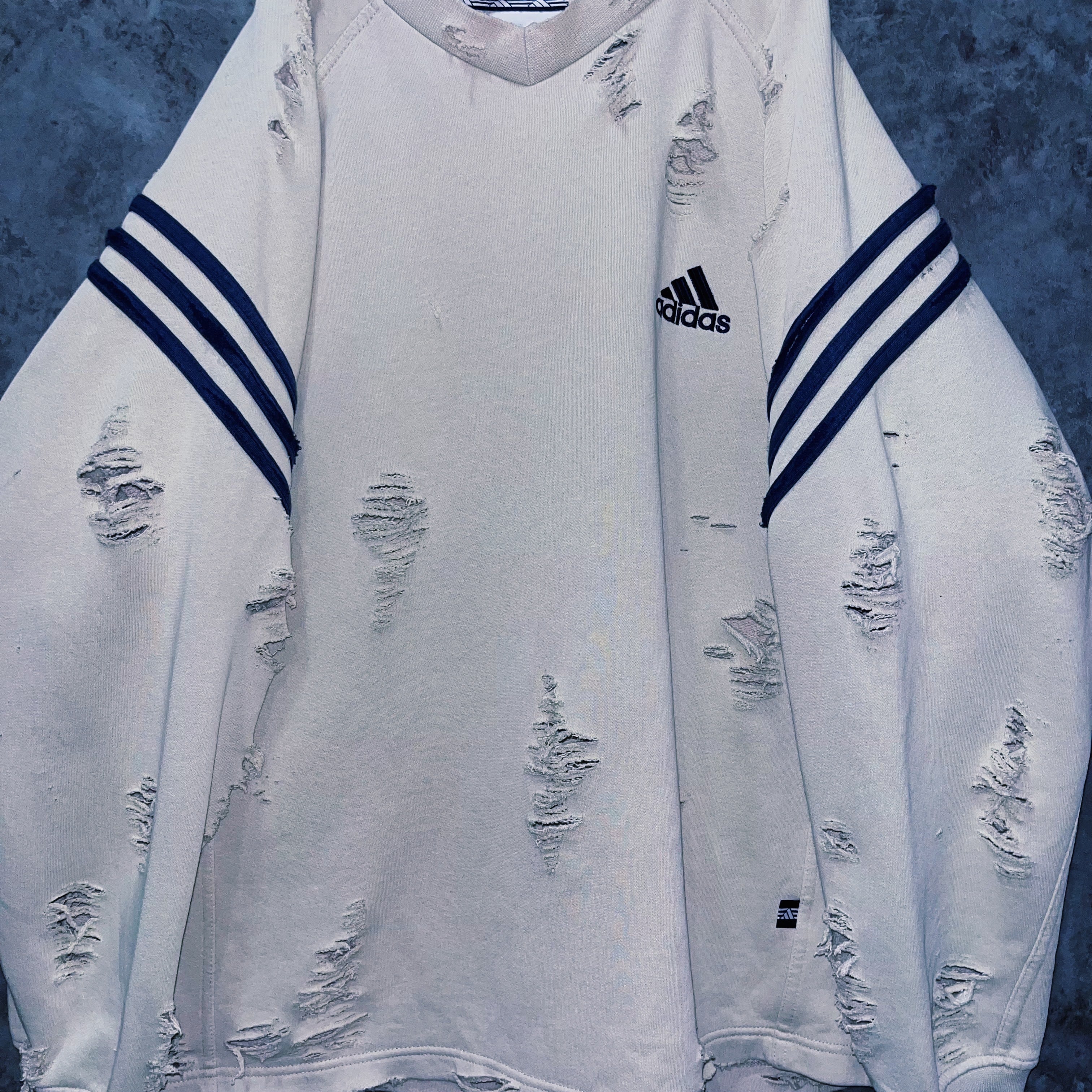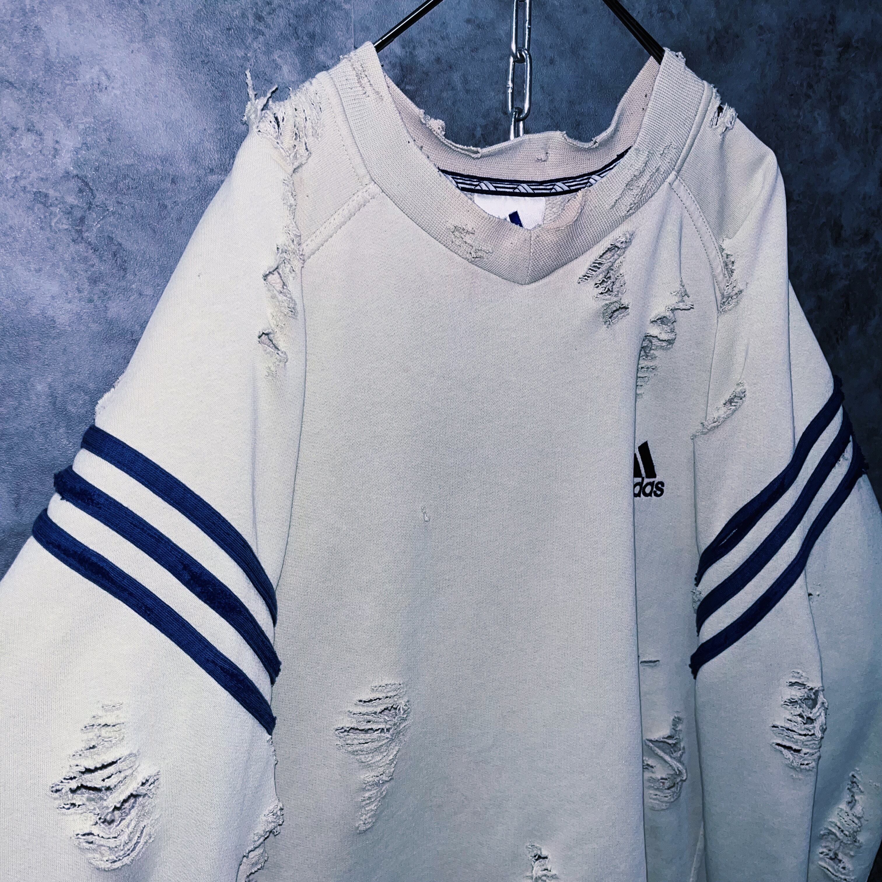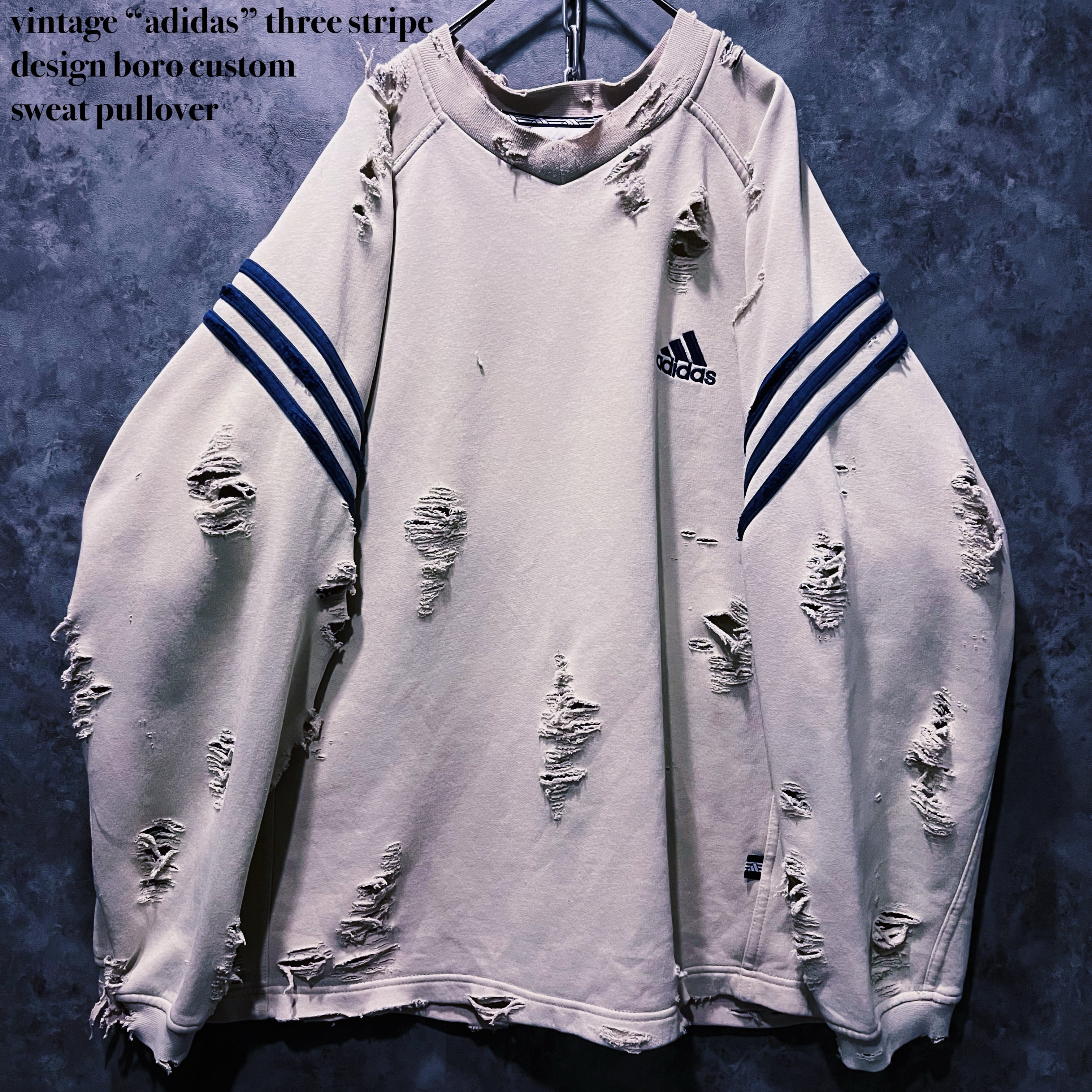 ヴィンテージ“adidas”スリーストライプデザインボロカスタムスウェットプルオーバー