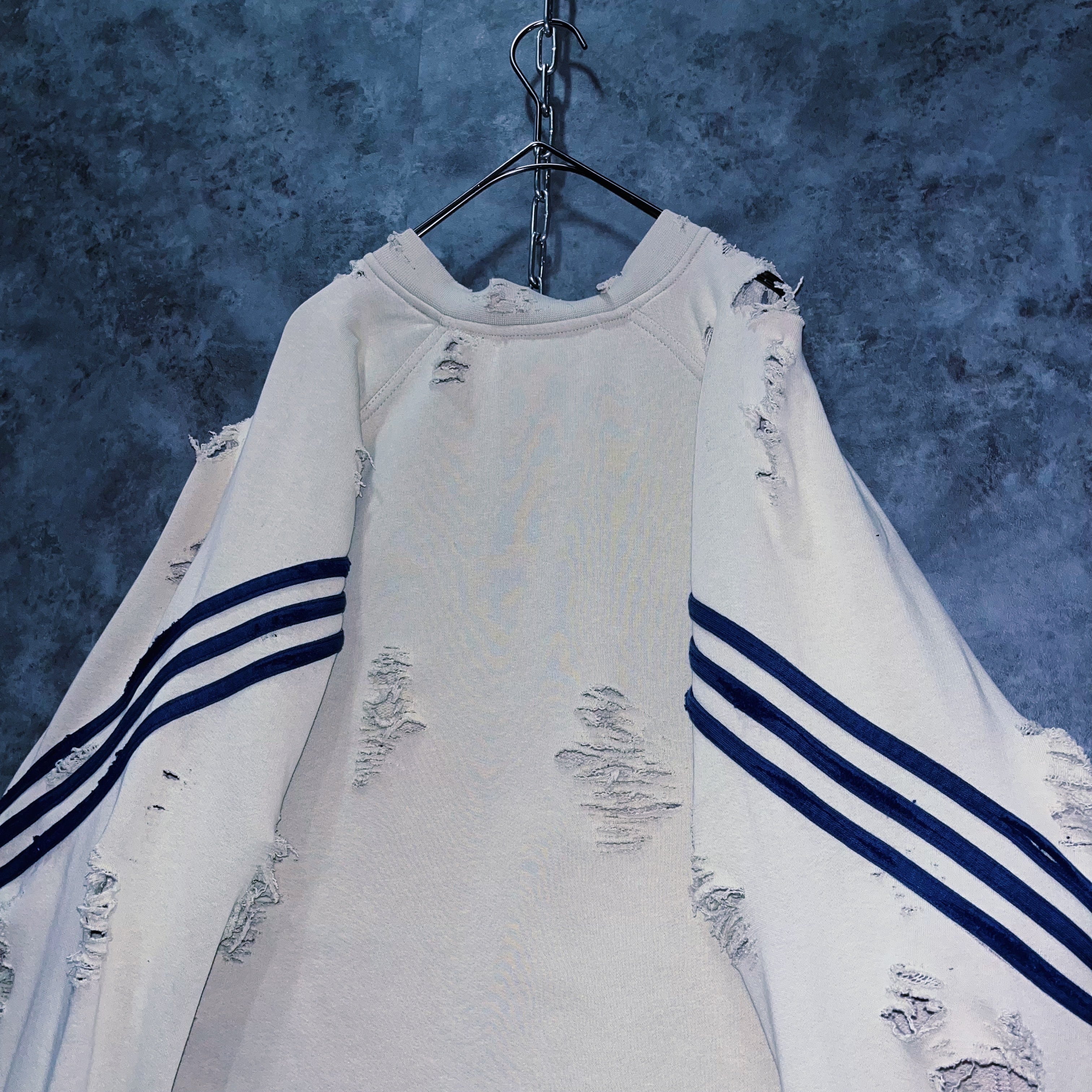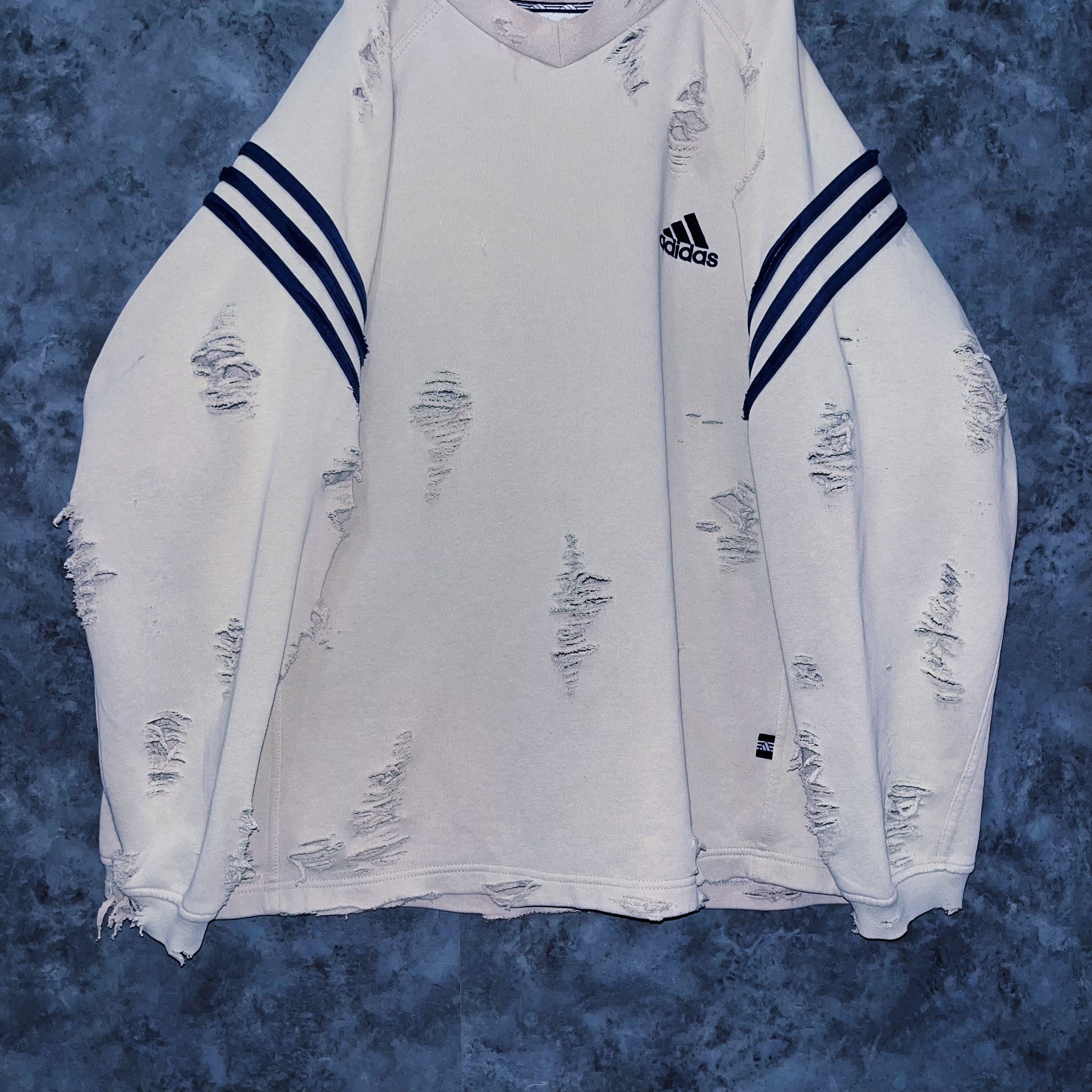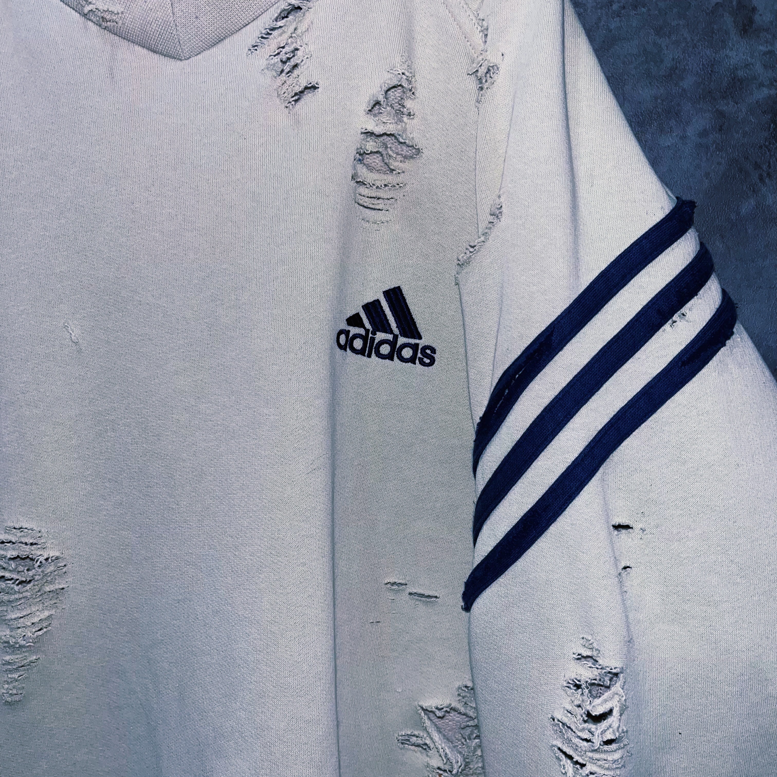 ヴィンテージ“adidas”スリーストライプデザインボロカスタムスウェットプルオーバー