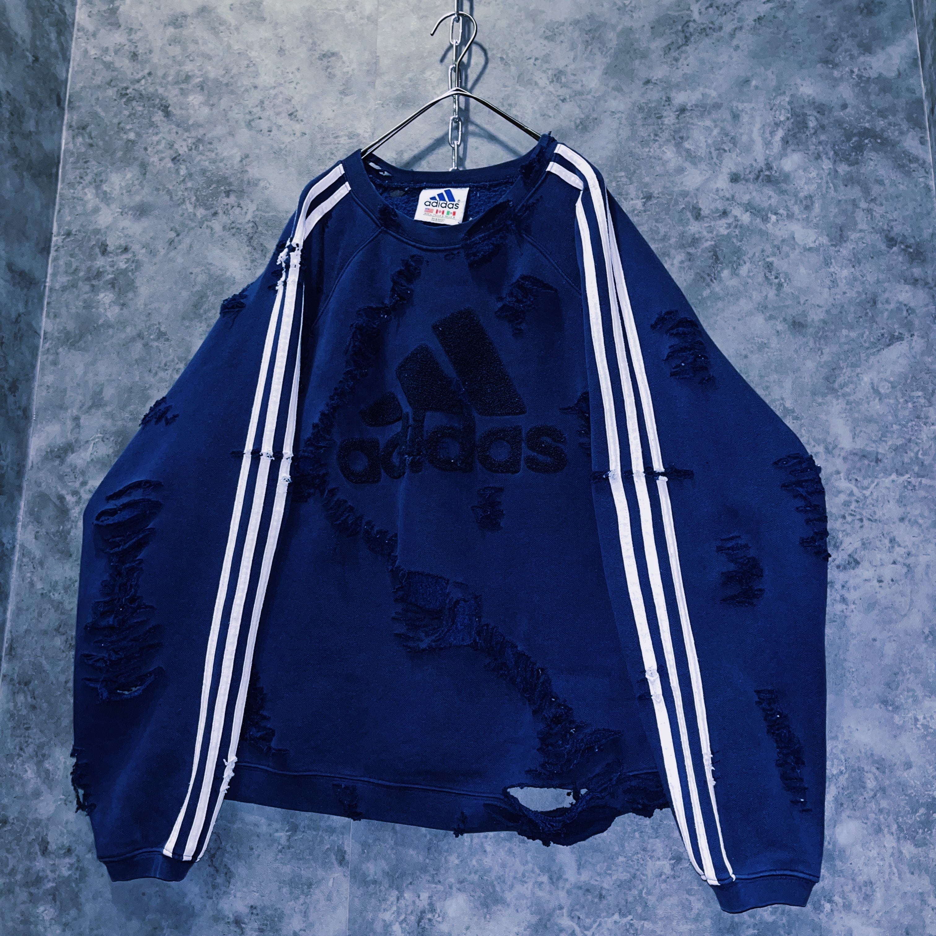 【doppio】vintage “adidas” performance logo embroidery design boro custom sweat pullover