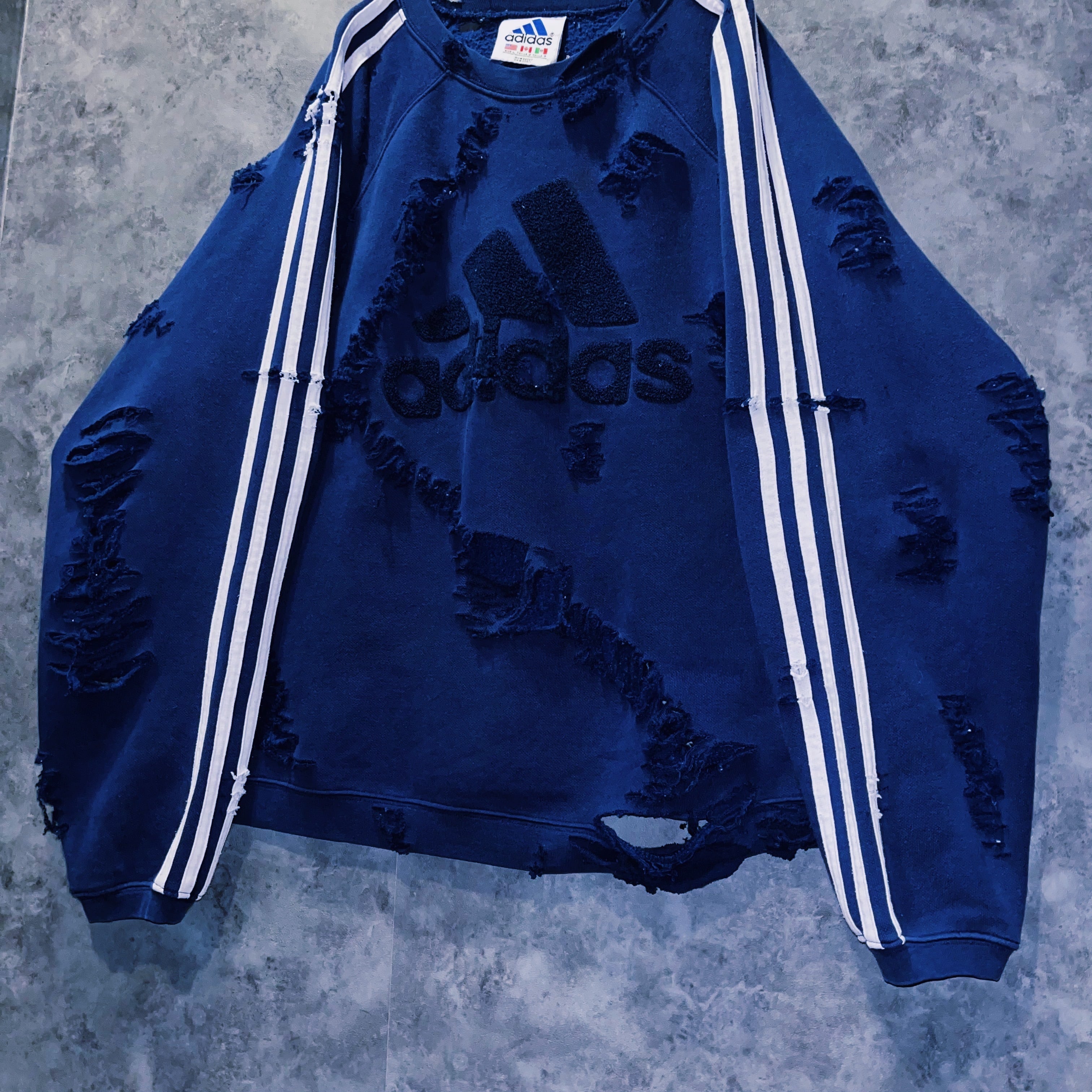 vintage “adidas” performance logo embroidery design boro custom sweat pullover