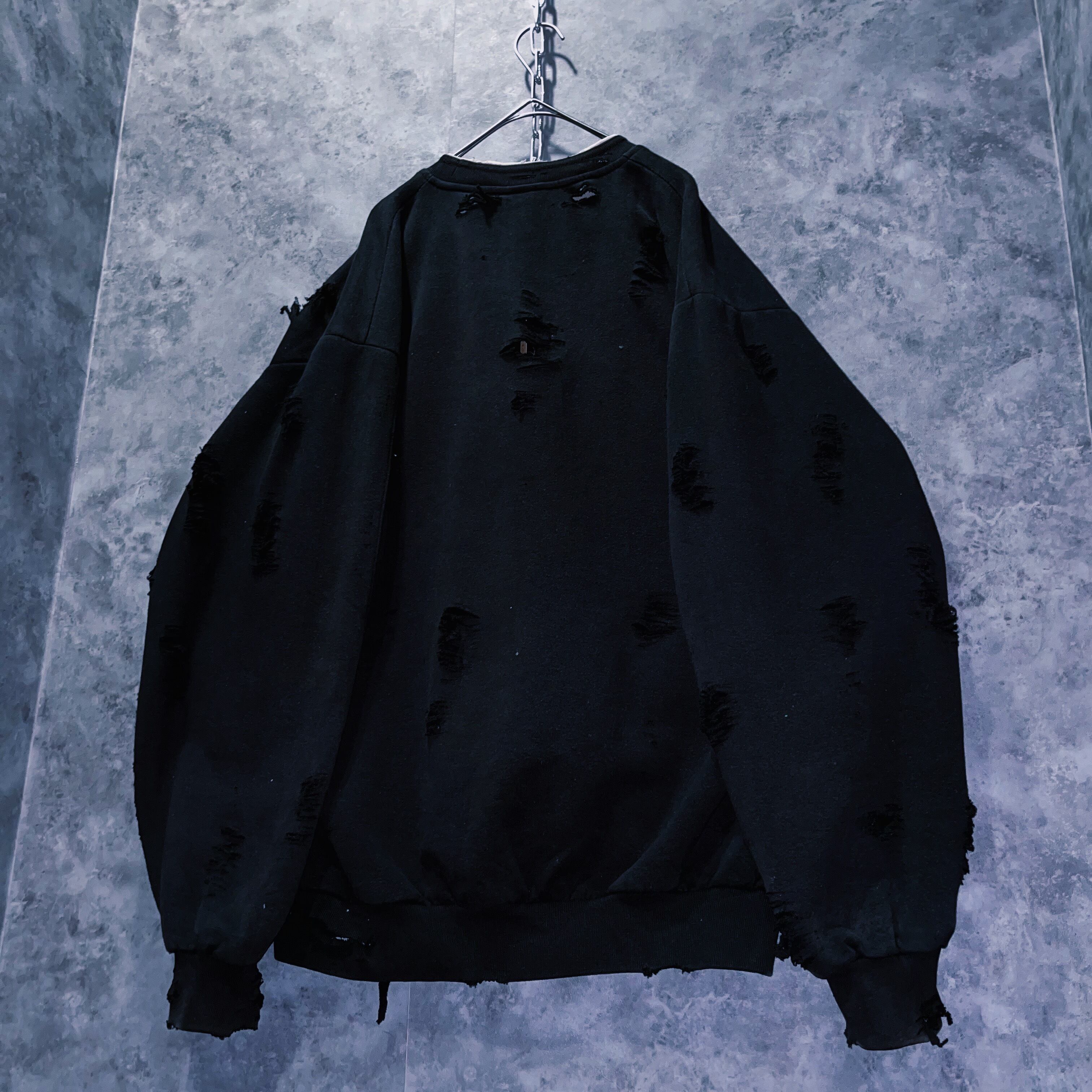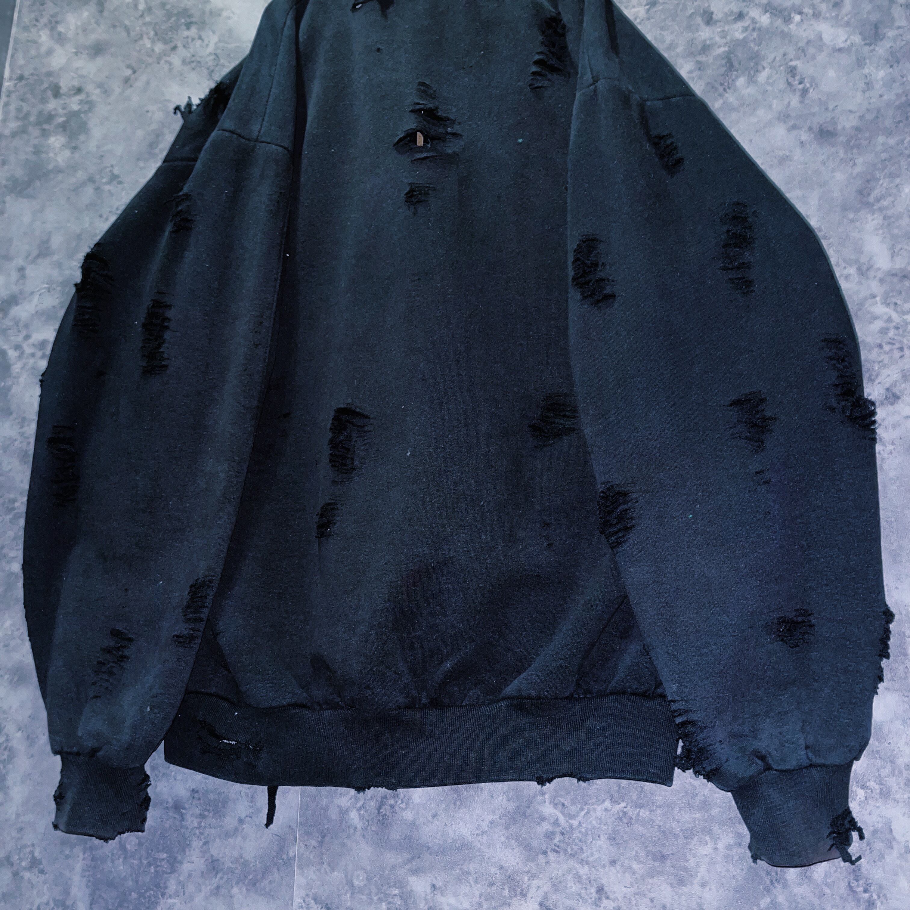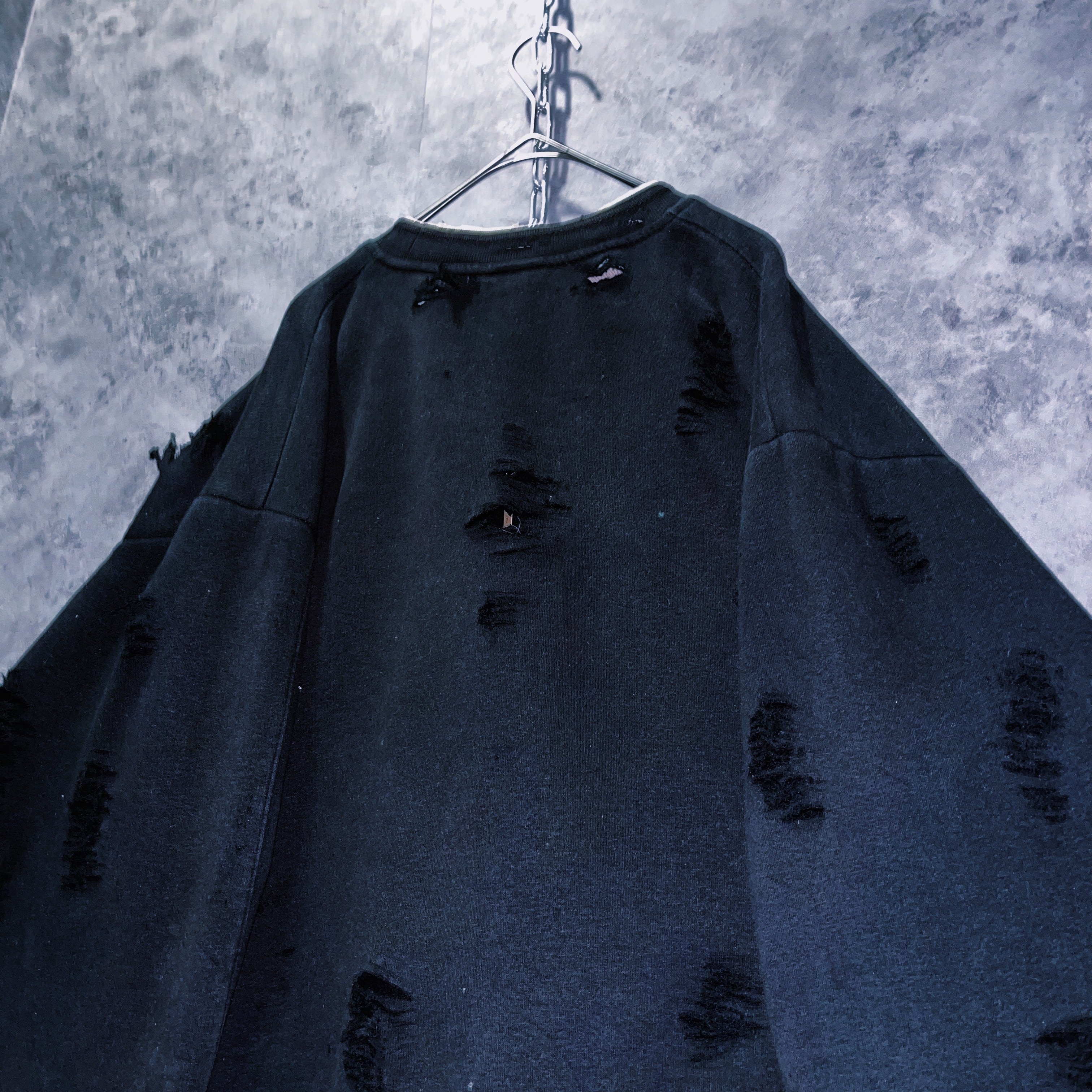 首元にはひっそりとベージュカラーが仕込まれており、さりげないカラースイッチングが首元を彩ってくれます。ゆったりとした着丈にグランジ加工。カジュアルながらかっこいいデザインです。