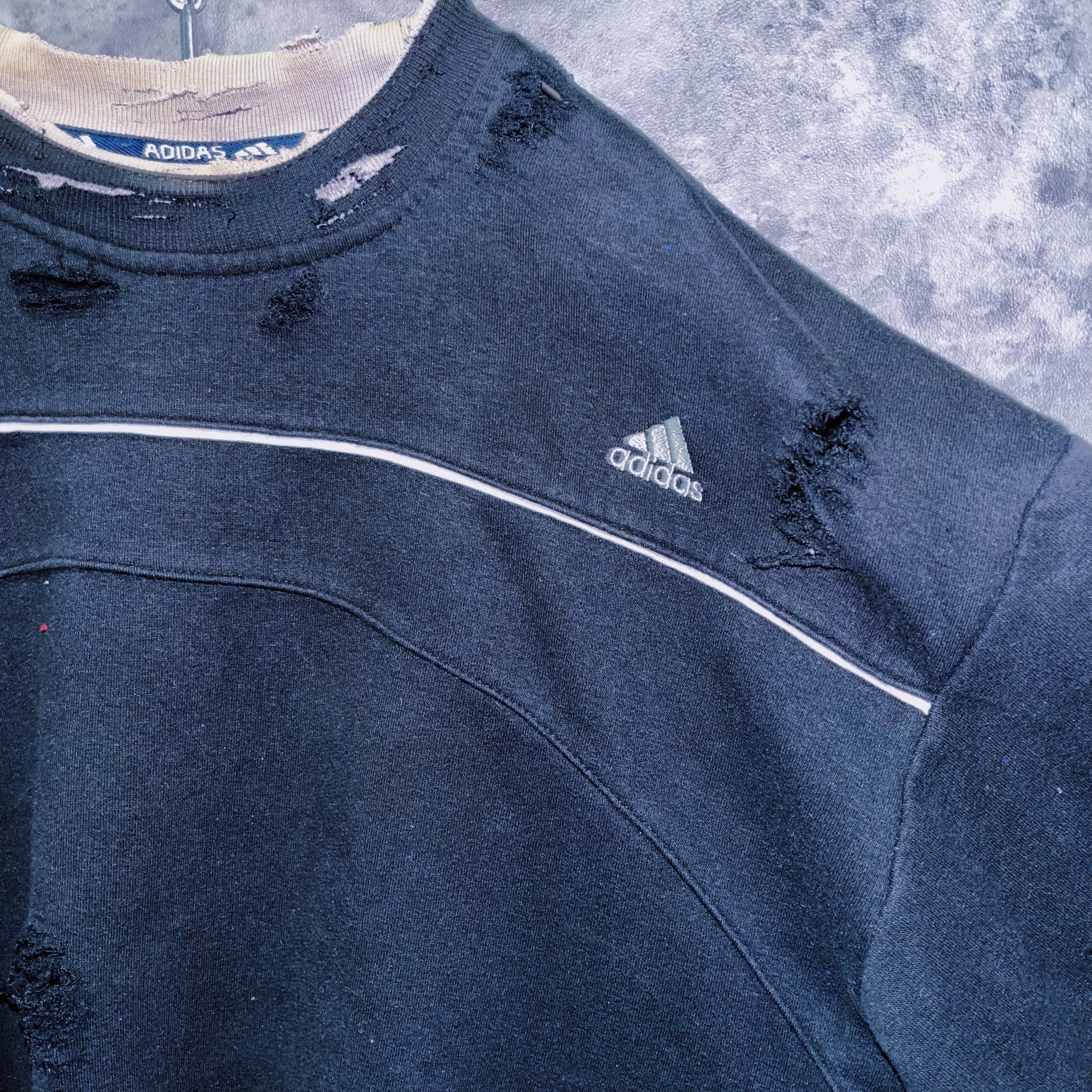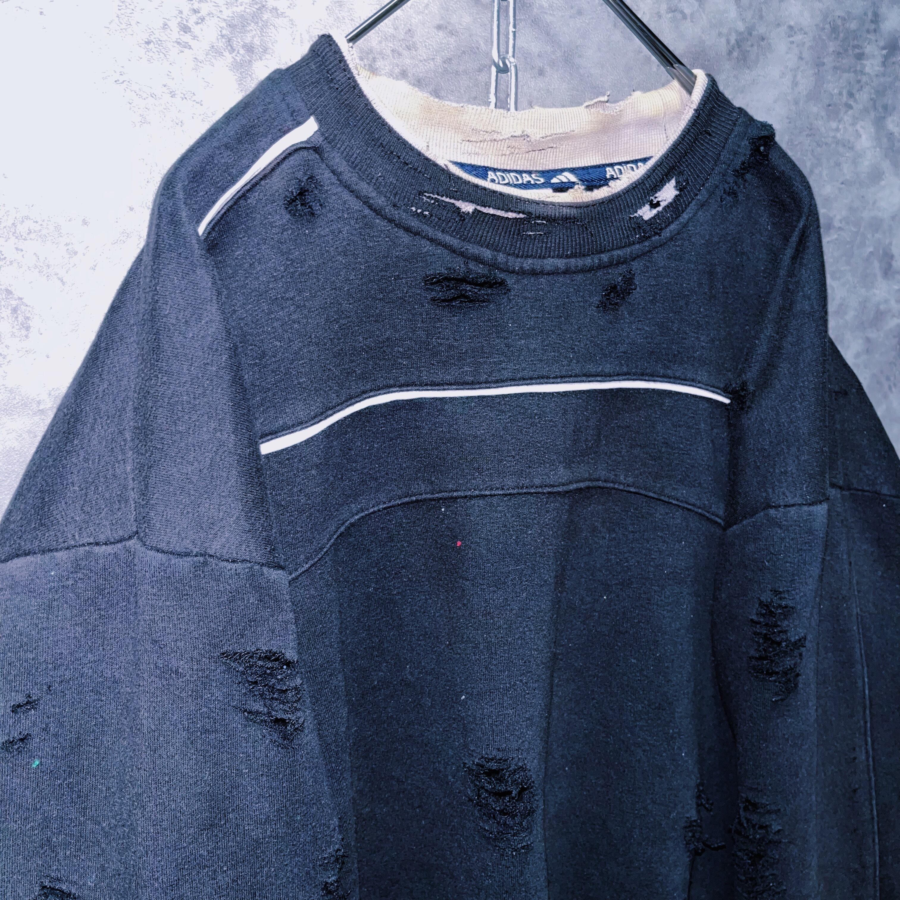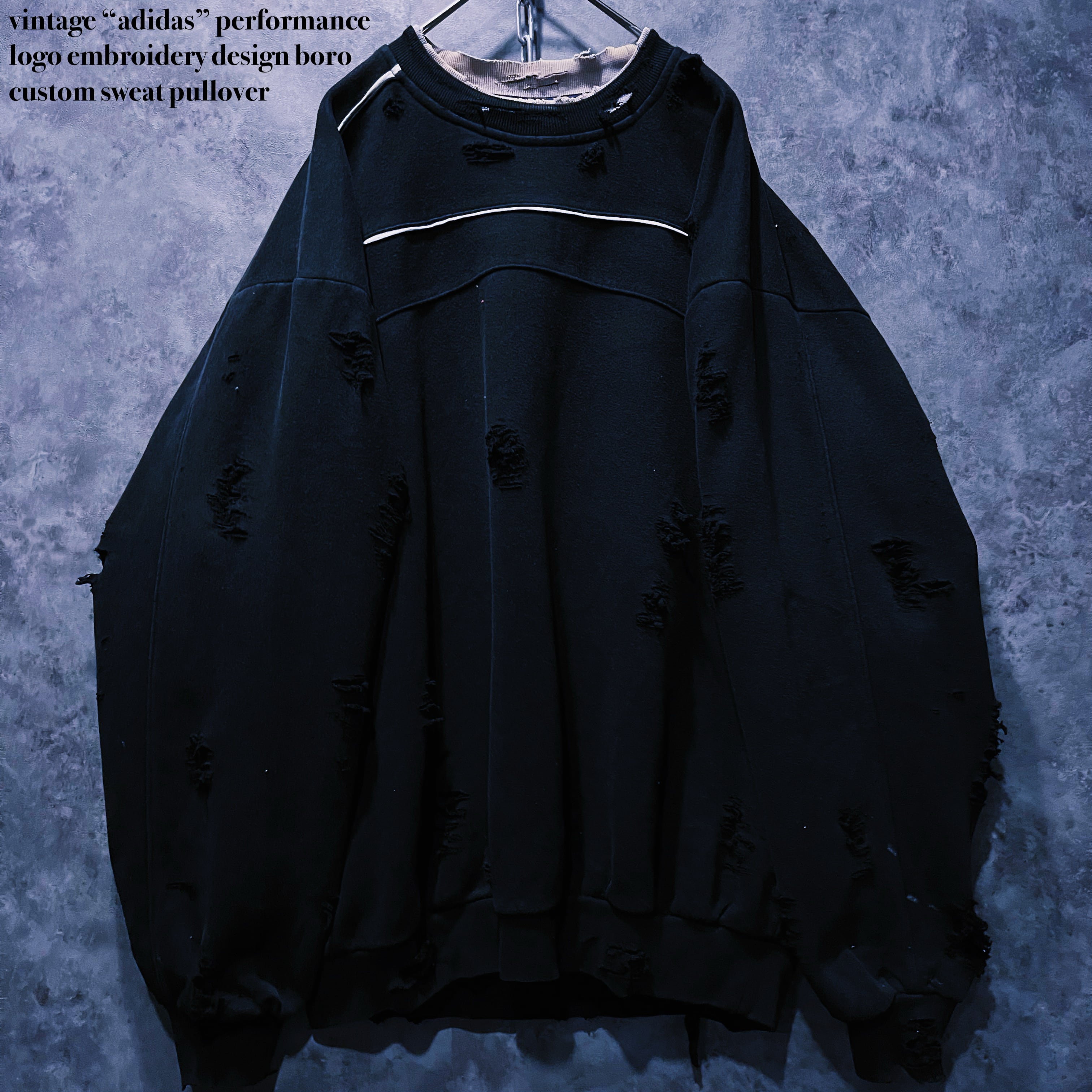 ヴィンテージ“adidas”パフォーマンスロゴエンブロイダリーデザインボロカスタムスウェットプルオーバー