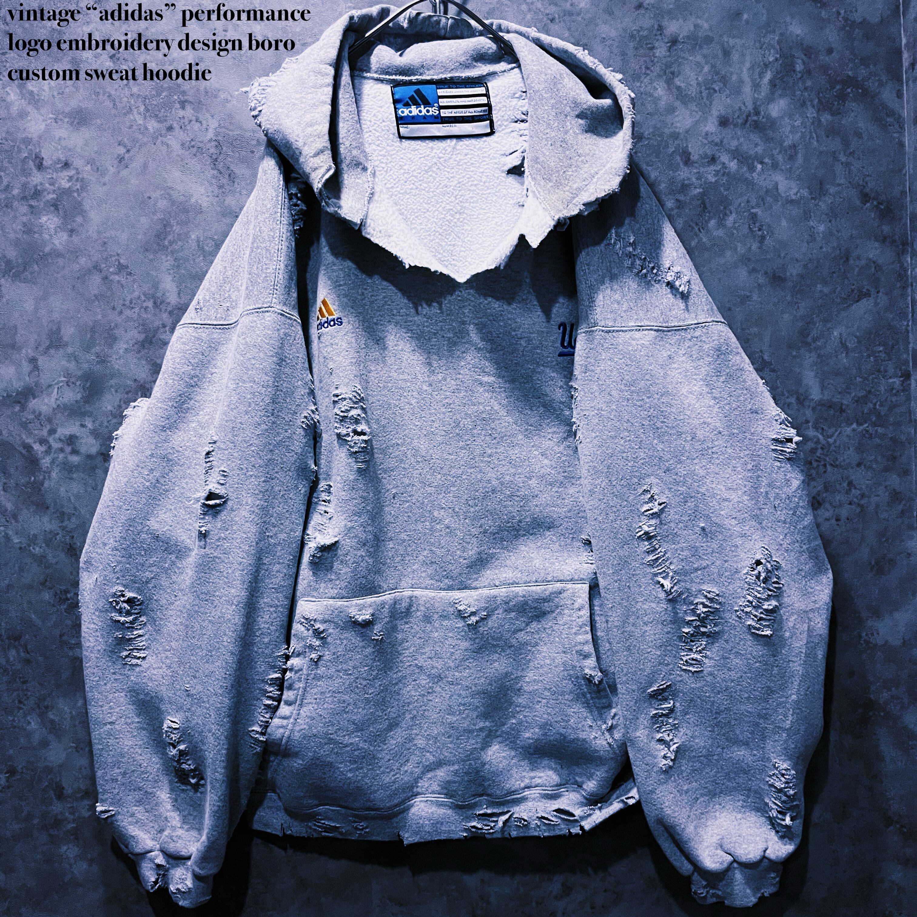 ヴィンテージ“adidas”パフォーマンスロゴエンブロイダリーデザインボロカスタムスウェットフーディ