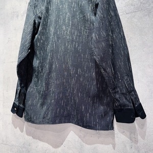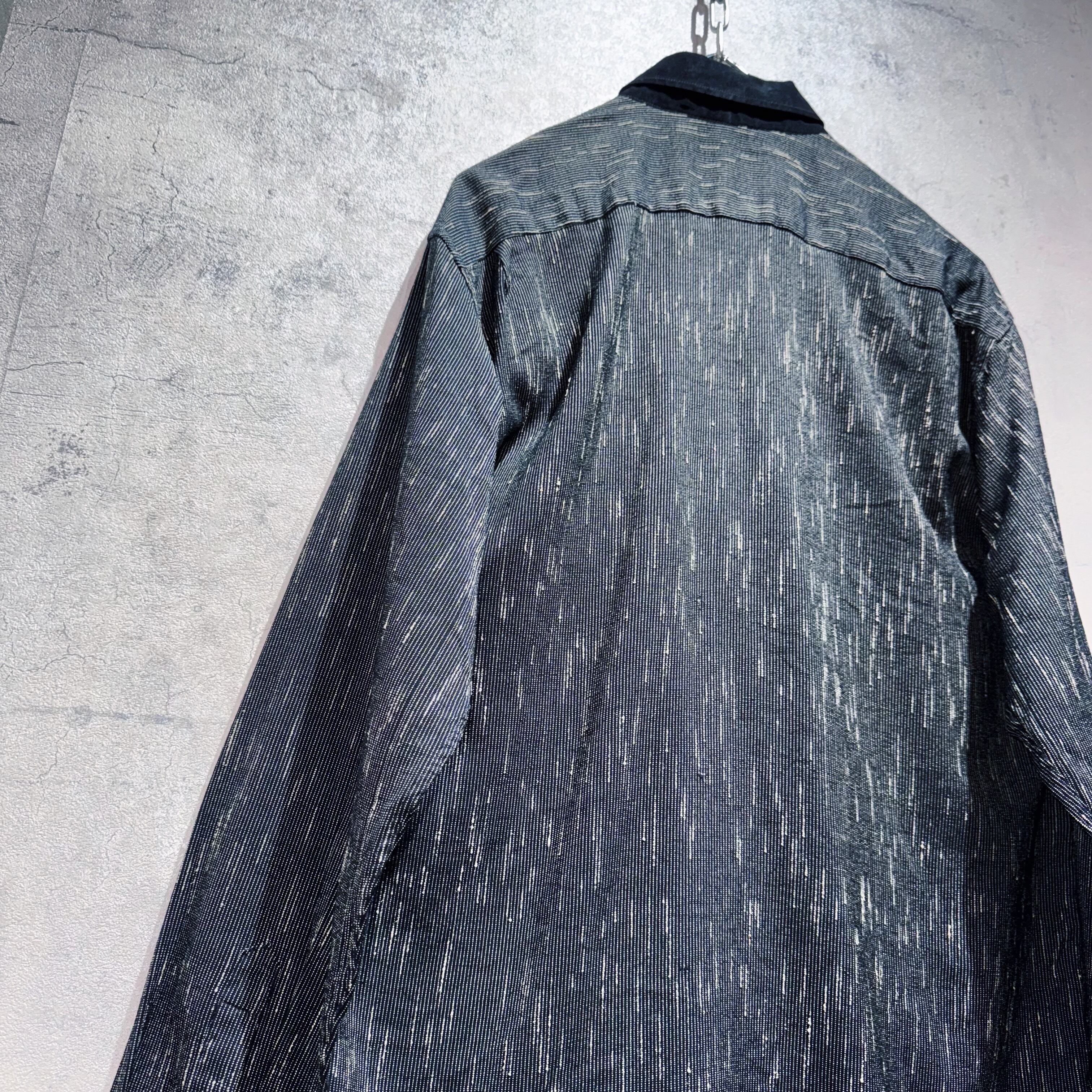ストライプ調のボディ。襟、フロント、袖元がスイッチングしフロントには刺繍のデザインをあしらったシャツ。