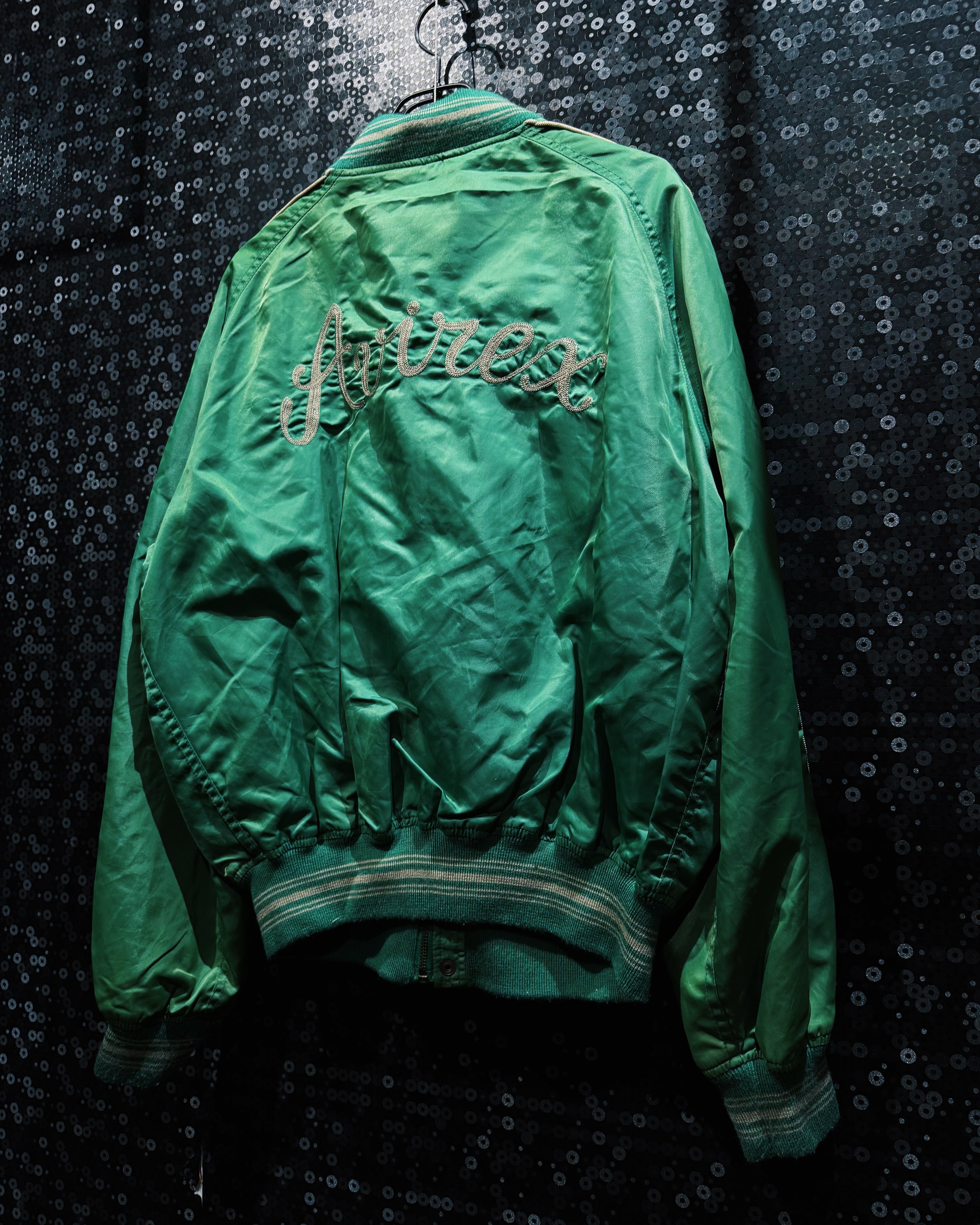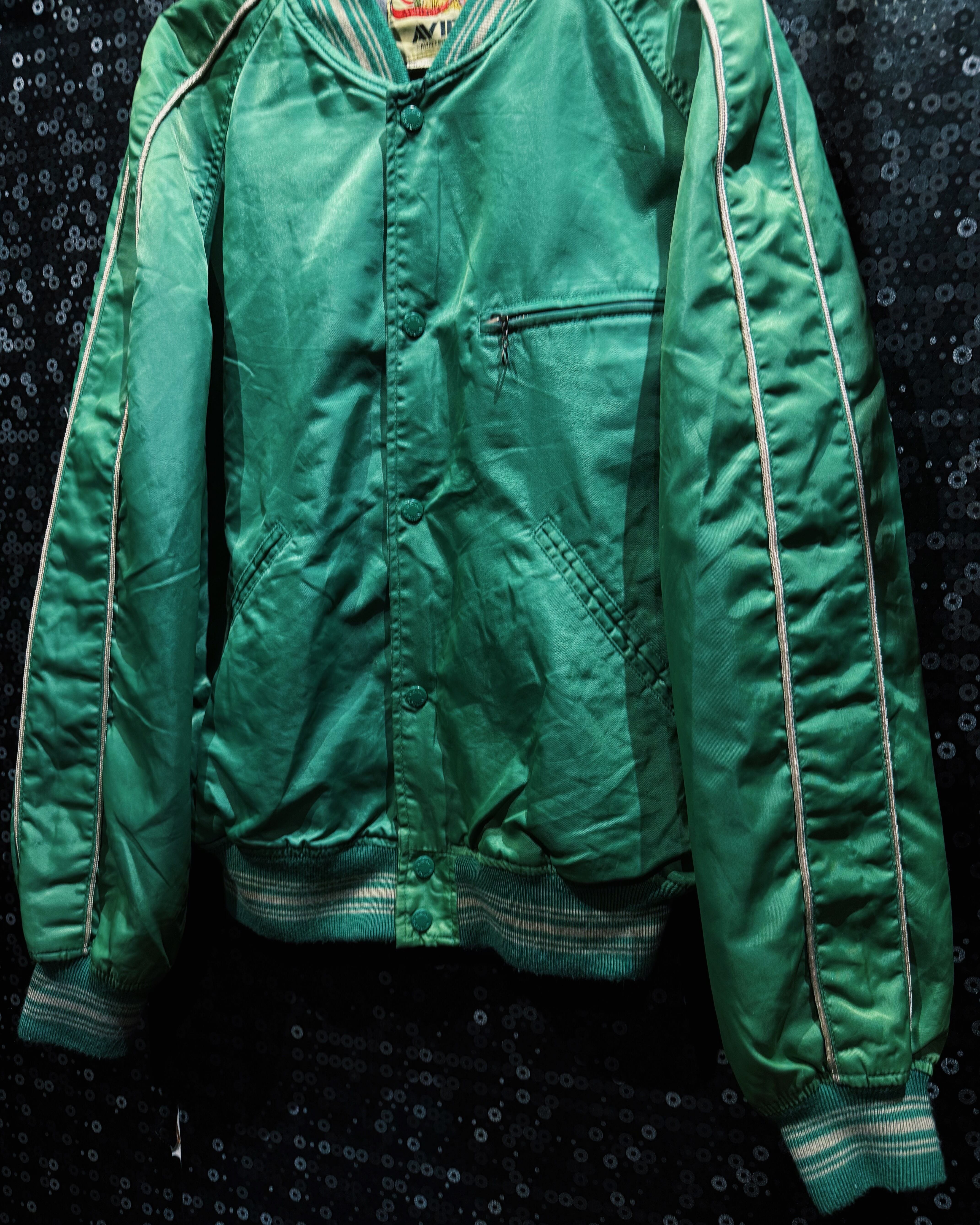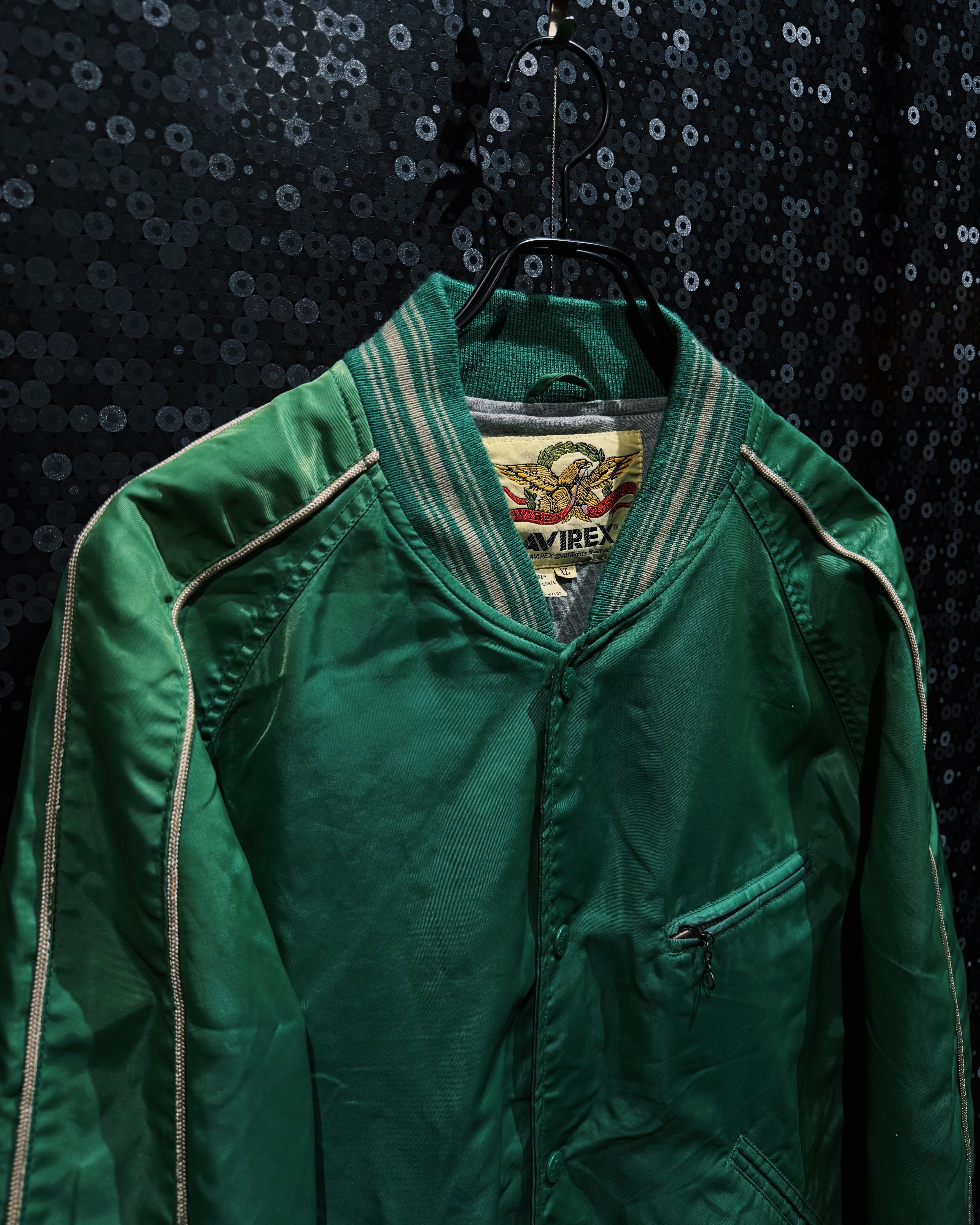 【ÆIEM】"AVIREX"vintage satin piping varsity jacket – emerald green edition