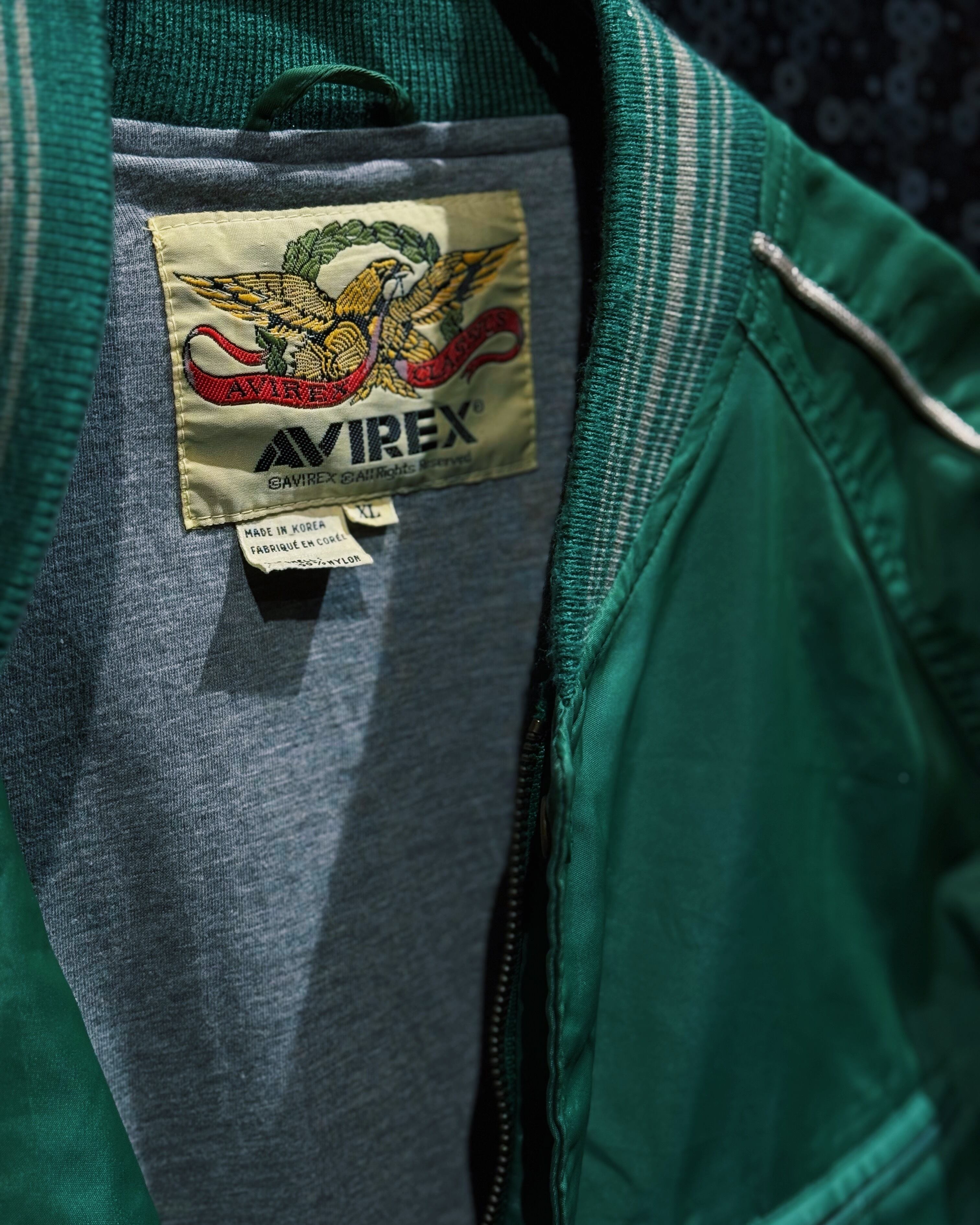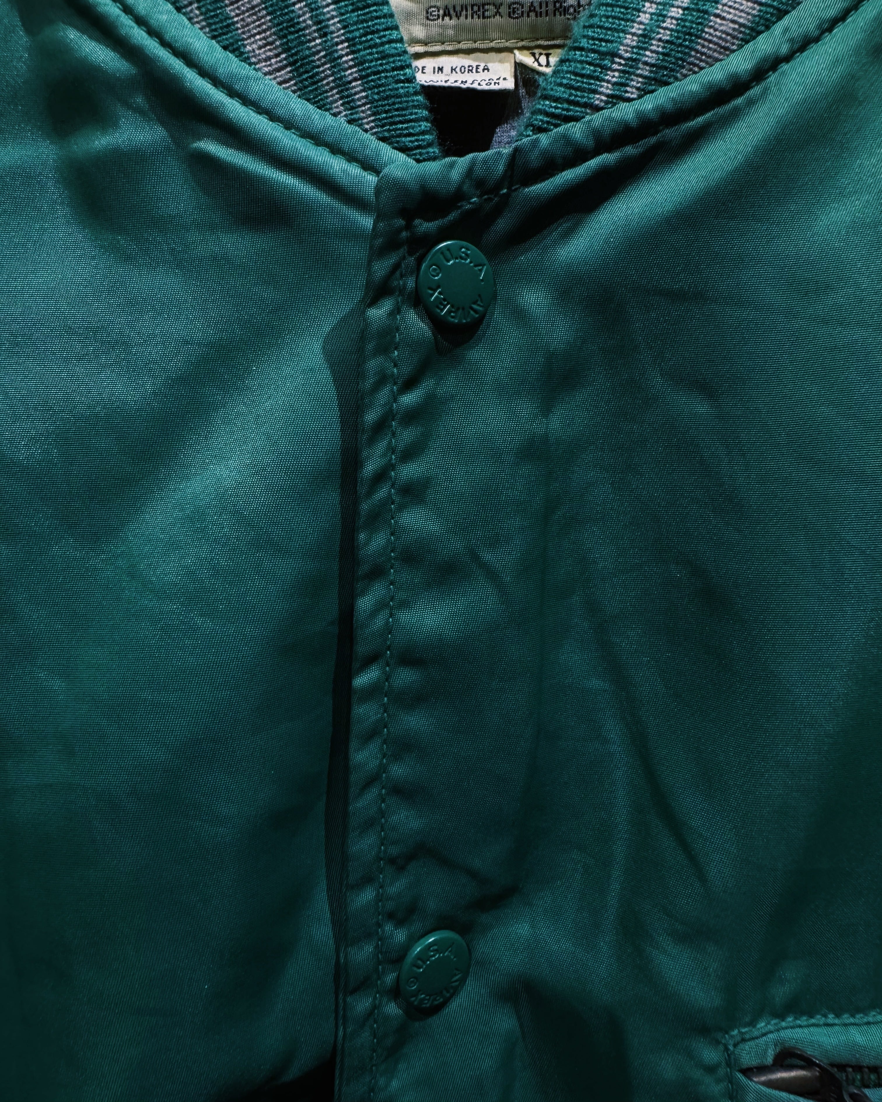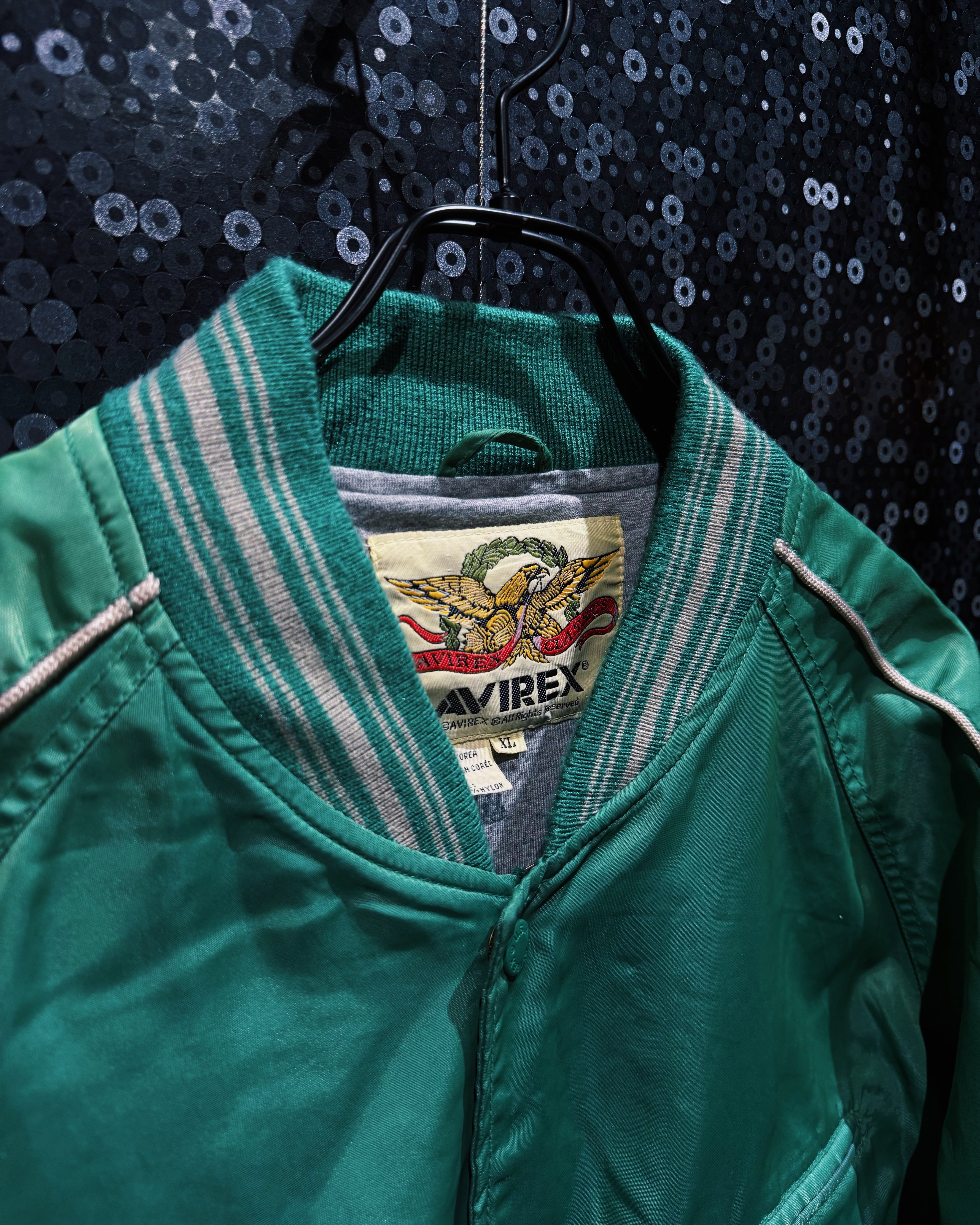 【ÆIEM】"AVIREX"vintage satin piping varsity jacket – emerald green edition