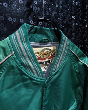 AVIREX(アヴィレックス)によるエメラルドグリーンのサテンスタジャン。