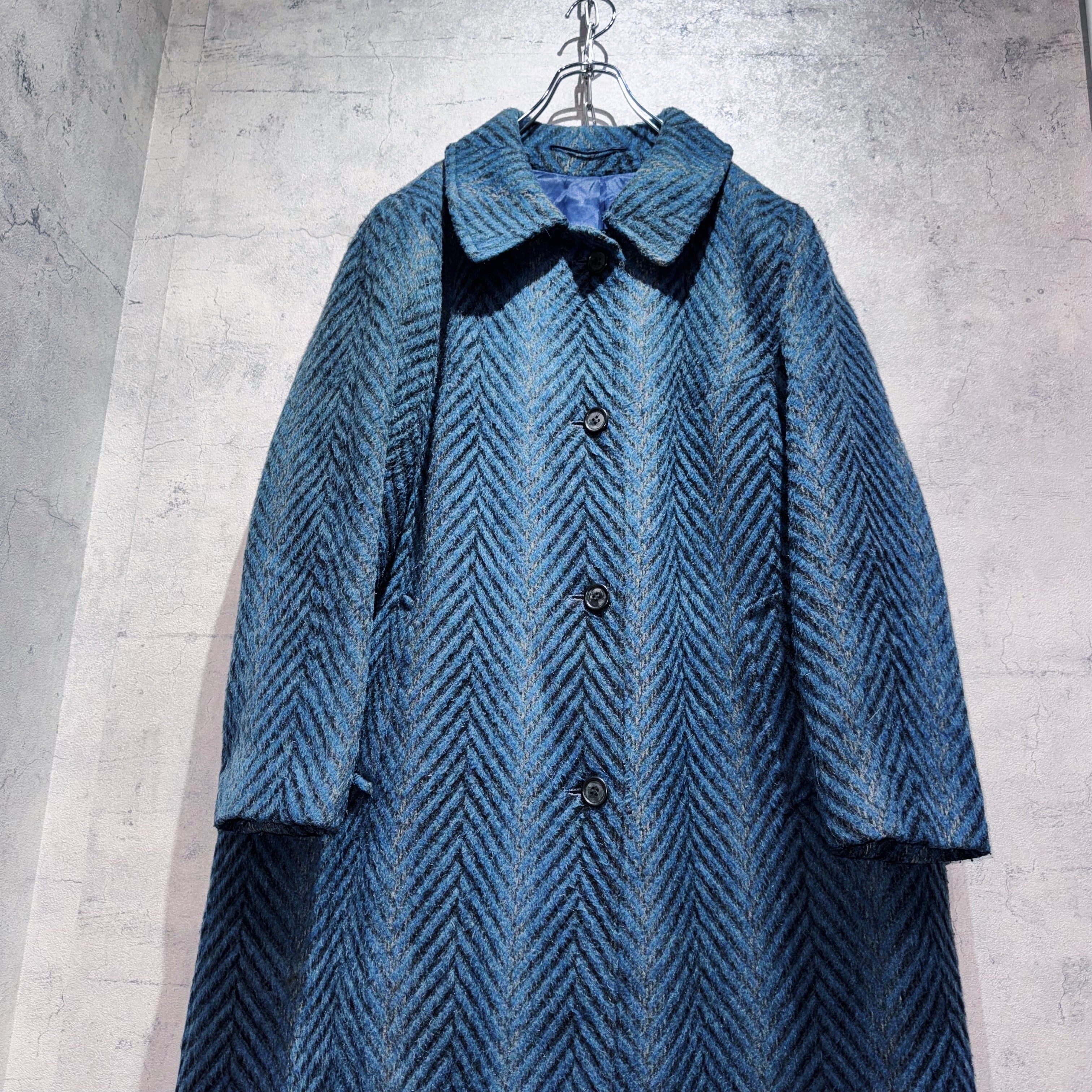 ヴィンテージヘリンボーンツイルロングステンカラーコート