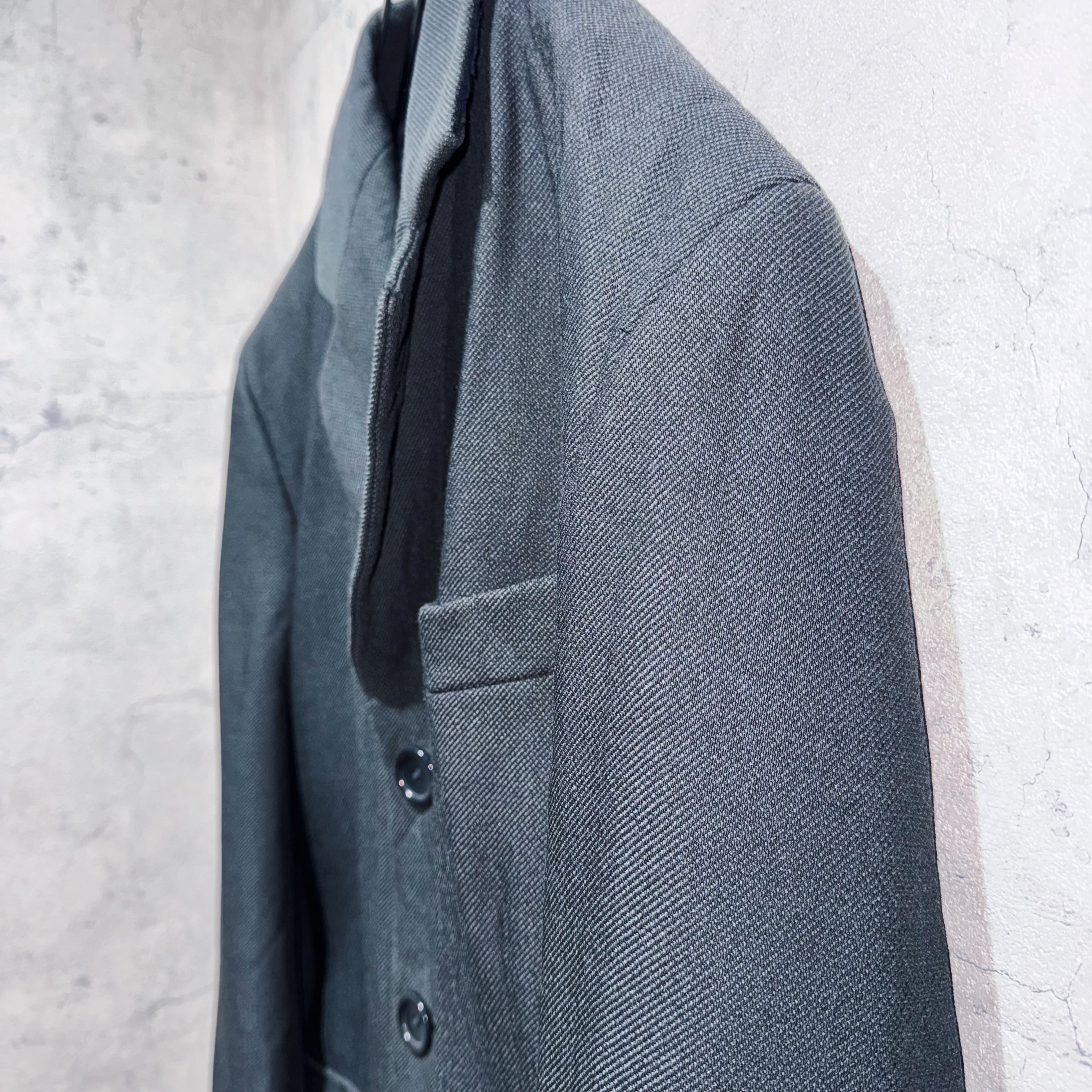 色合いは緑がかったダークグレー。シングルブレストの4BでVネックのゾーンが狭目でクラシカルな佇まいに。