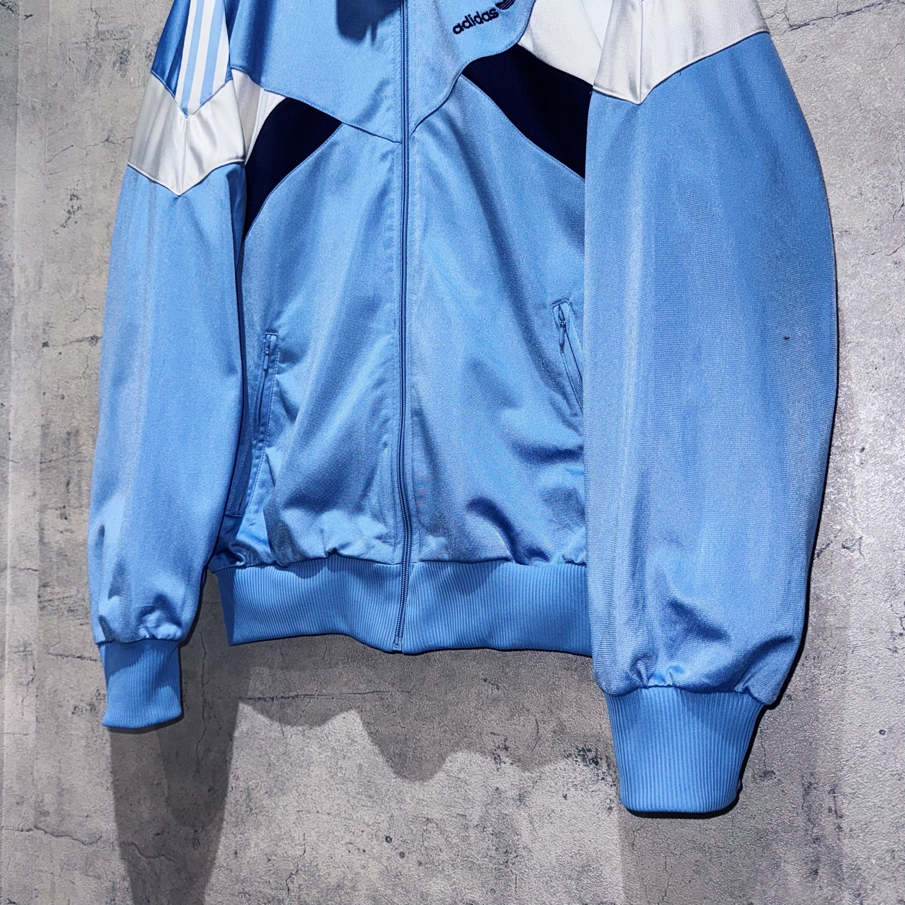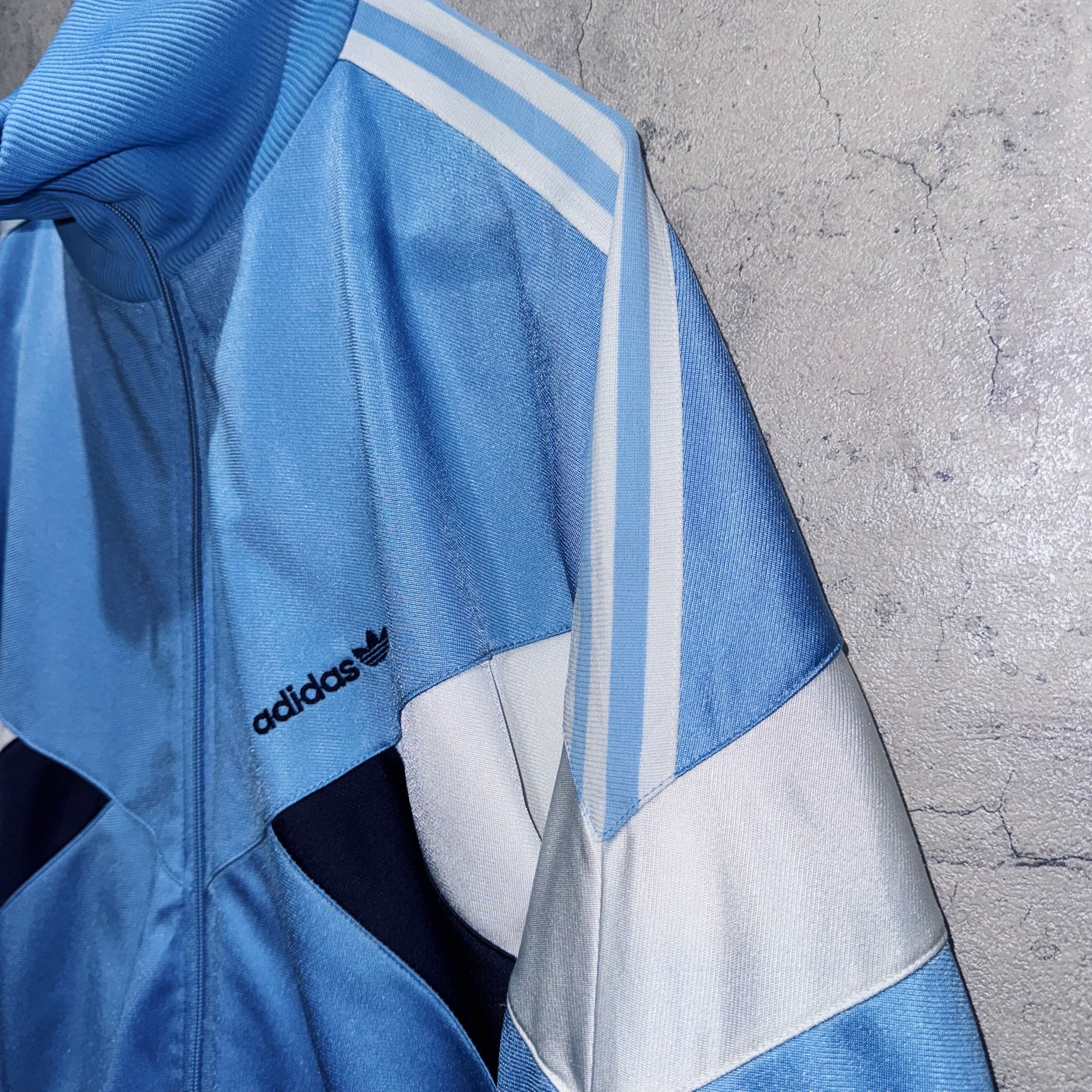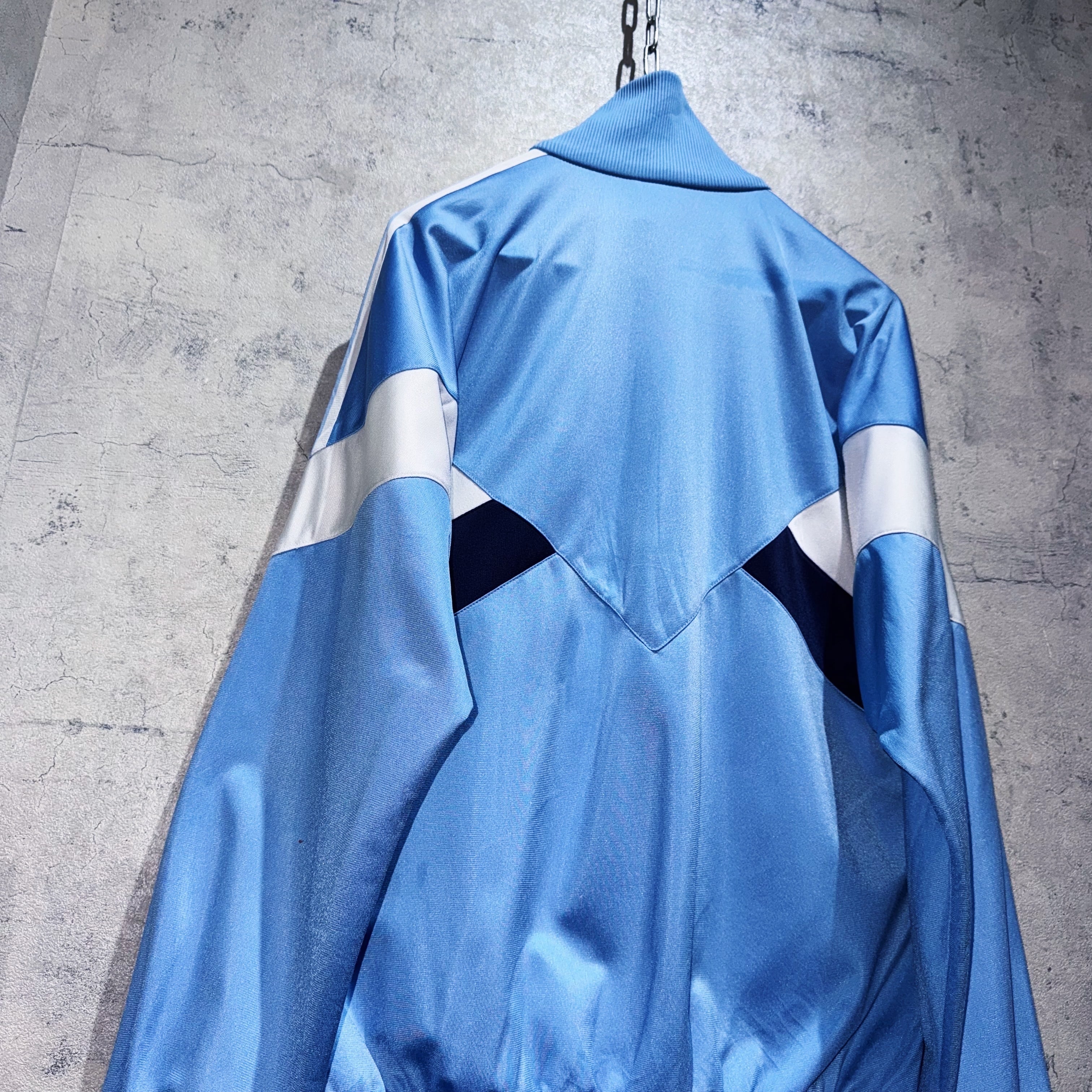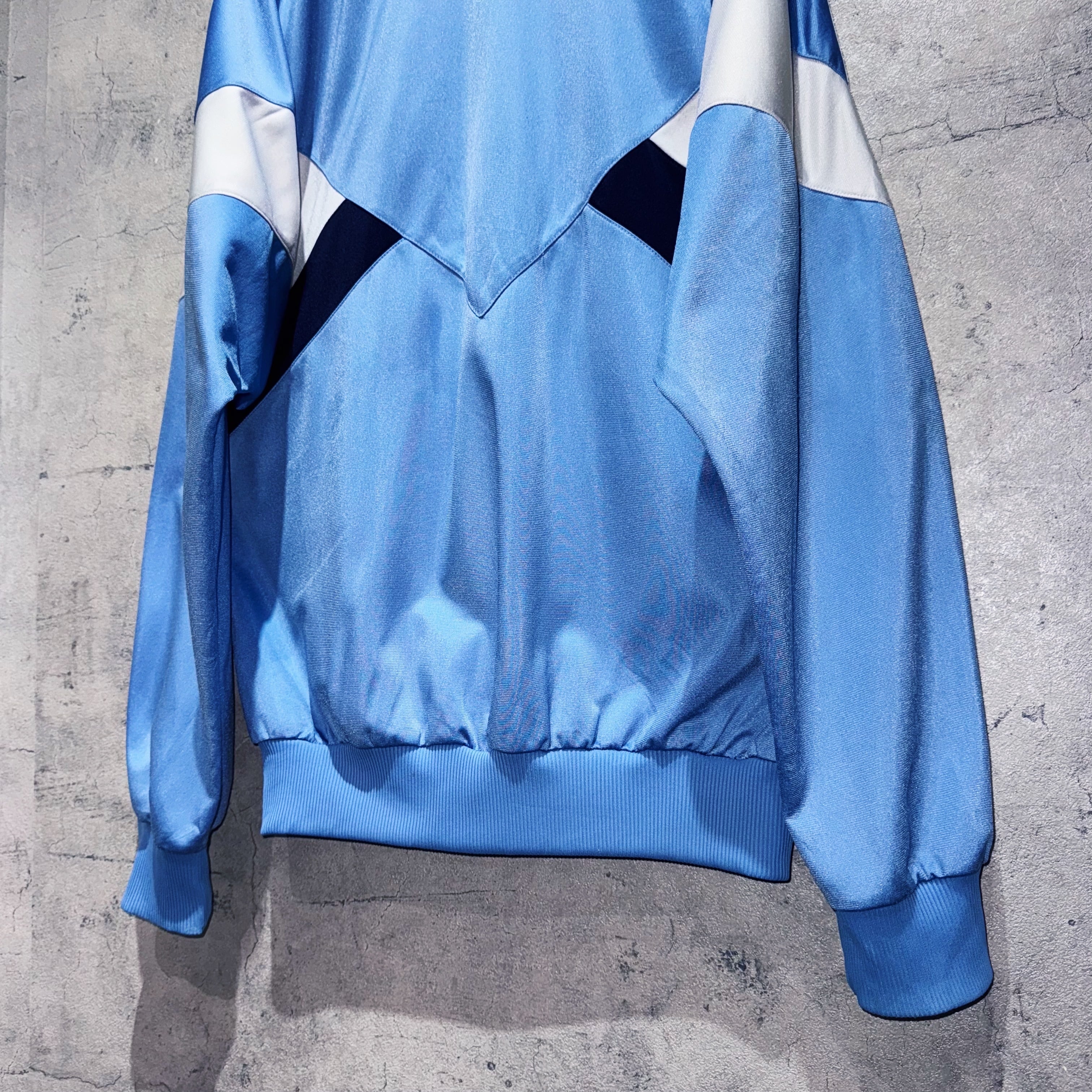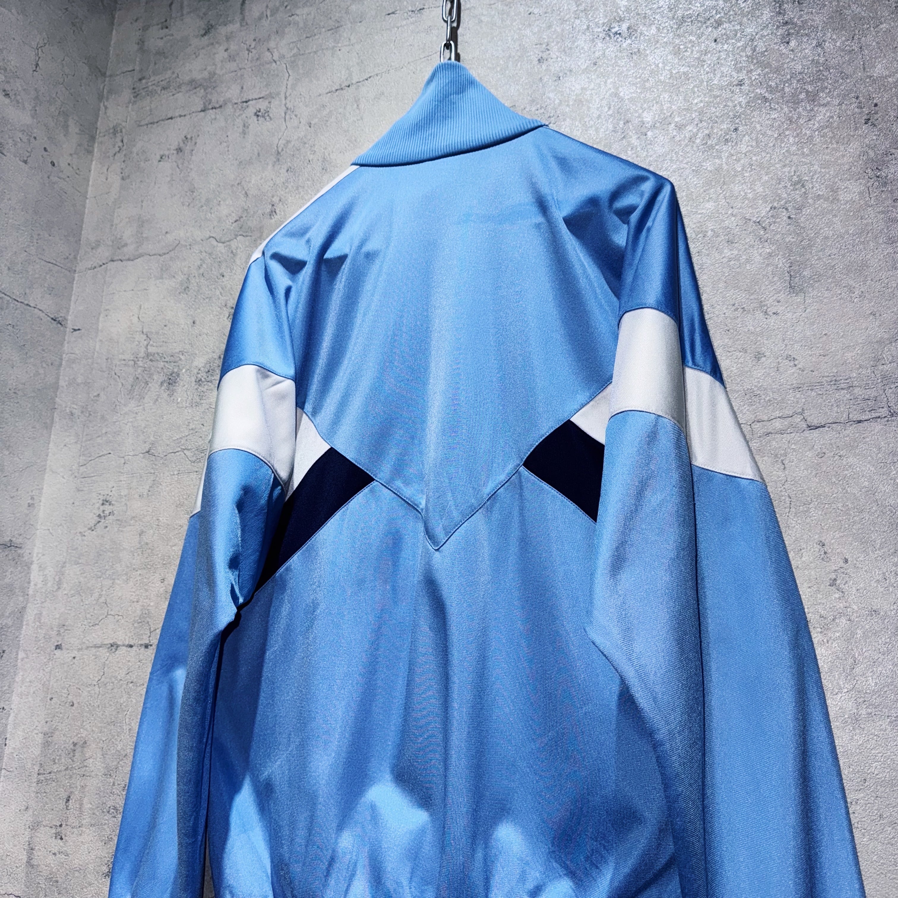 ベイビーブルーをメインカラーに、ネイビーとホワイトとのスイッチングがアクセントになったトラックジャケット。