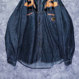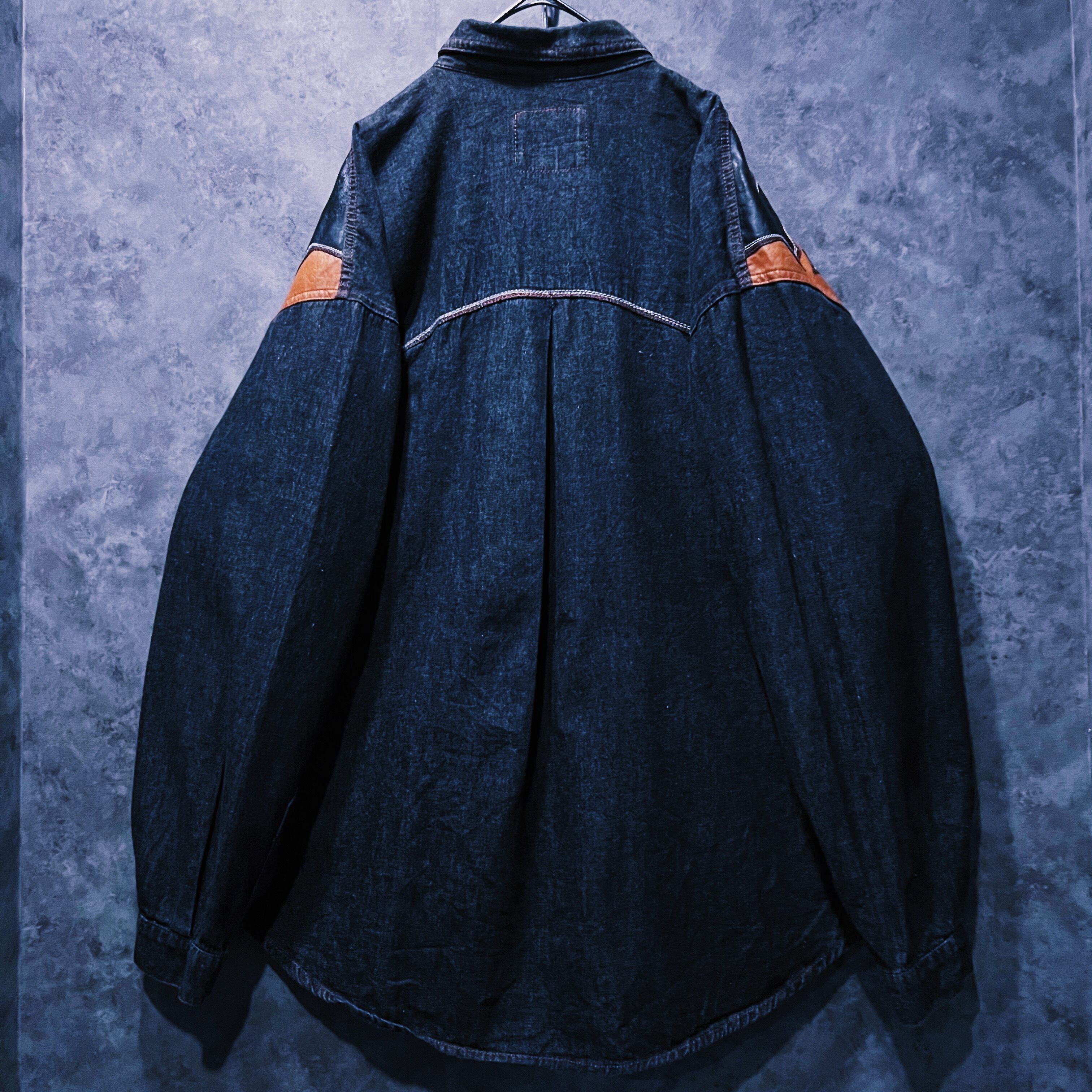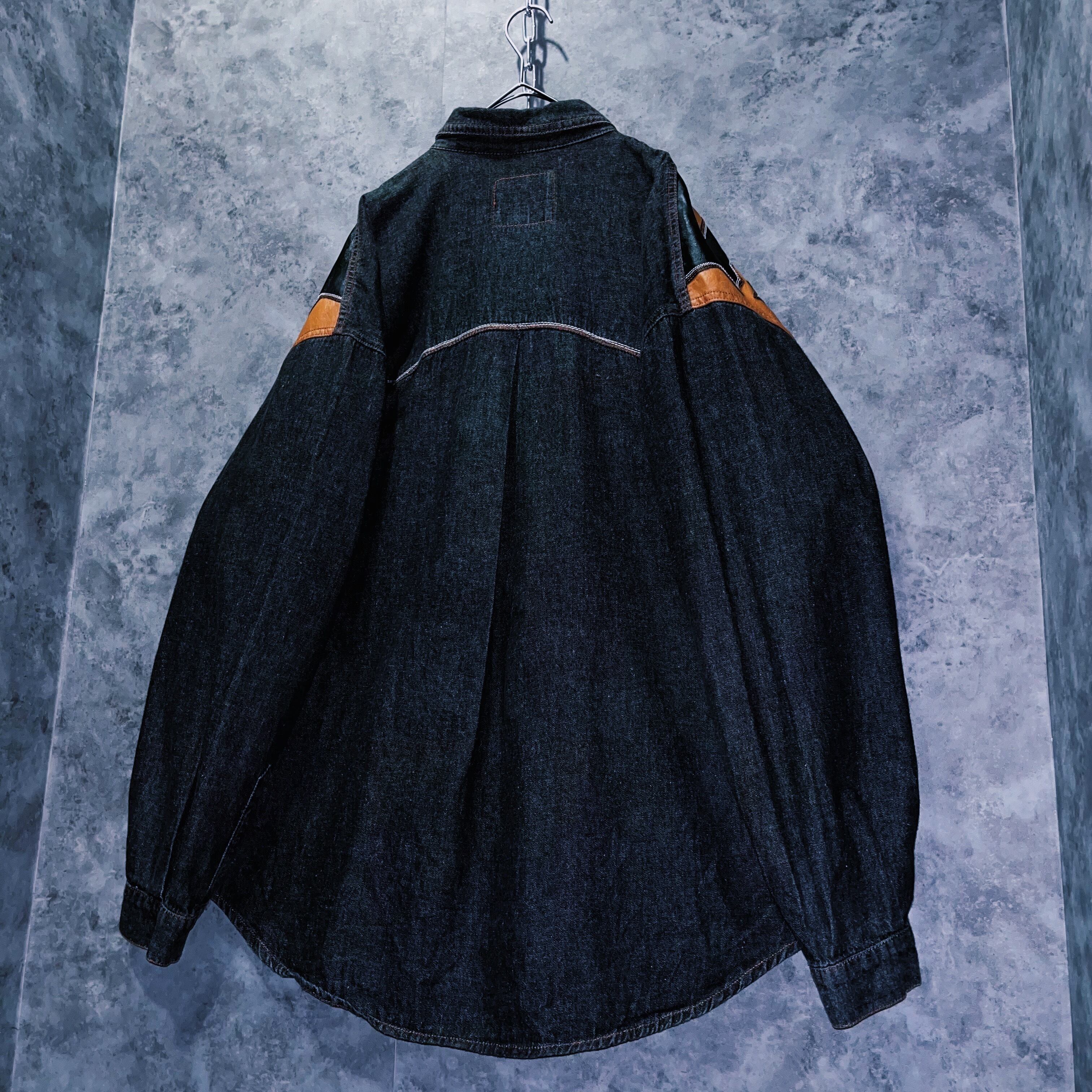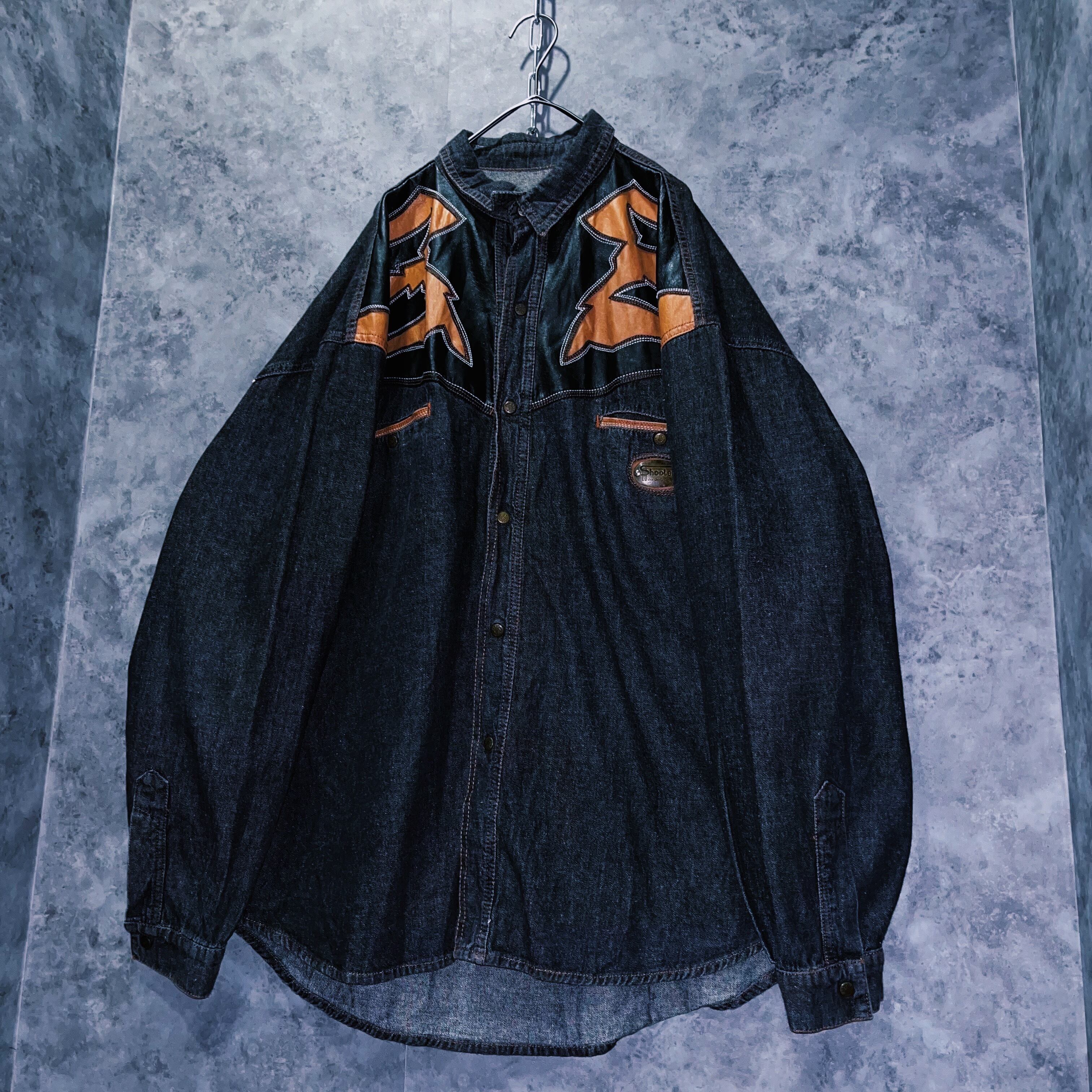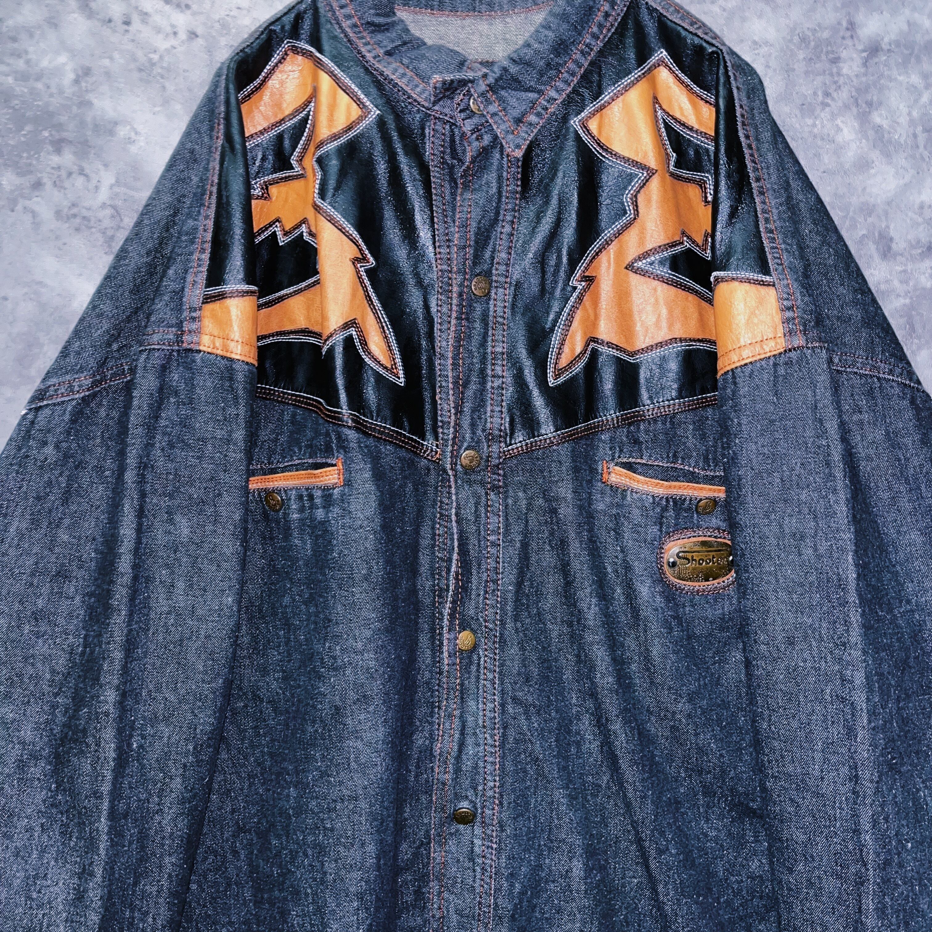 ヴィンテージレザースイッチングデザインデニムウェスタンシャツ