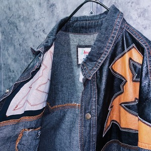 ブラックデニムをベースにショルダー部分にはレザースイッチングでエスニックなデザインを施した一枚。