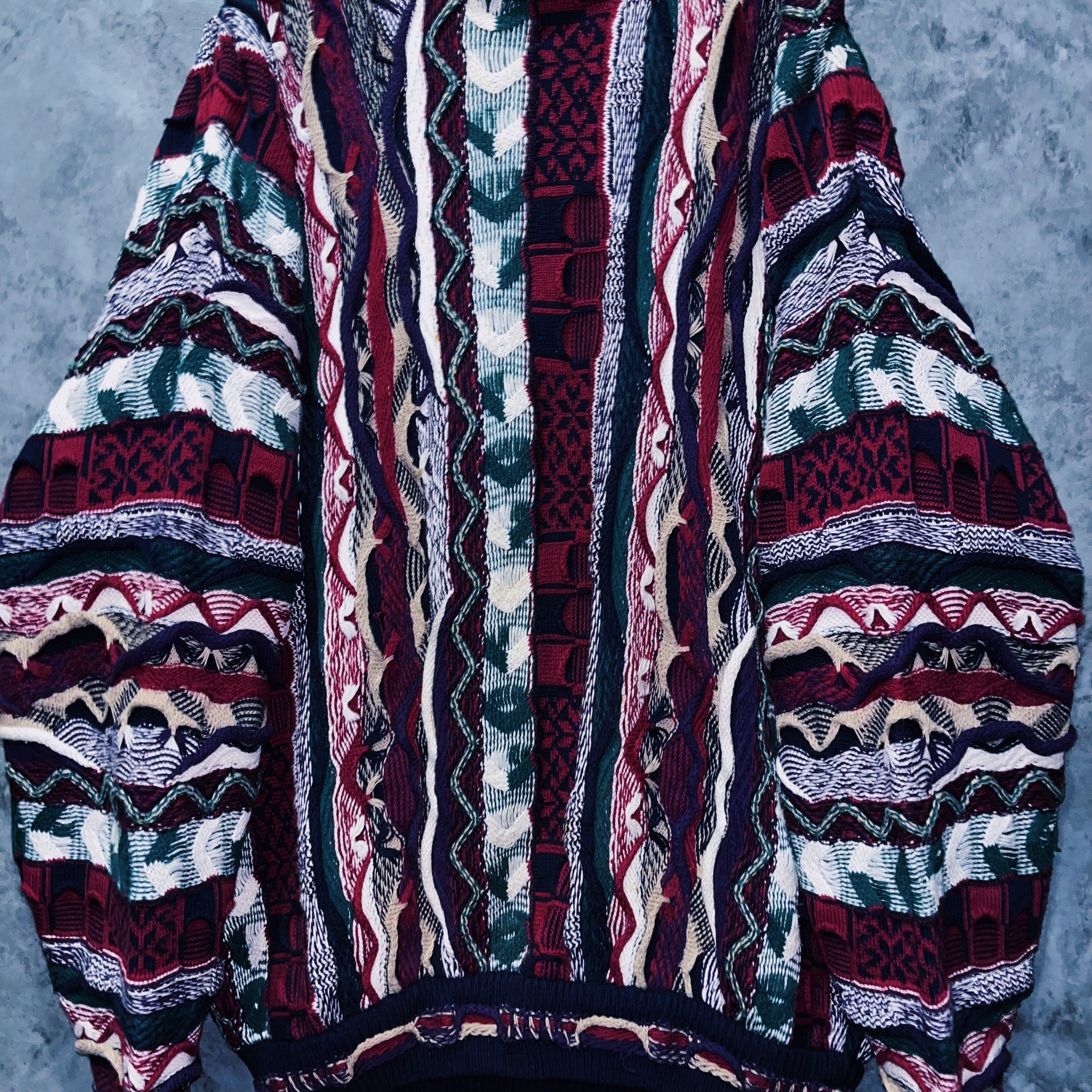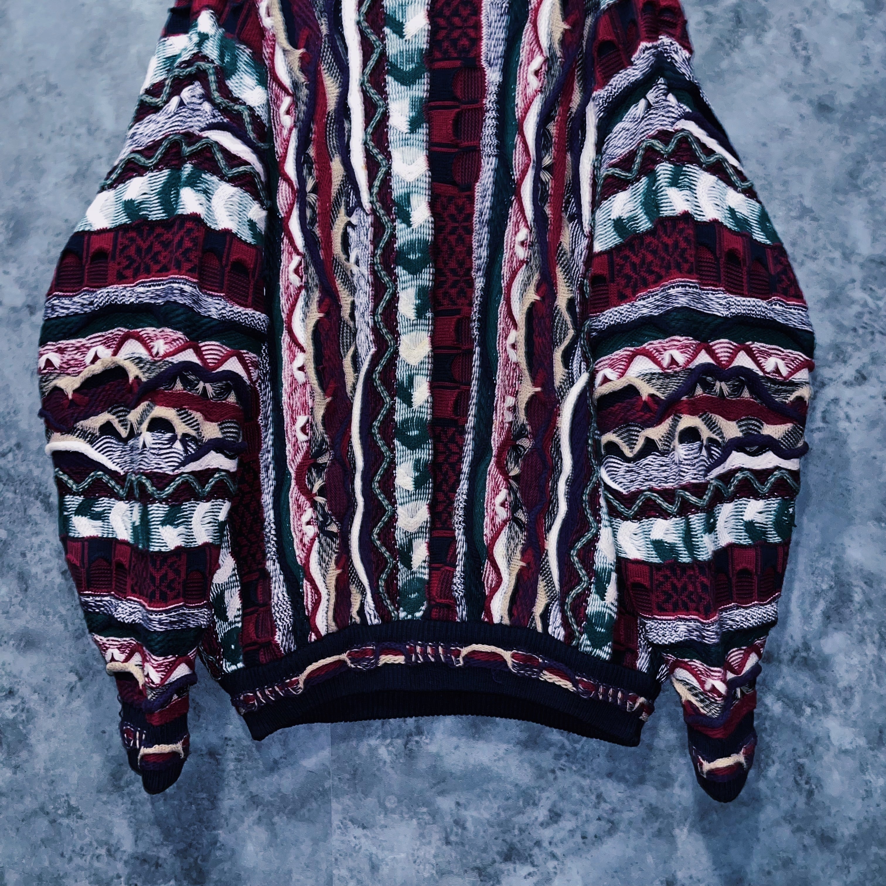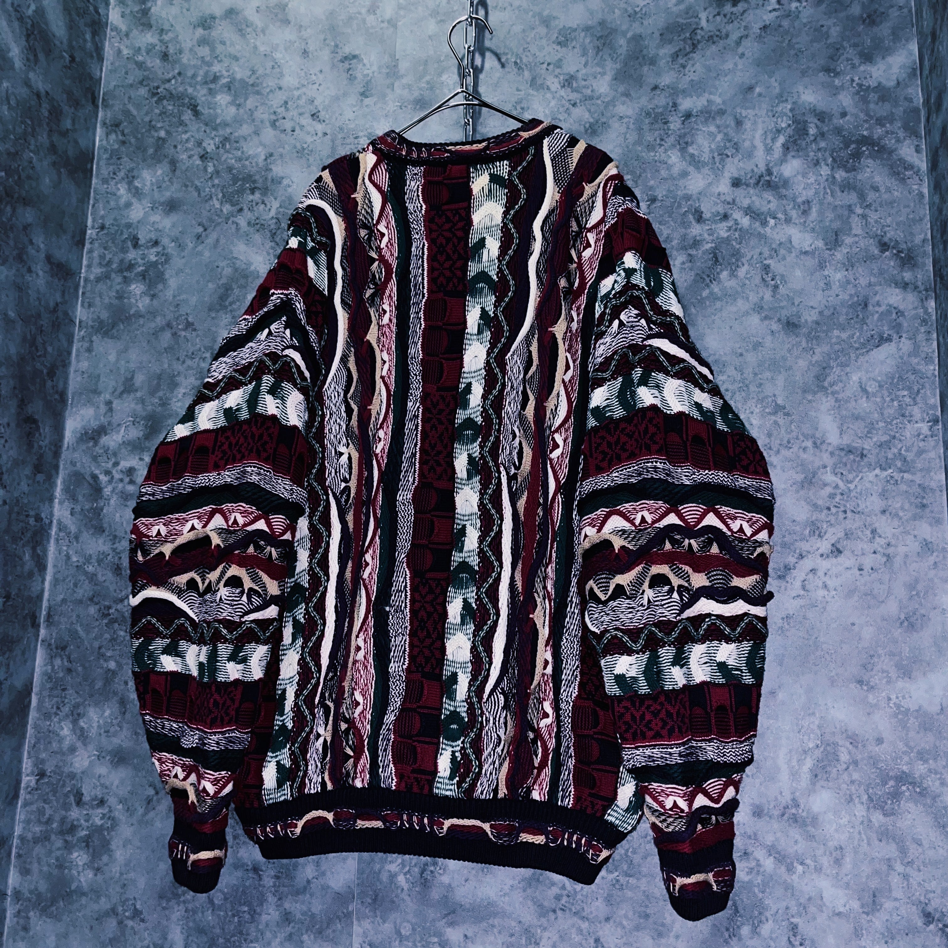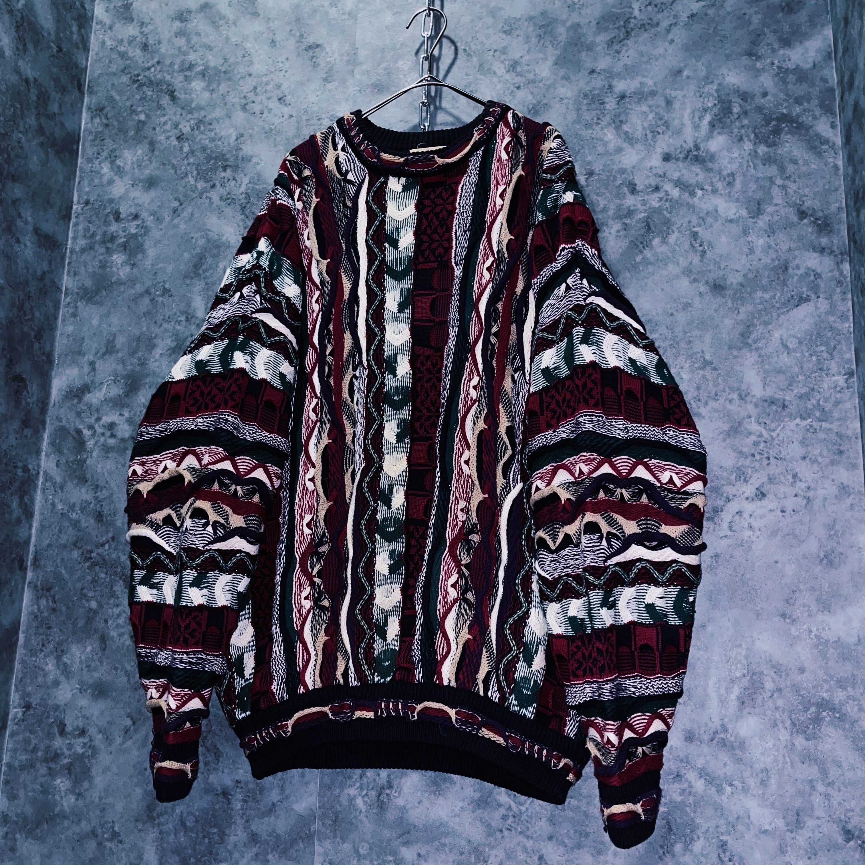90年代頃、世界的に大流行したカラフルな立体編みが特徴的な3Dニット。個性的な発色の良さが目を惹き、その人気は衰えることを知らず現在でも人気の高い、定番ヴィンテージアイテムです。