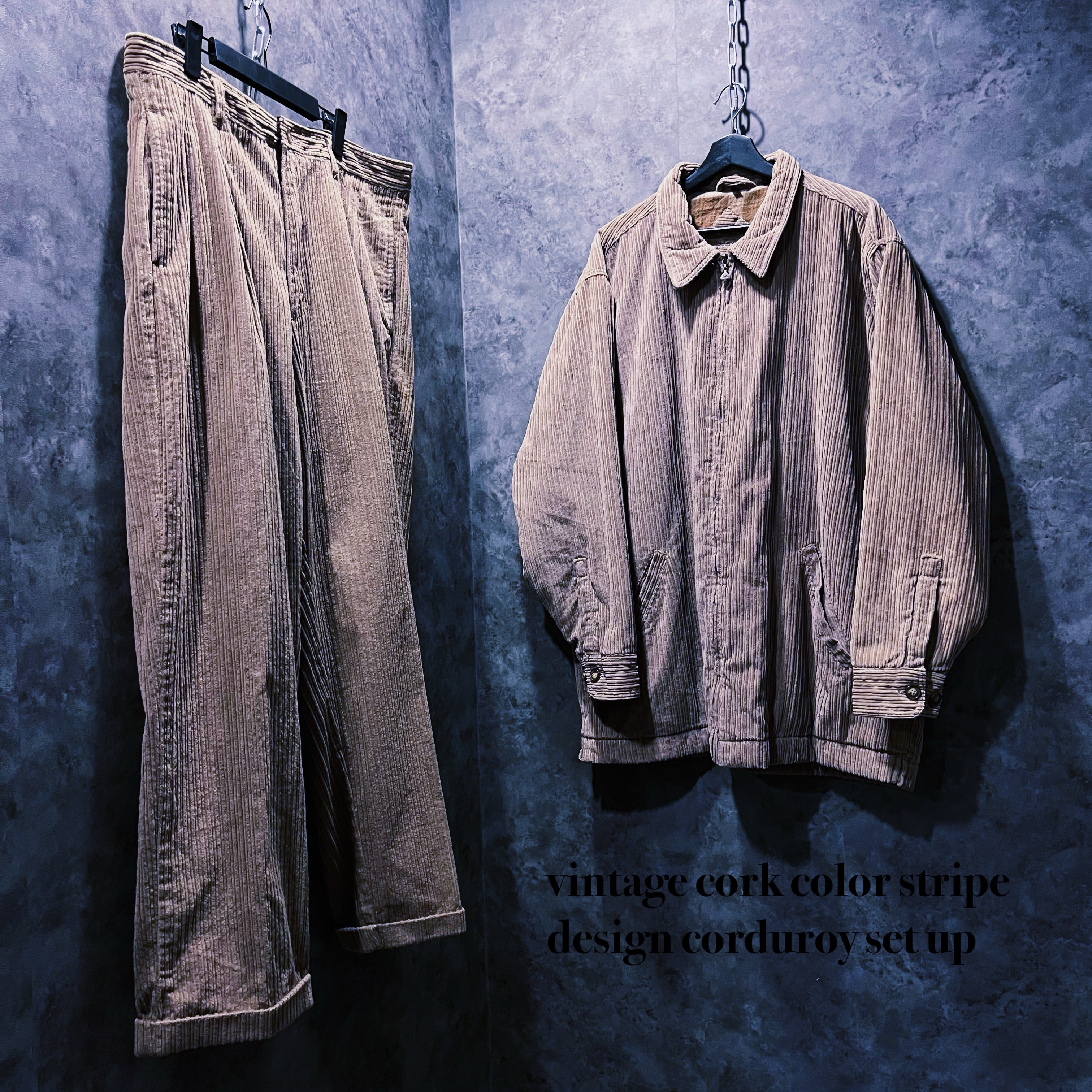 ヴィンテージコルクカラーストライプデザインコーデュロイセットアップ