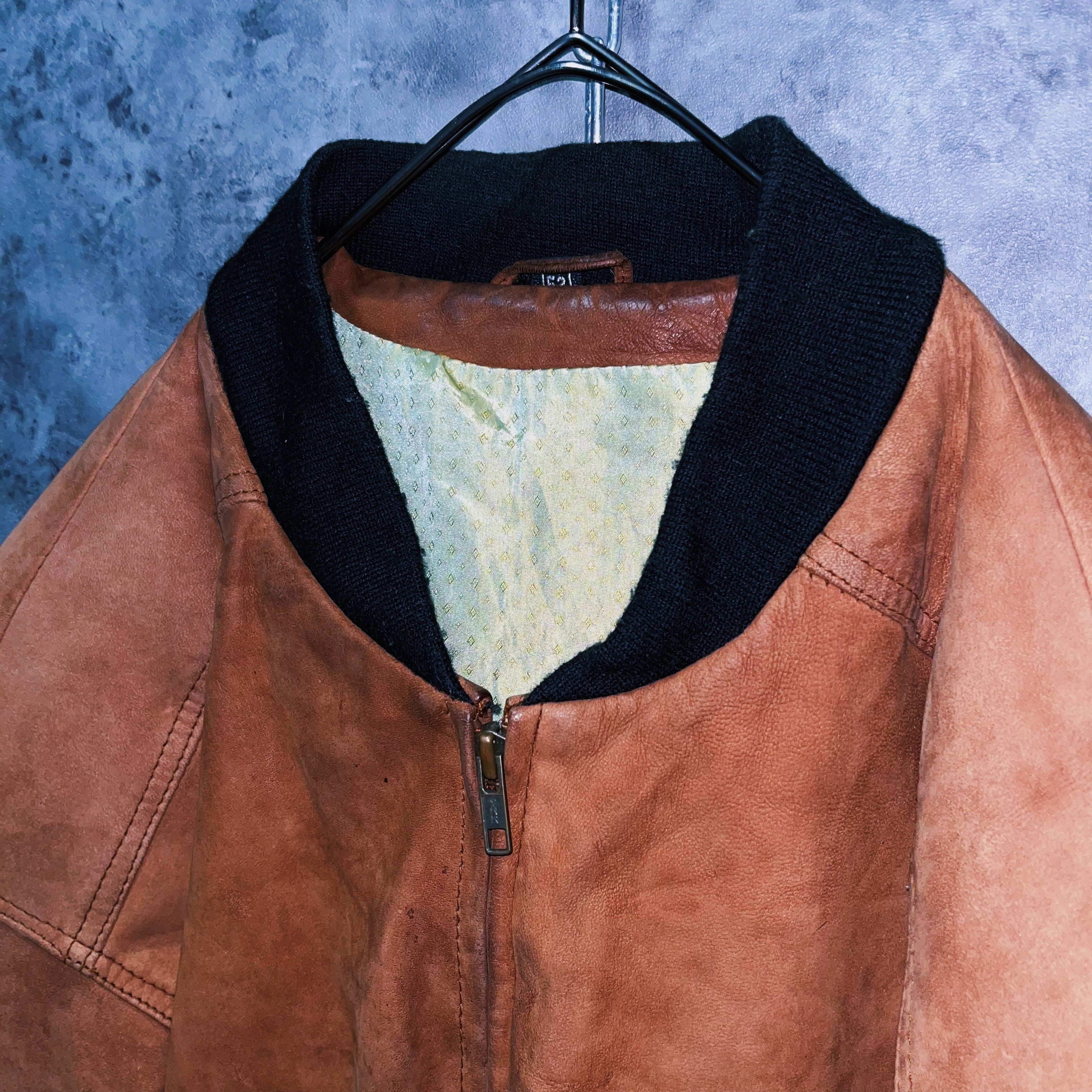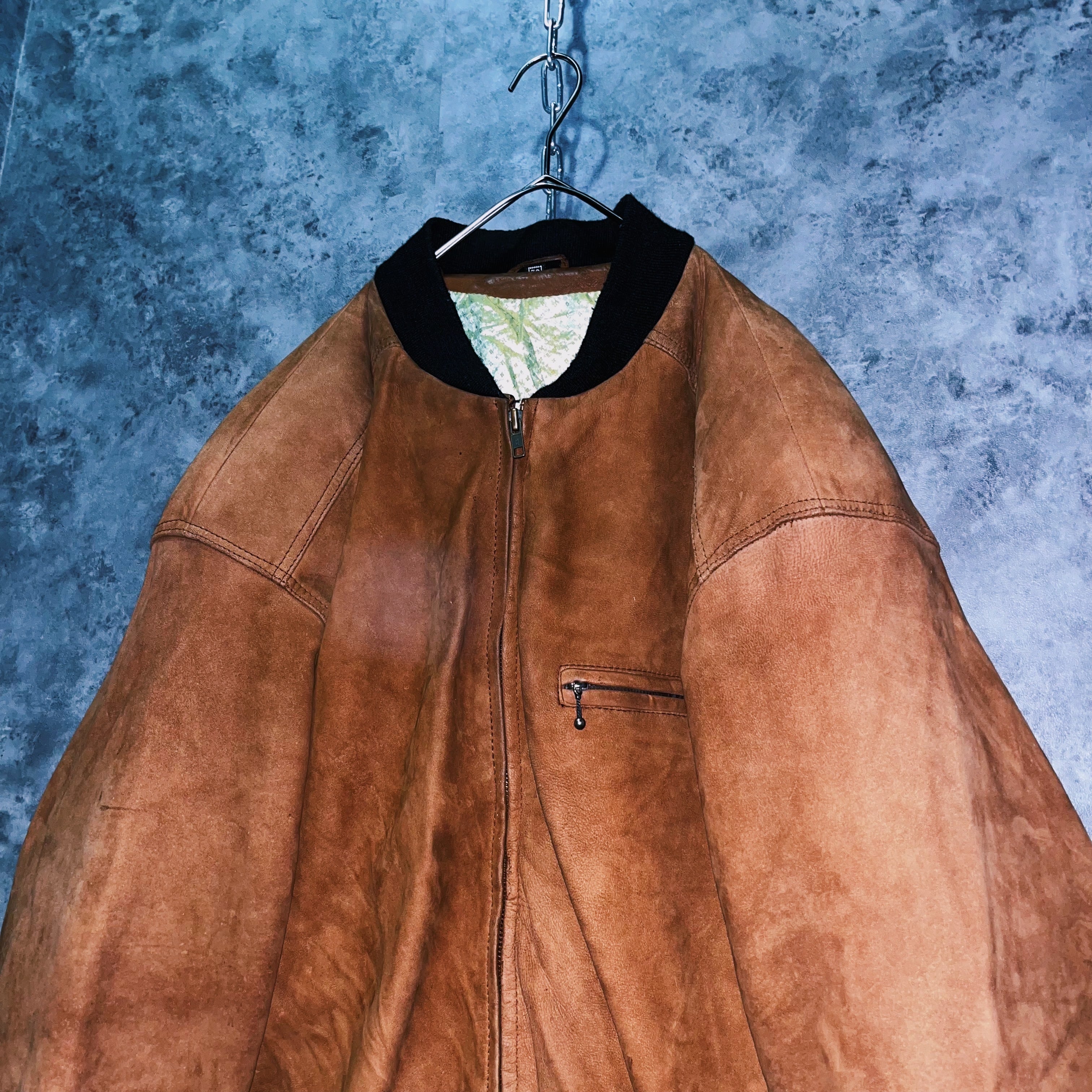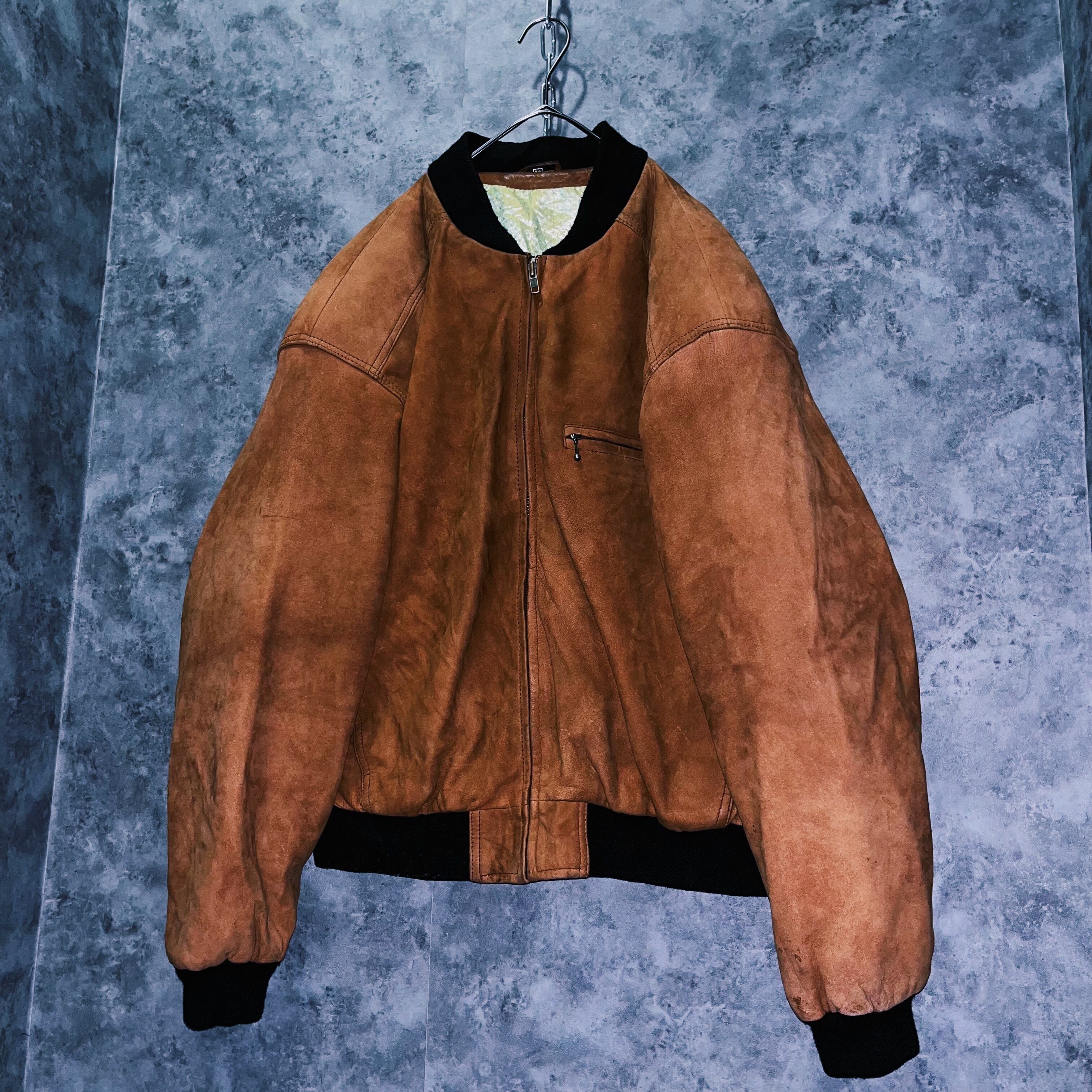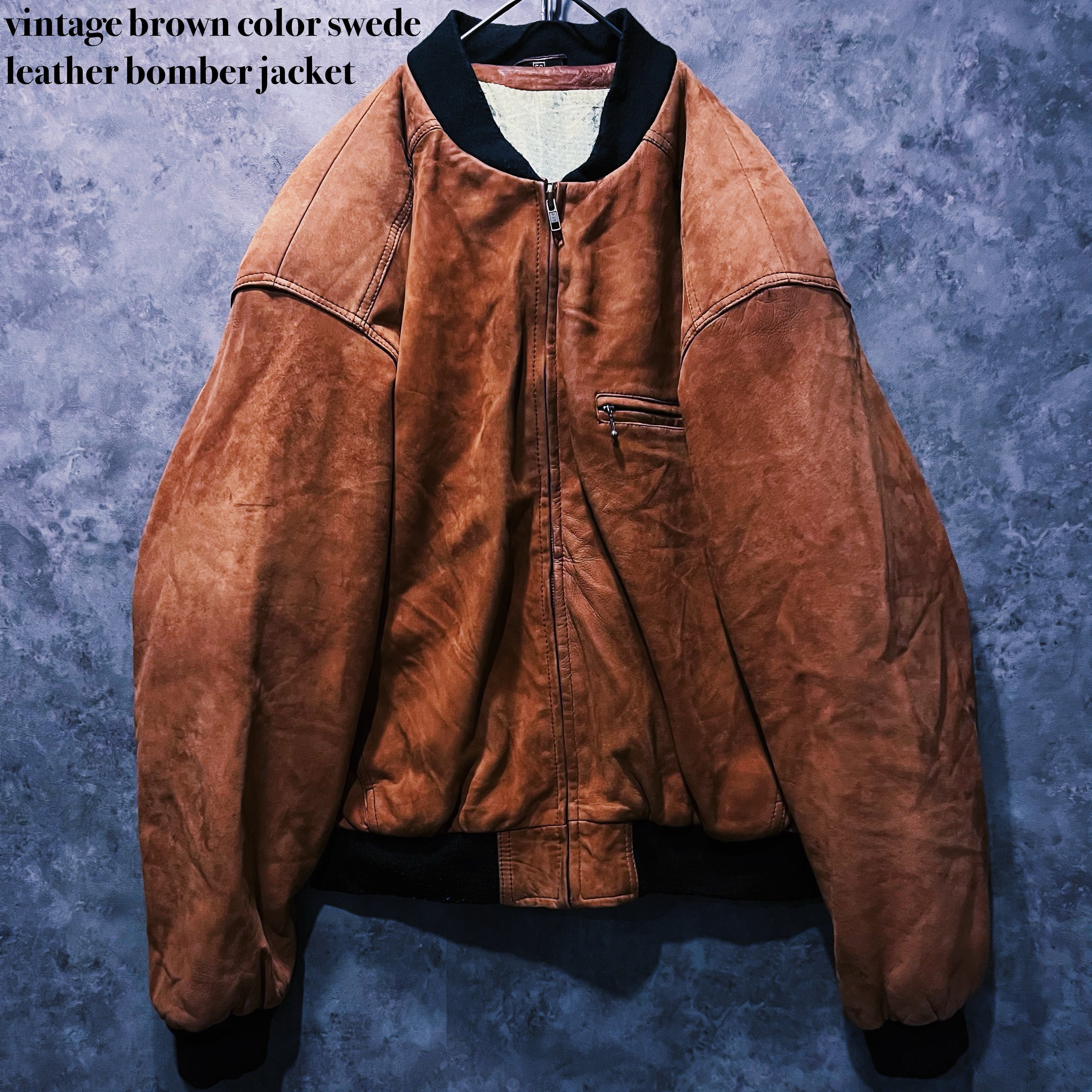 ヴィンテージブラウンカラースウェードレザーボンバージャケット