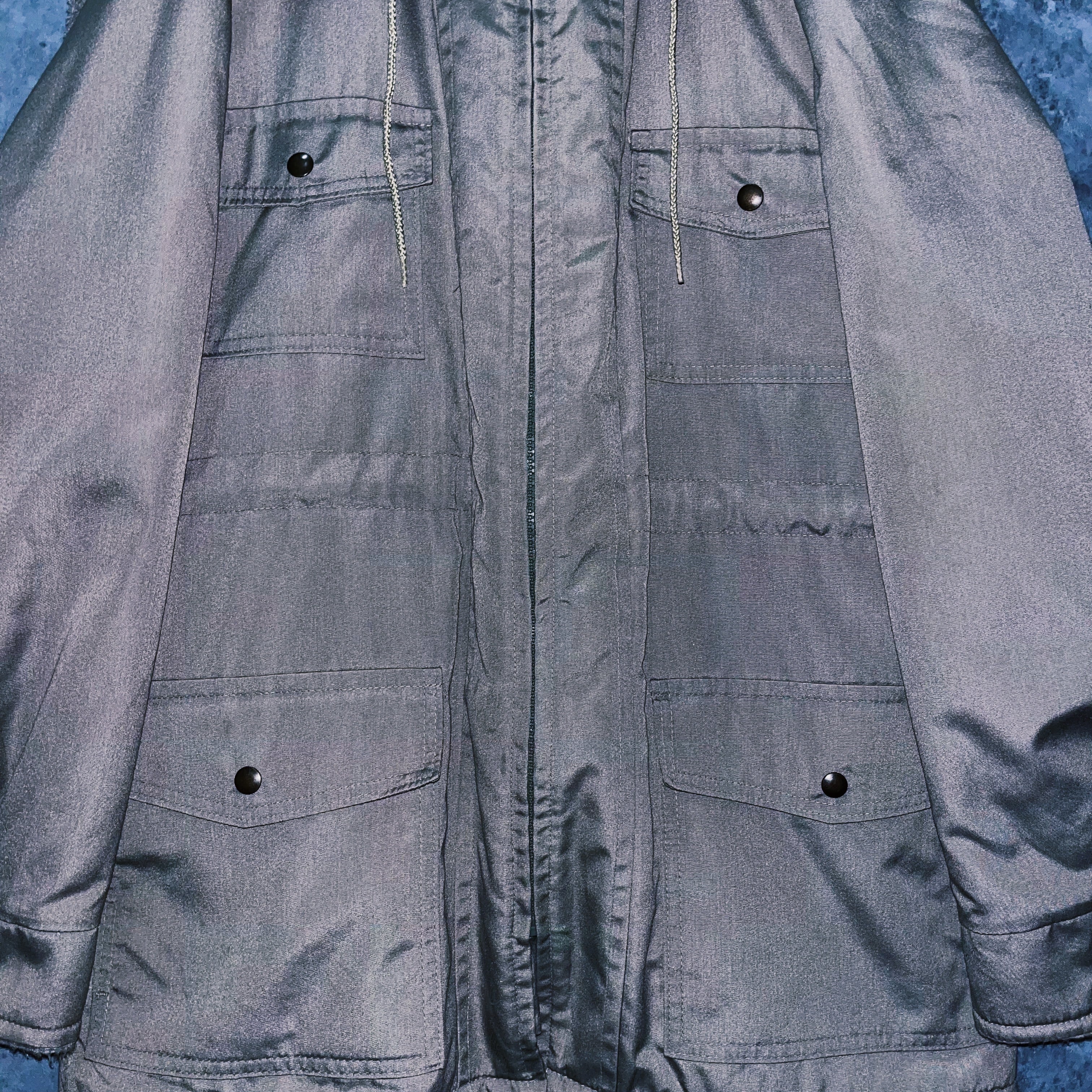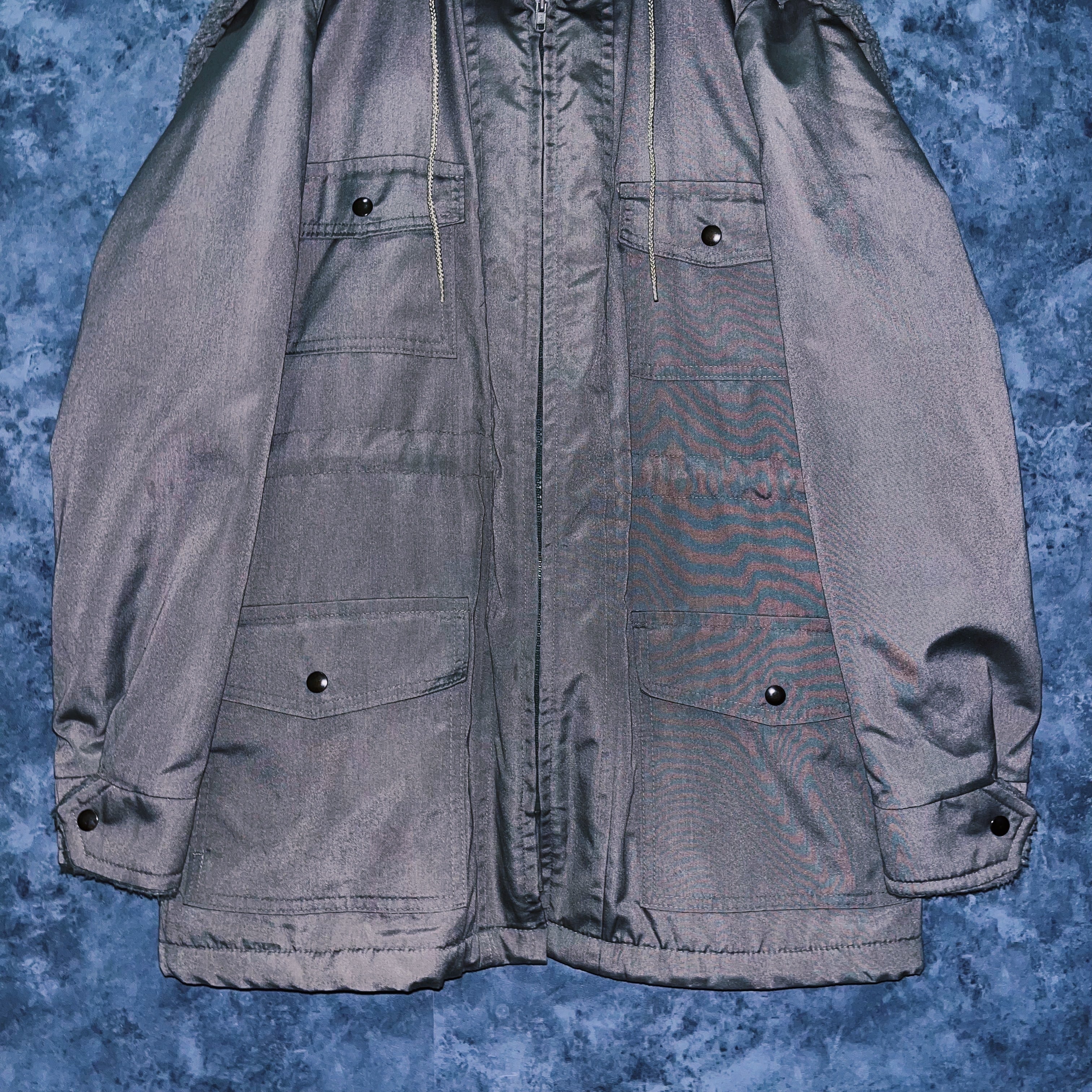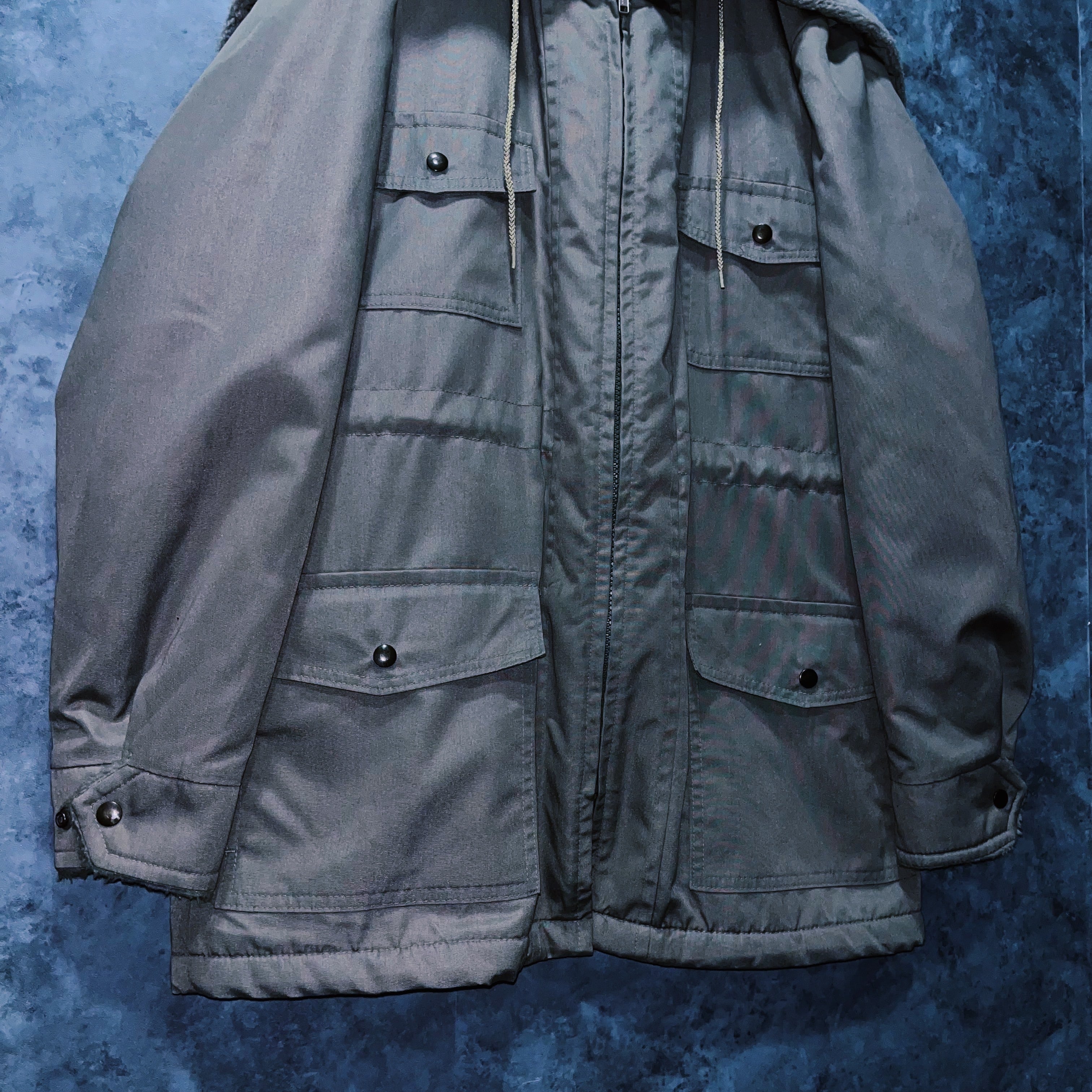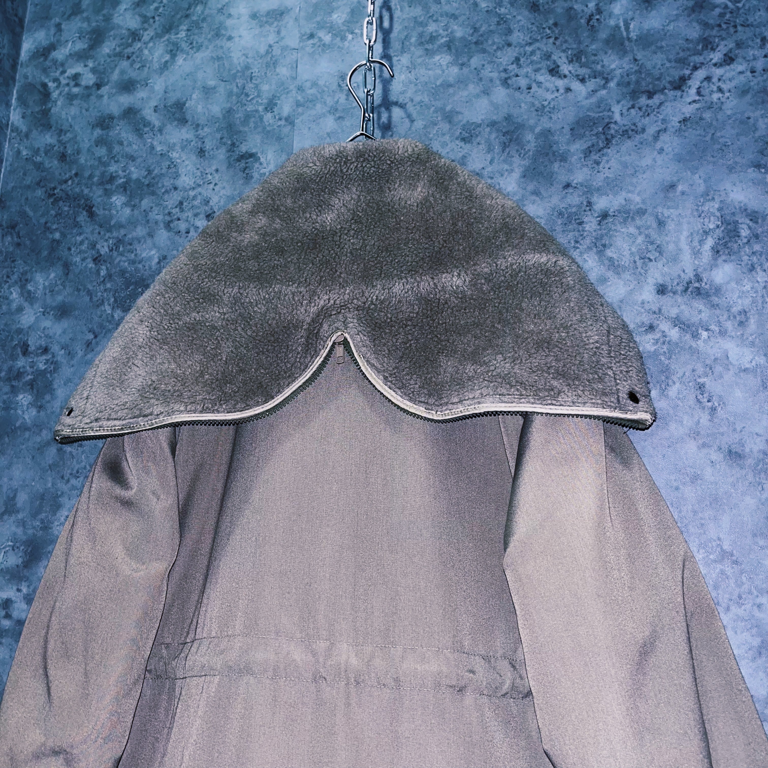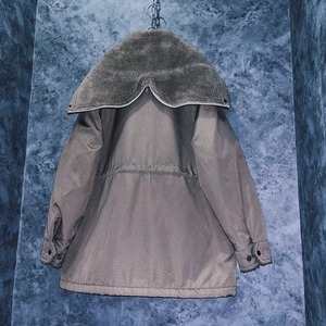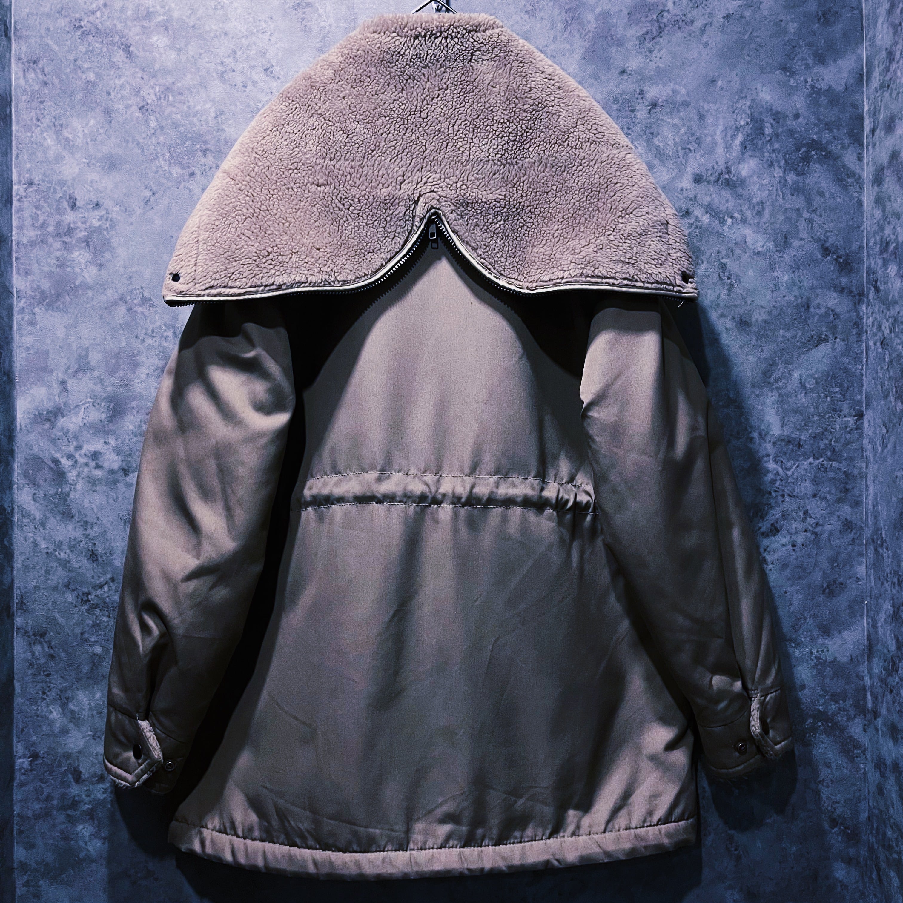 圧巻の70'sらしいデカ襟にファーが施されたミリタリーテイストのボアジャケット。セーラーになっておりジップを閉じてフーディーとしても着用可能な高性能なspecial item。
