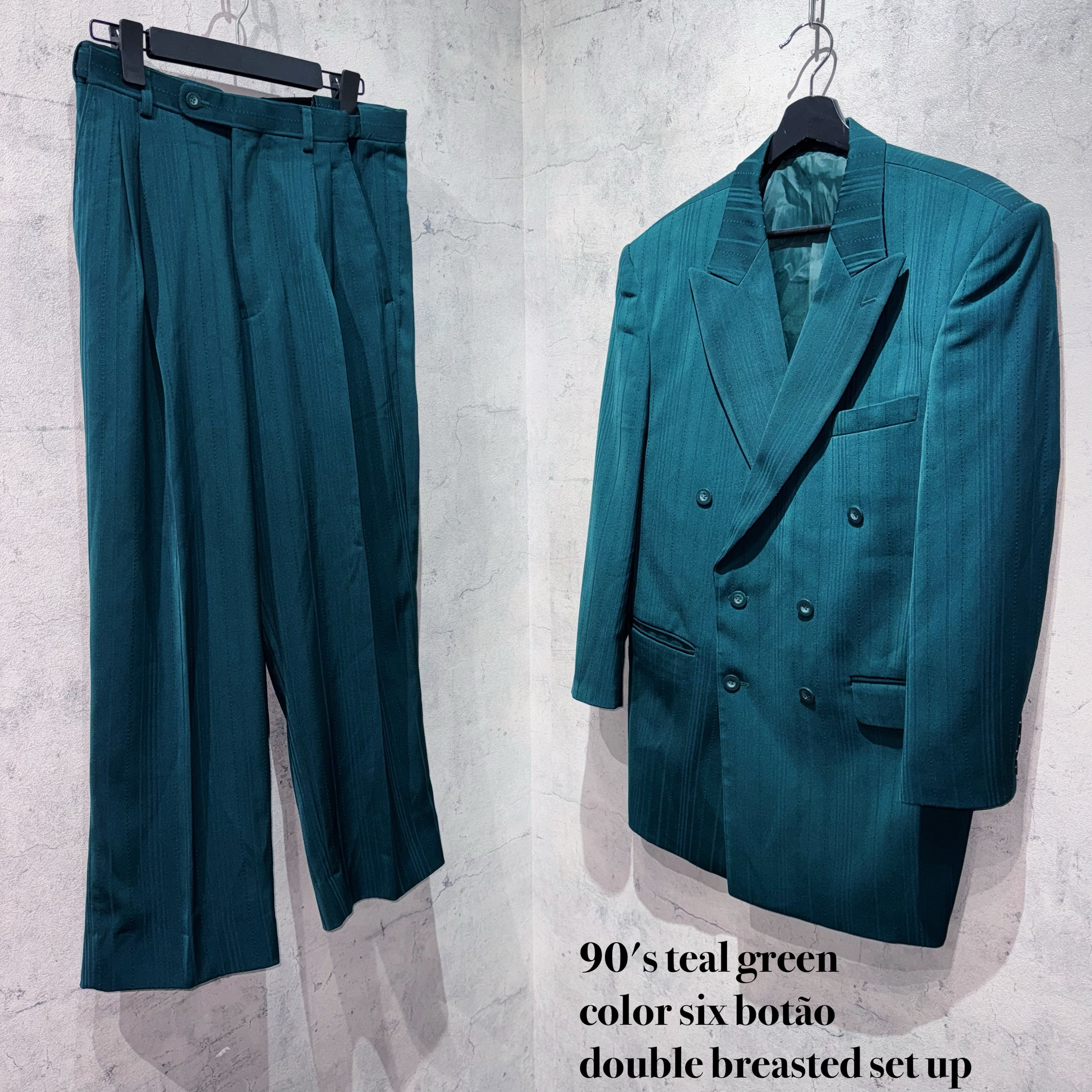 90年代テールグリーンカラーシックスボタンダブルブレストセットアップ