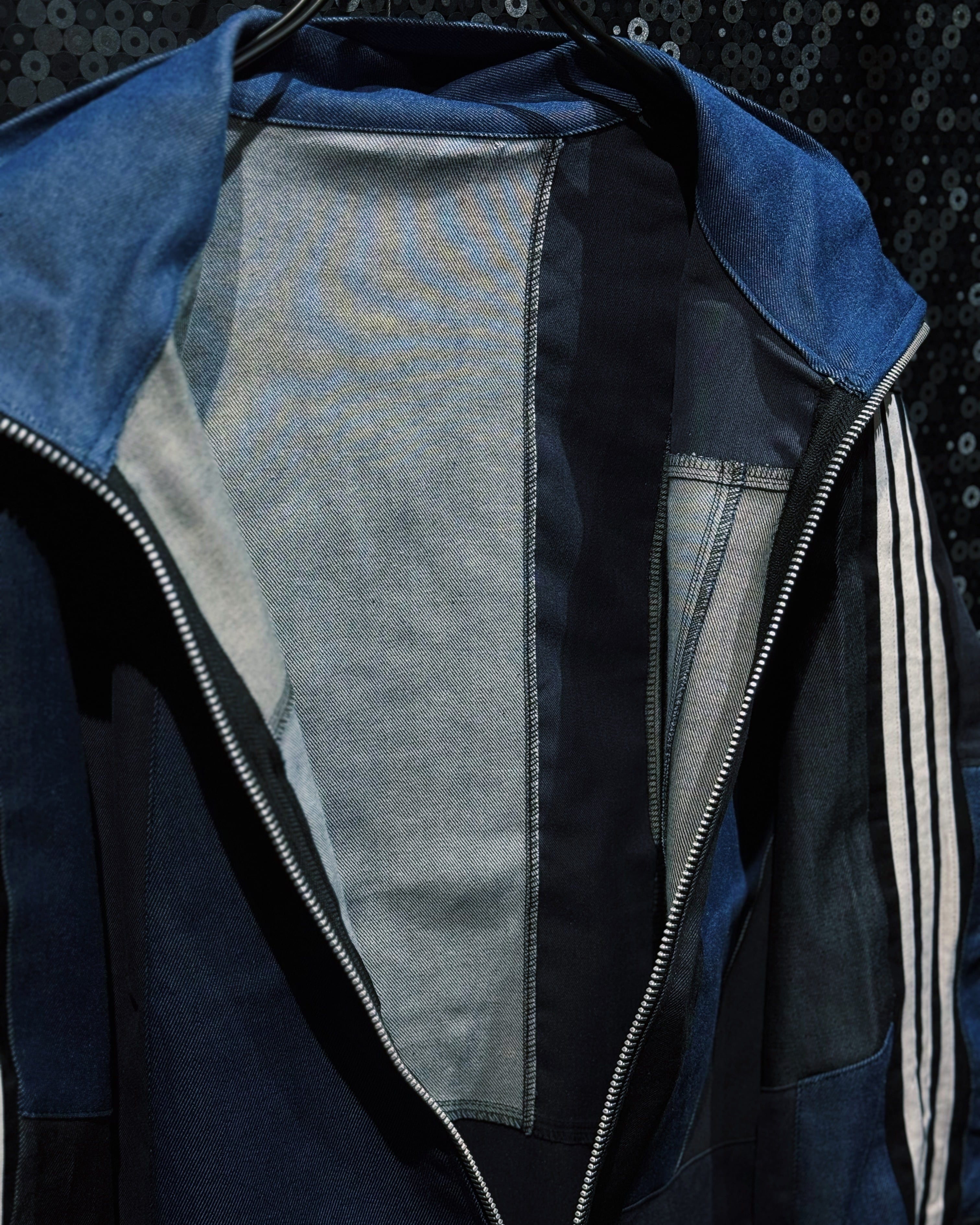 【ÆIEM】special" Original Re:make" denim patch work design stand neck track jacket
