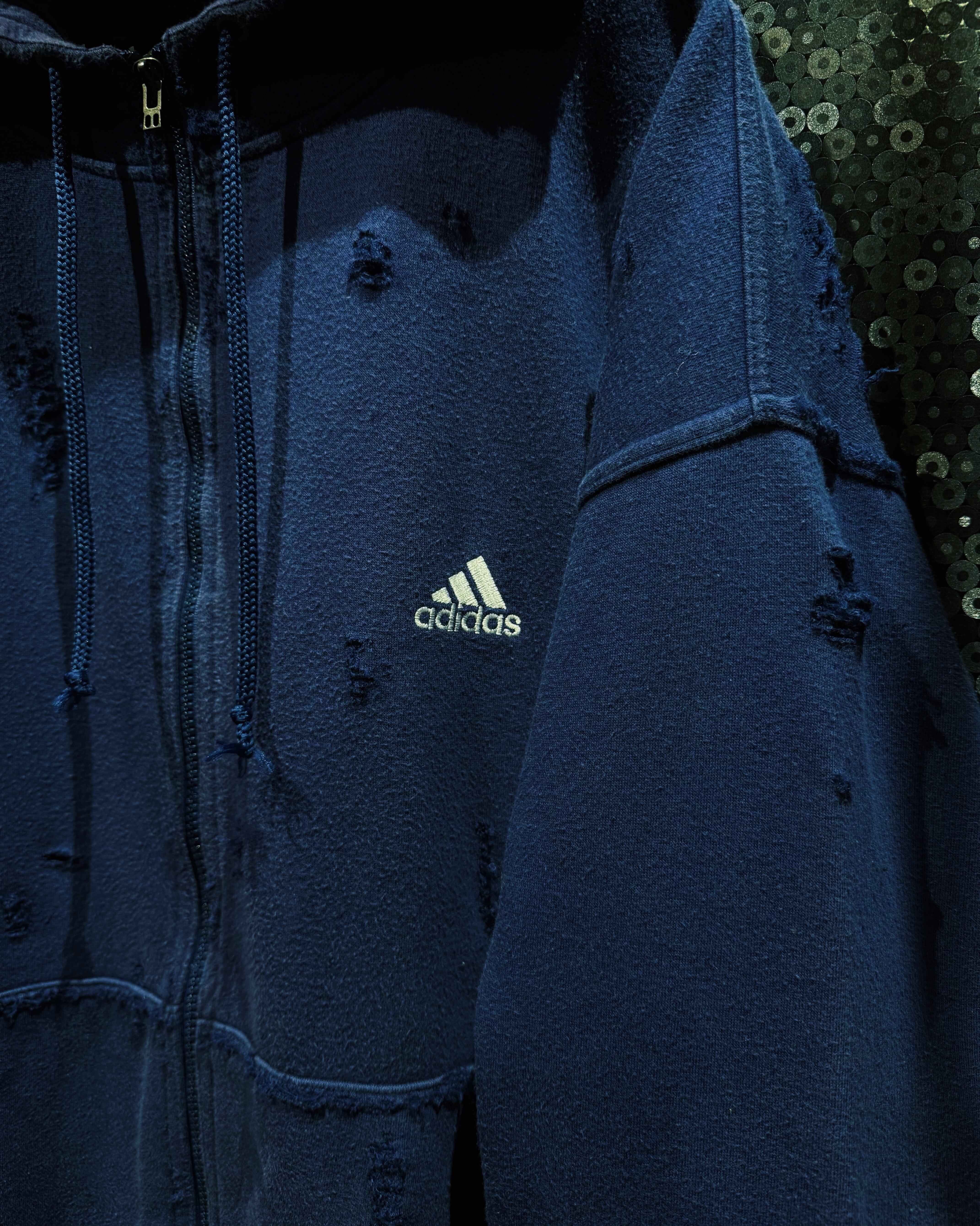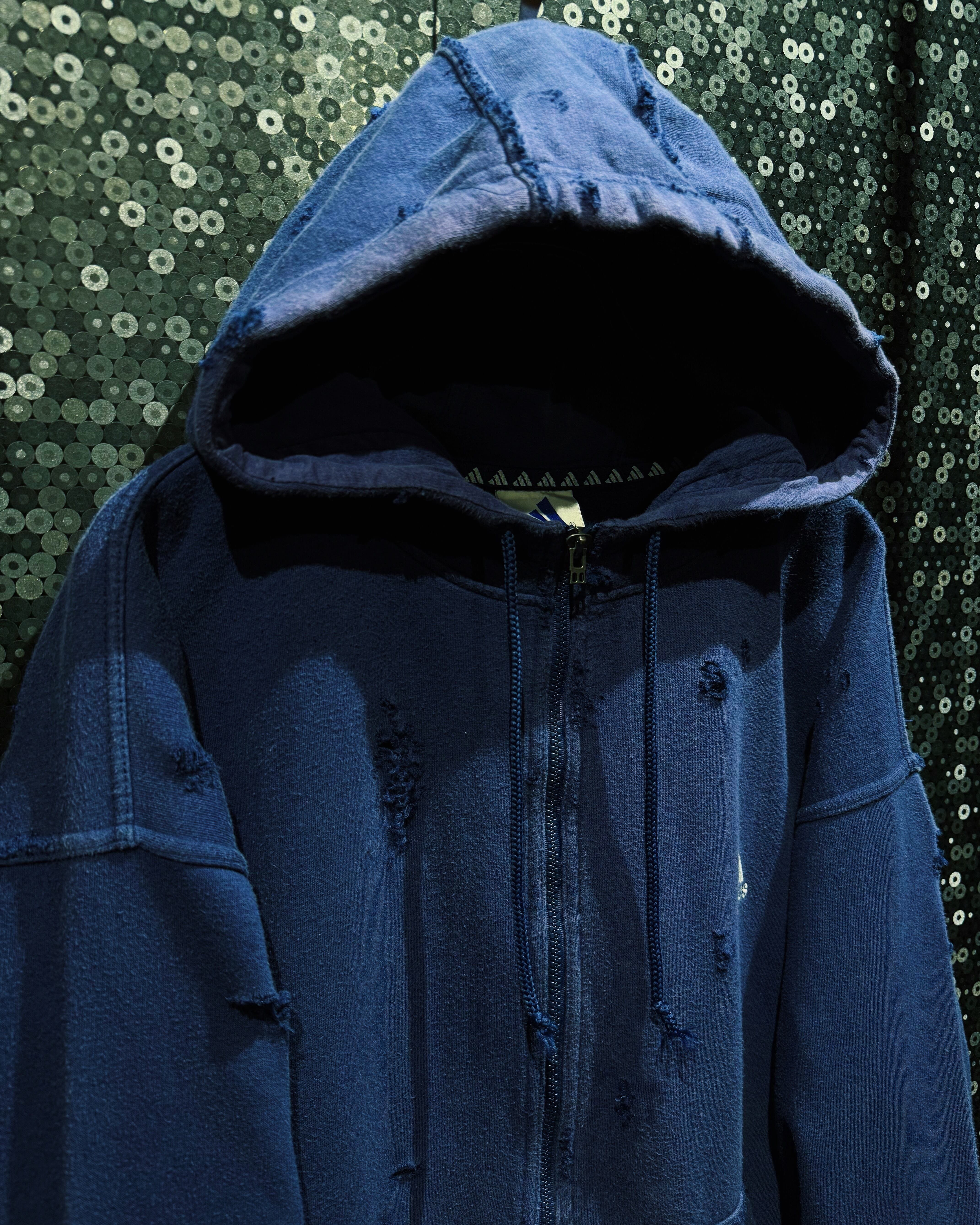 【ÆIEM】original boro re:make"adidas performance logo zip hoodie “deep navy aged”