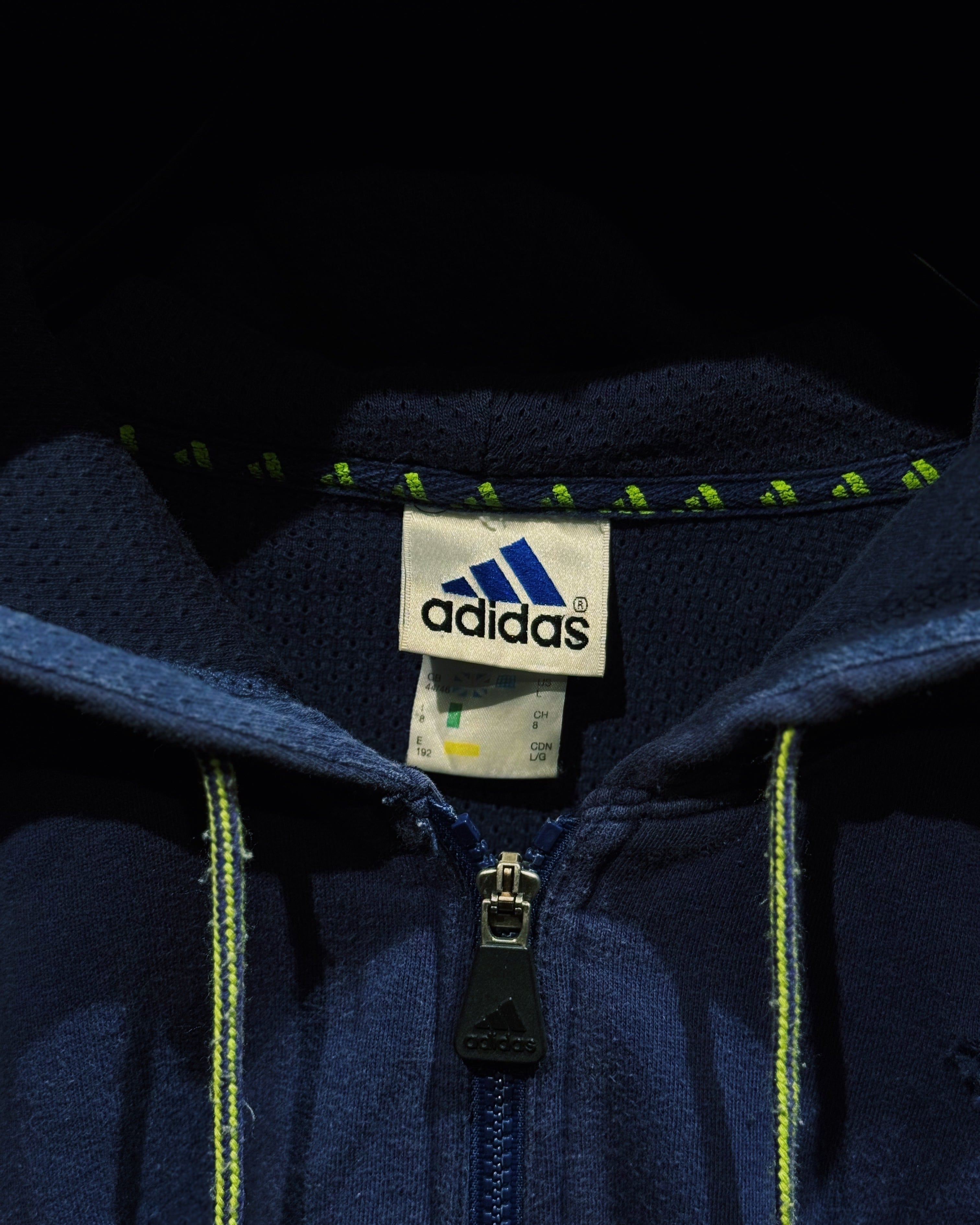 【ÆIEM】original"boro"remake"adidas performance logo hoodie “navy × lime accent”