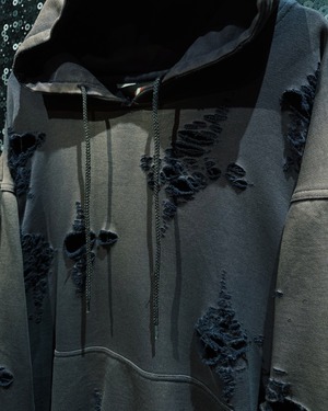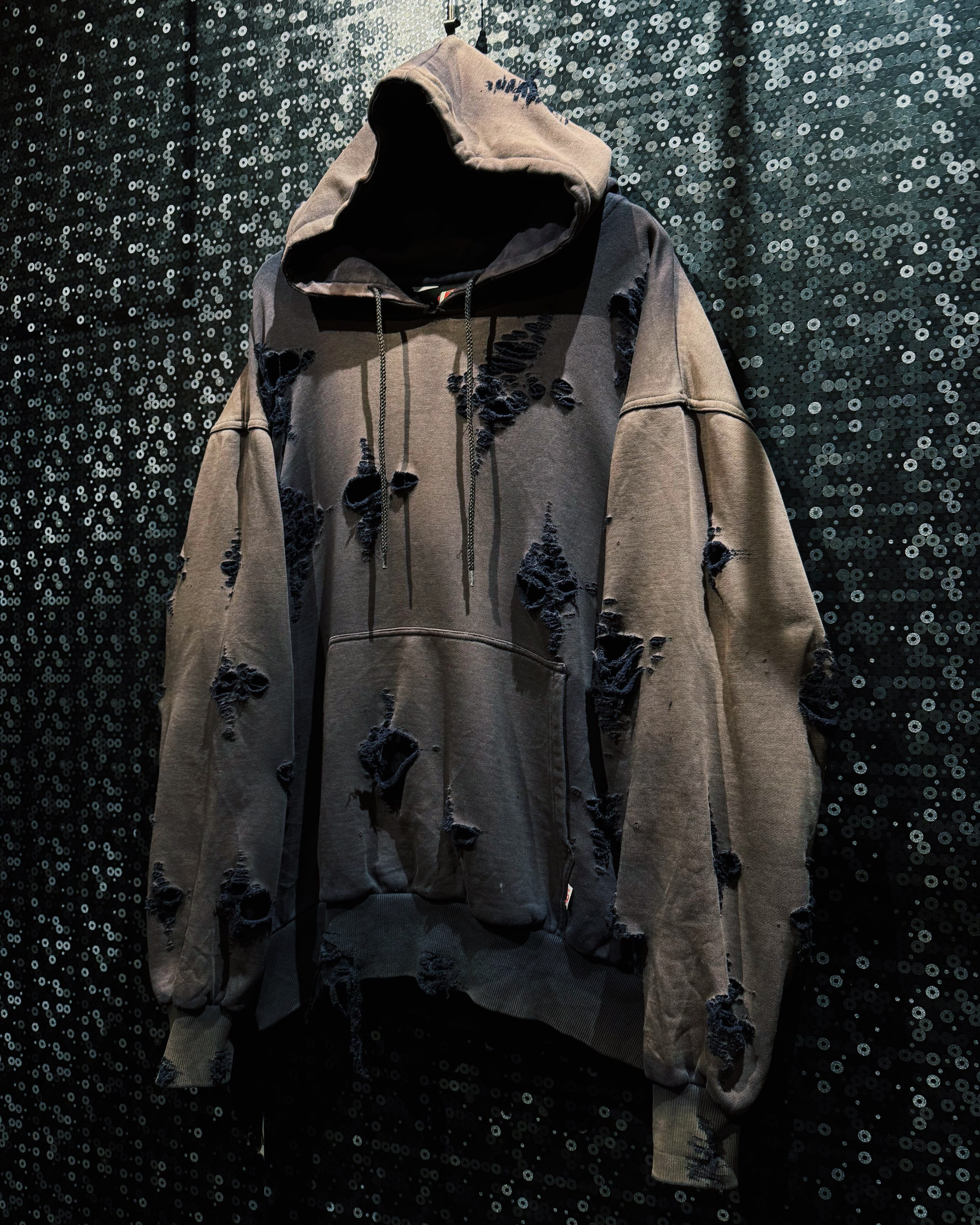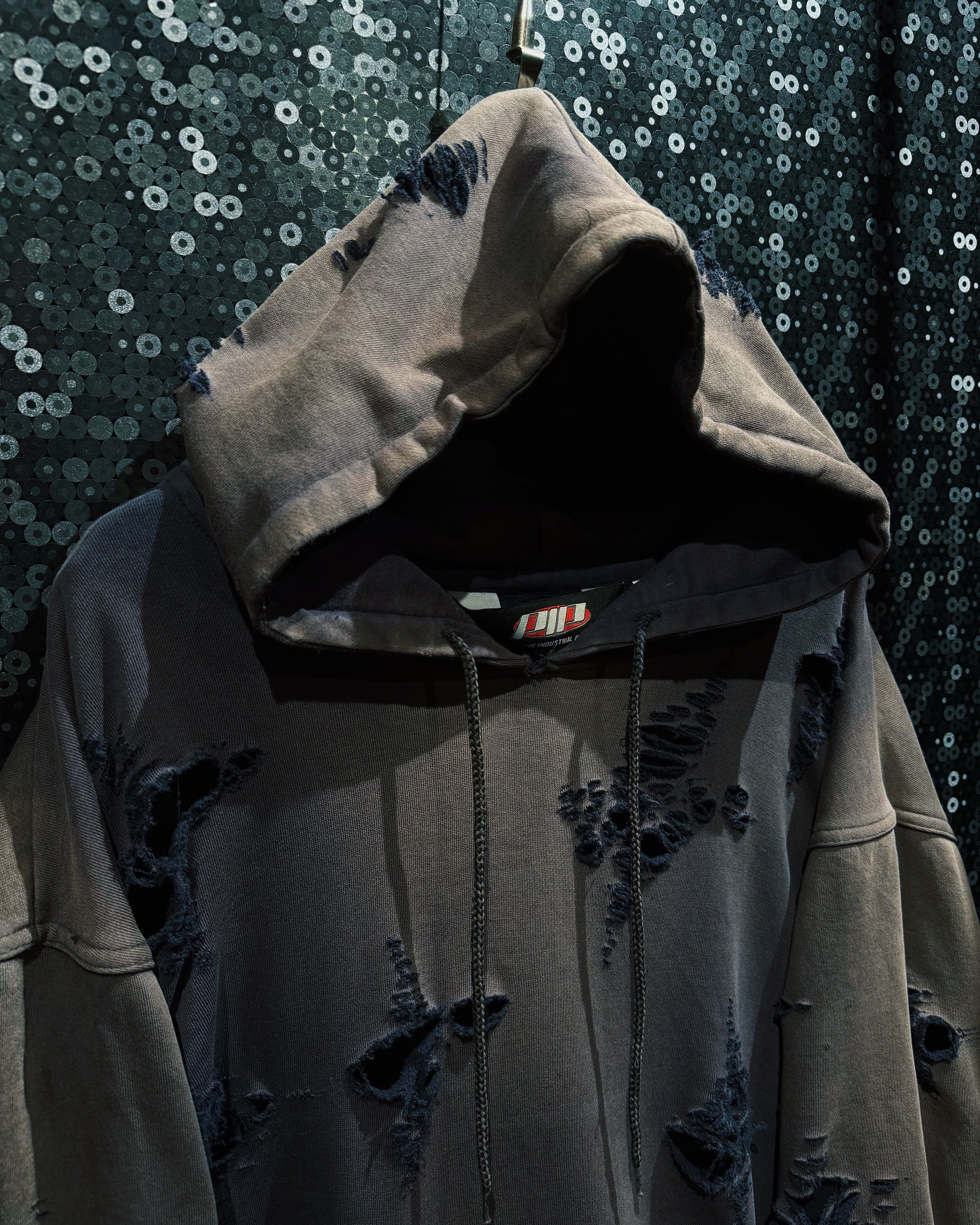 【ÆIEM】original"boro"remake"“INDUSTRIAL PROJECT “charcoal fade edition”fade boro distressed hoodie
