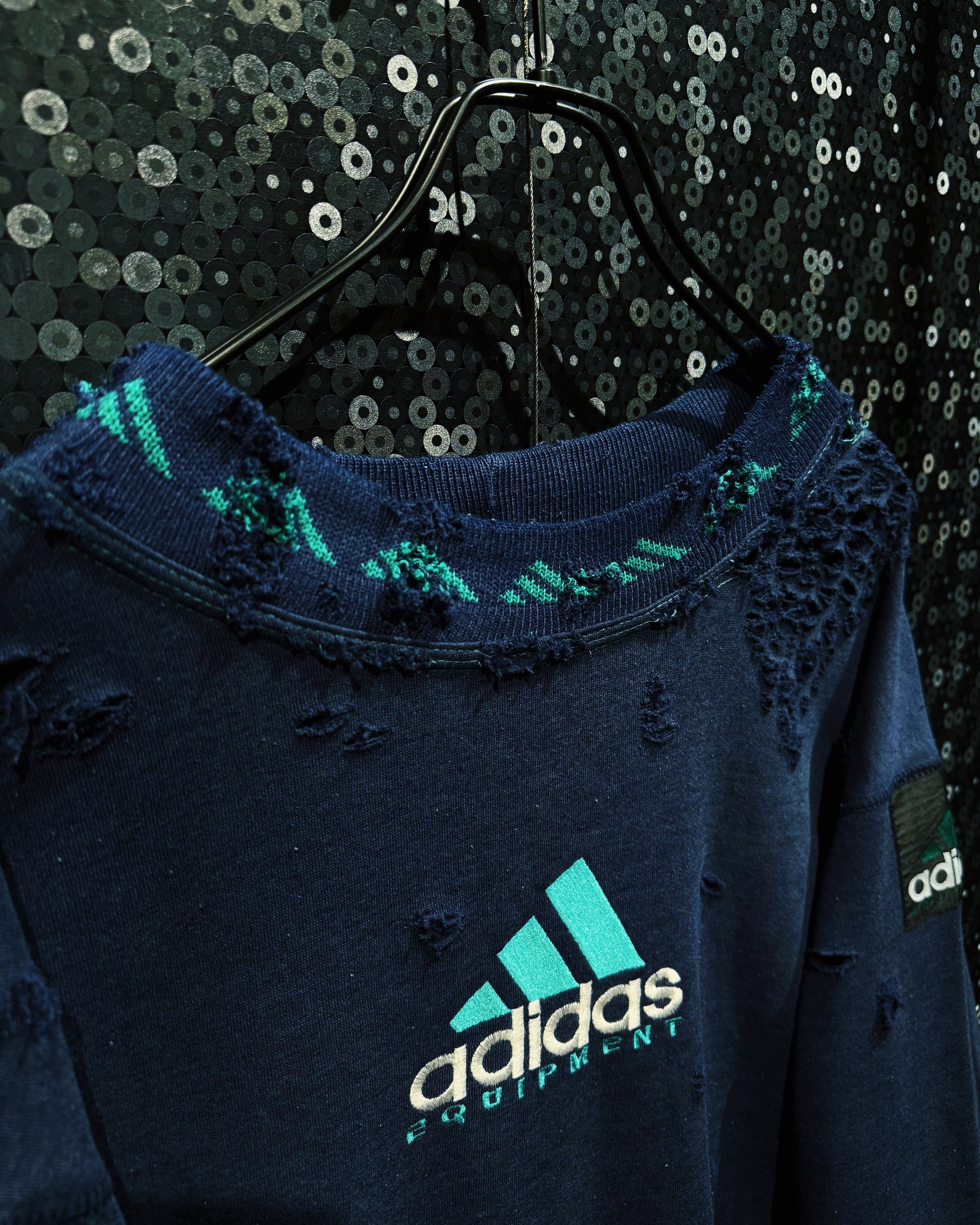 【ÆIEM】original"boro"remake"adidas equipment mock neck distressed sweat