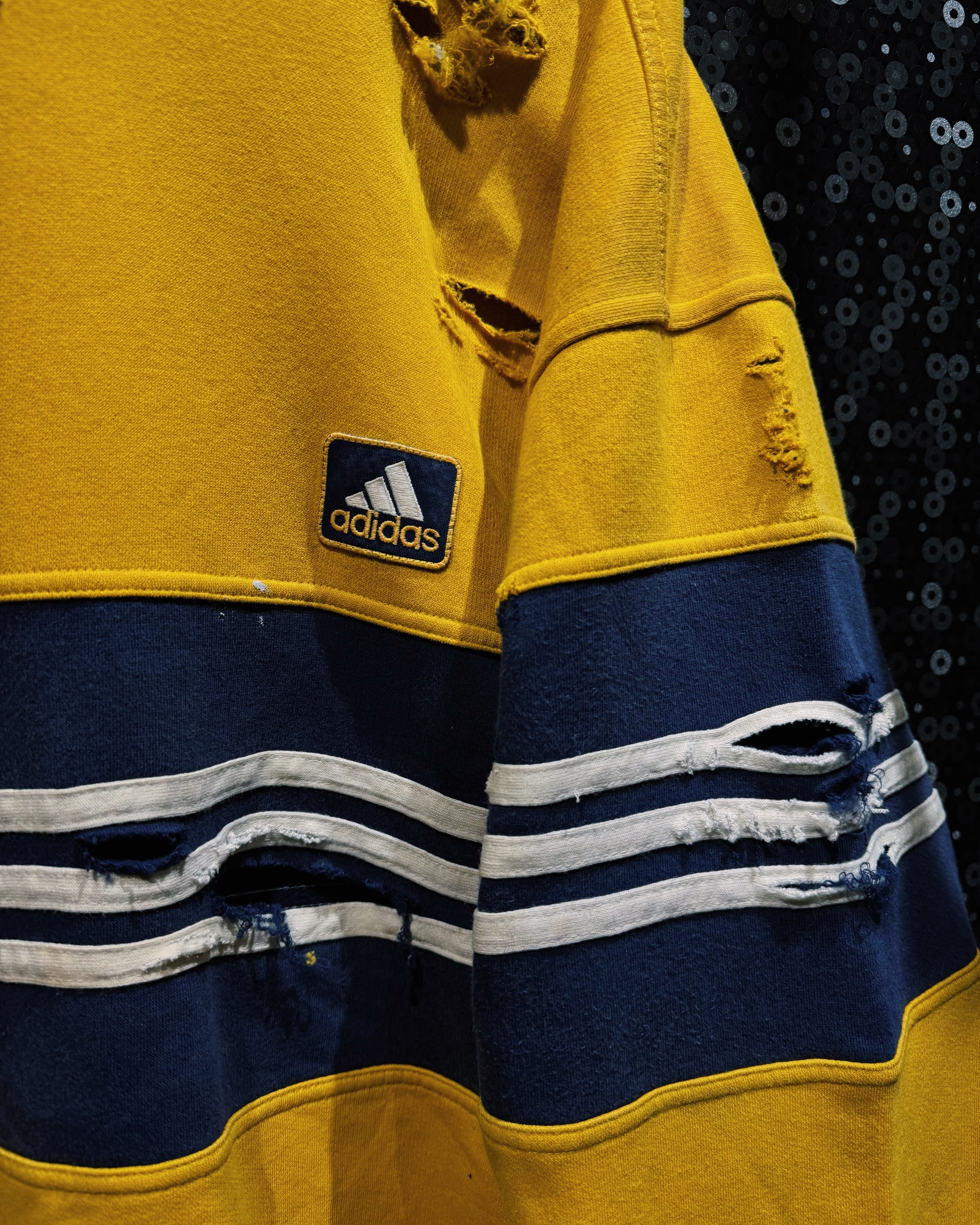 【ÆIEM】original"boro"remake"adidas performance logo 3-line color block distressed sweat “navy × mustard gold”