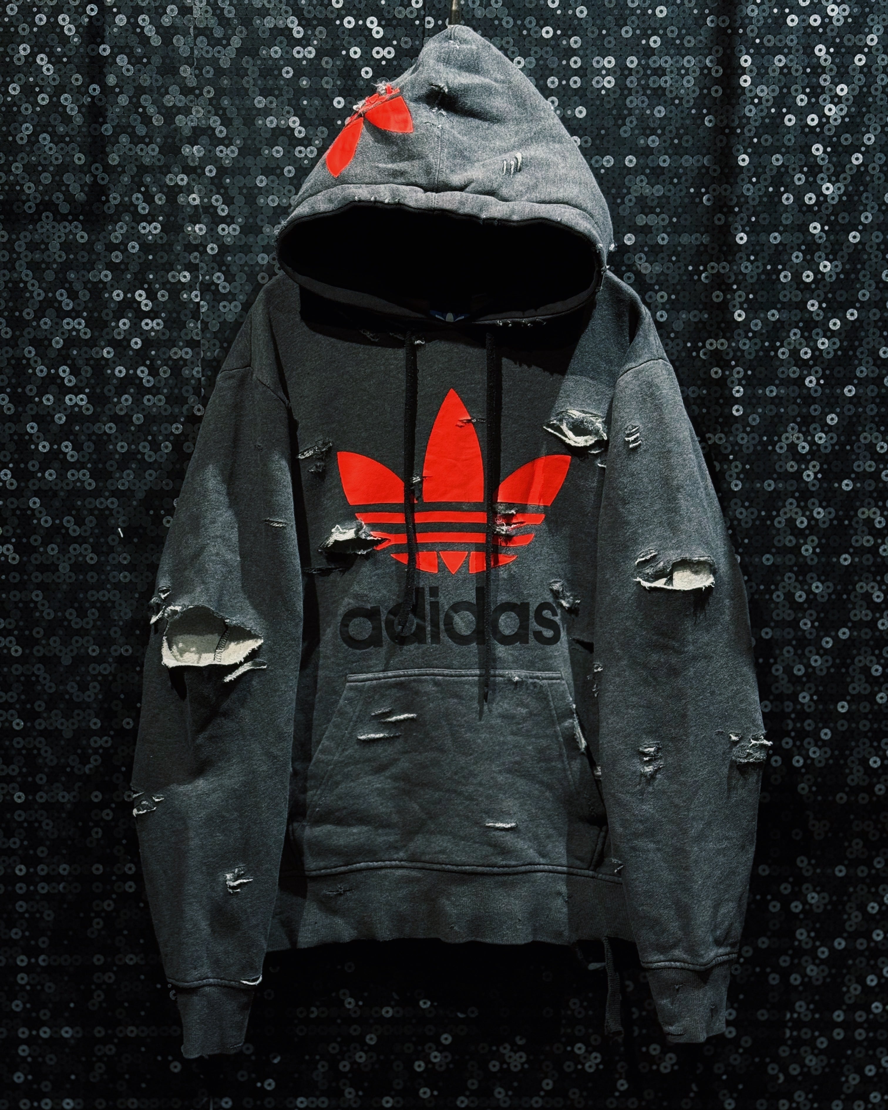 【ÆIEM】original"boro"remake"adidas originals trefoil logo distressed gray hoodie