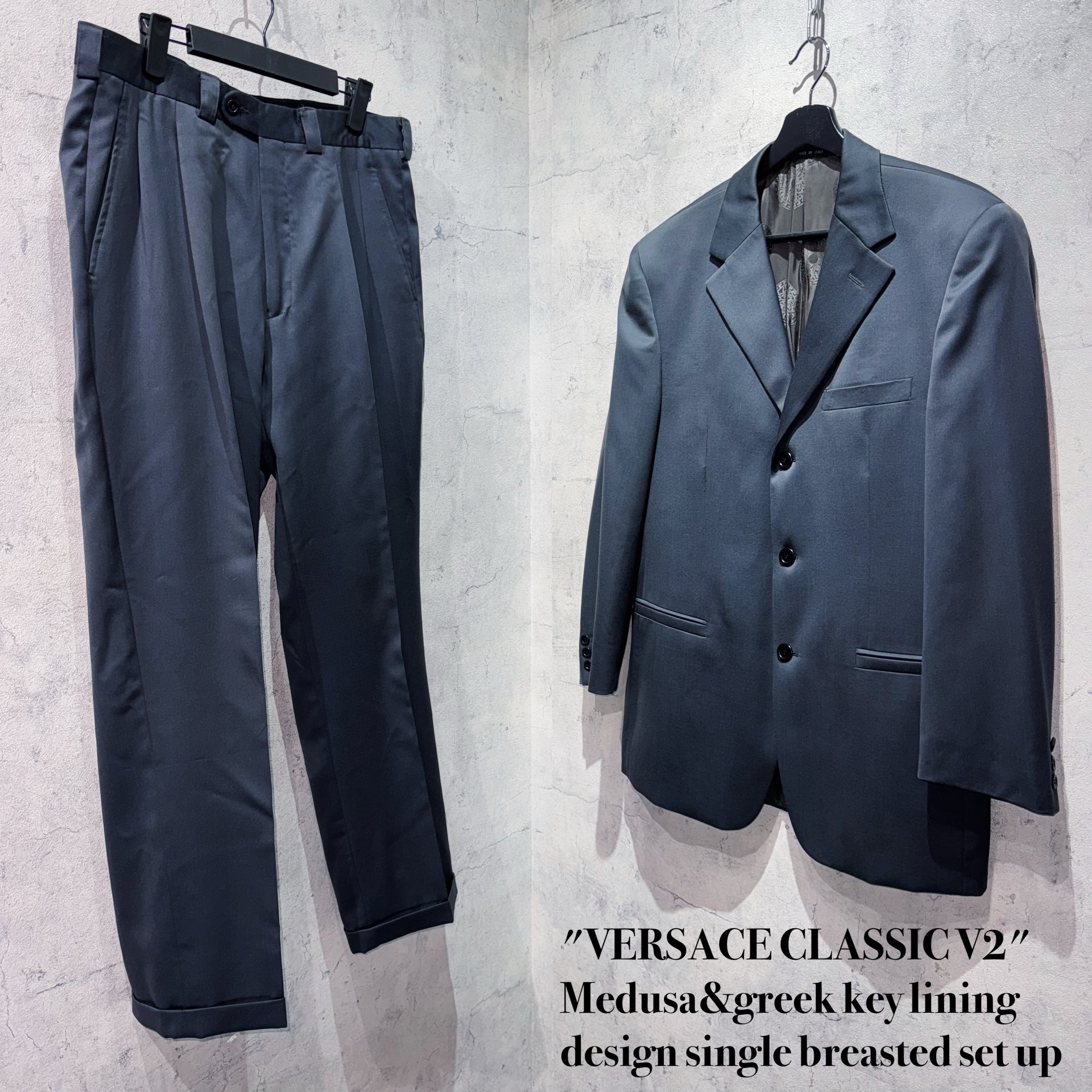 "ヴェルサーチクラシックV2"メデューサ&グリークキーライニングデザインシングルブレストセットアップ