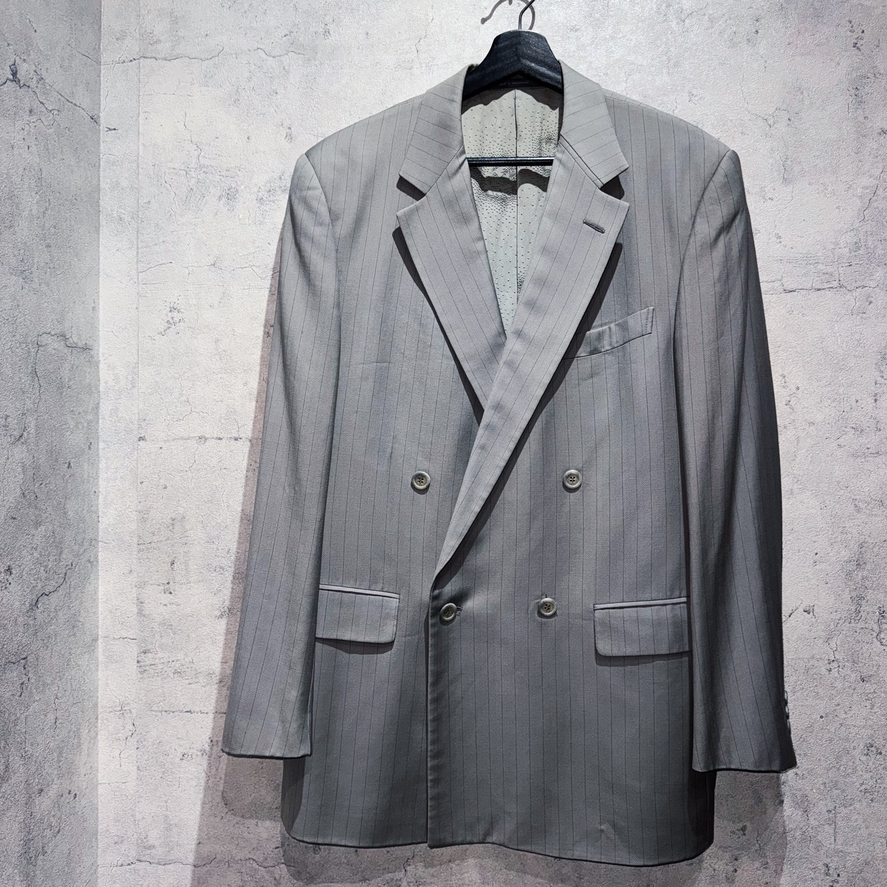 "ジャンニヴェルサーチ"メデューサエンブロイダリーライニングデザインダブルブレストストライプセットアップ