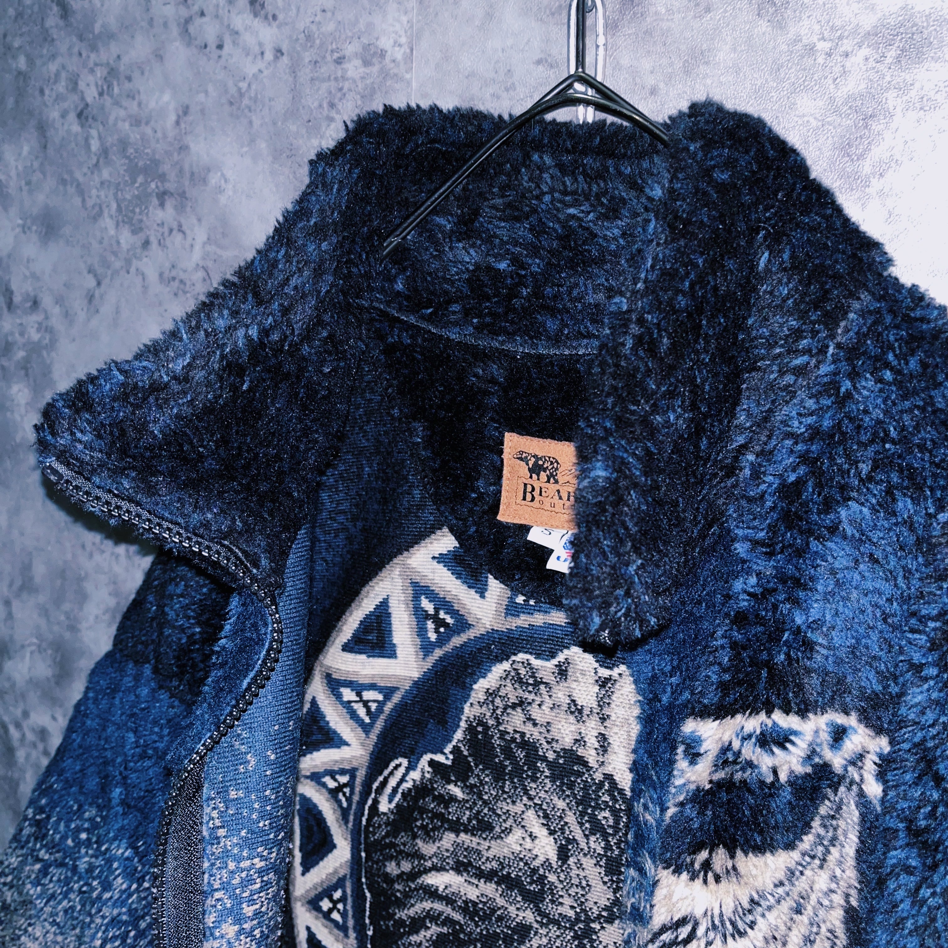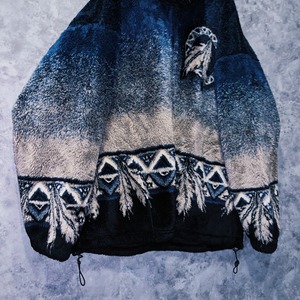 ヴィンテージネイティブアメリカンデザインジップアップフリースジャケット