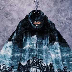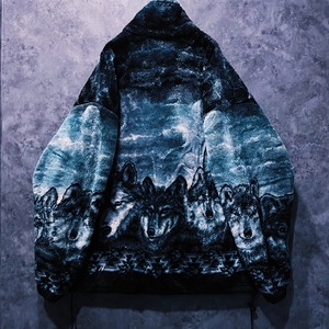 【 doppio】vintage pack of wolfs design zip up fleece jacket