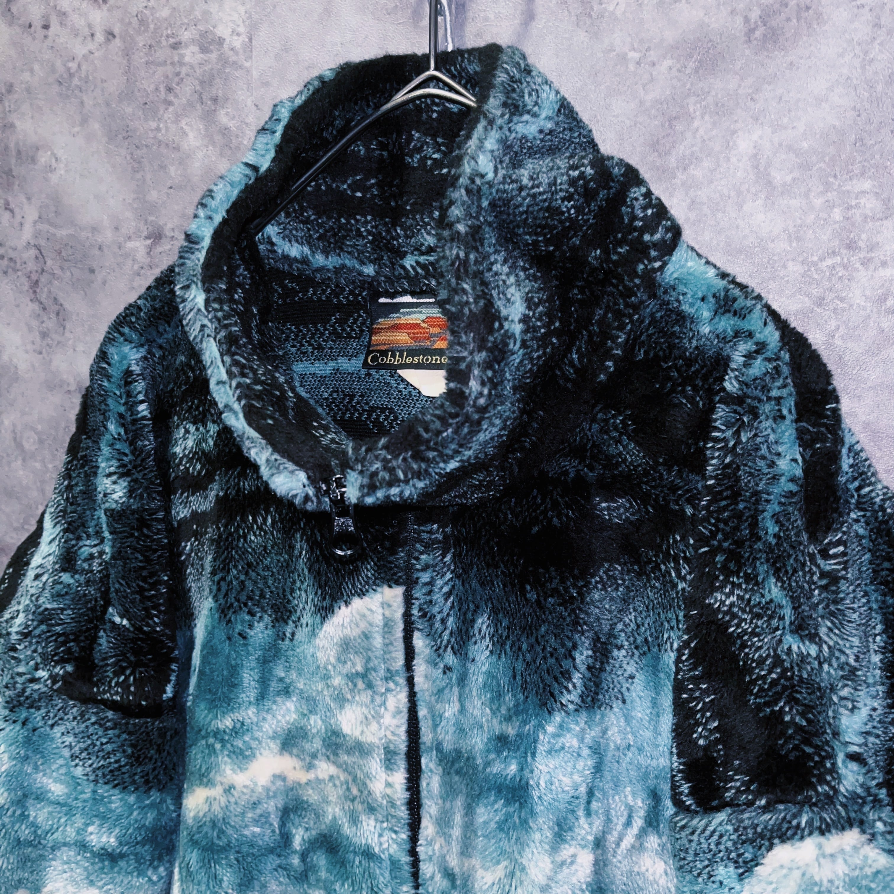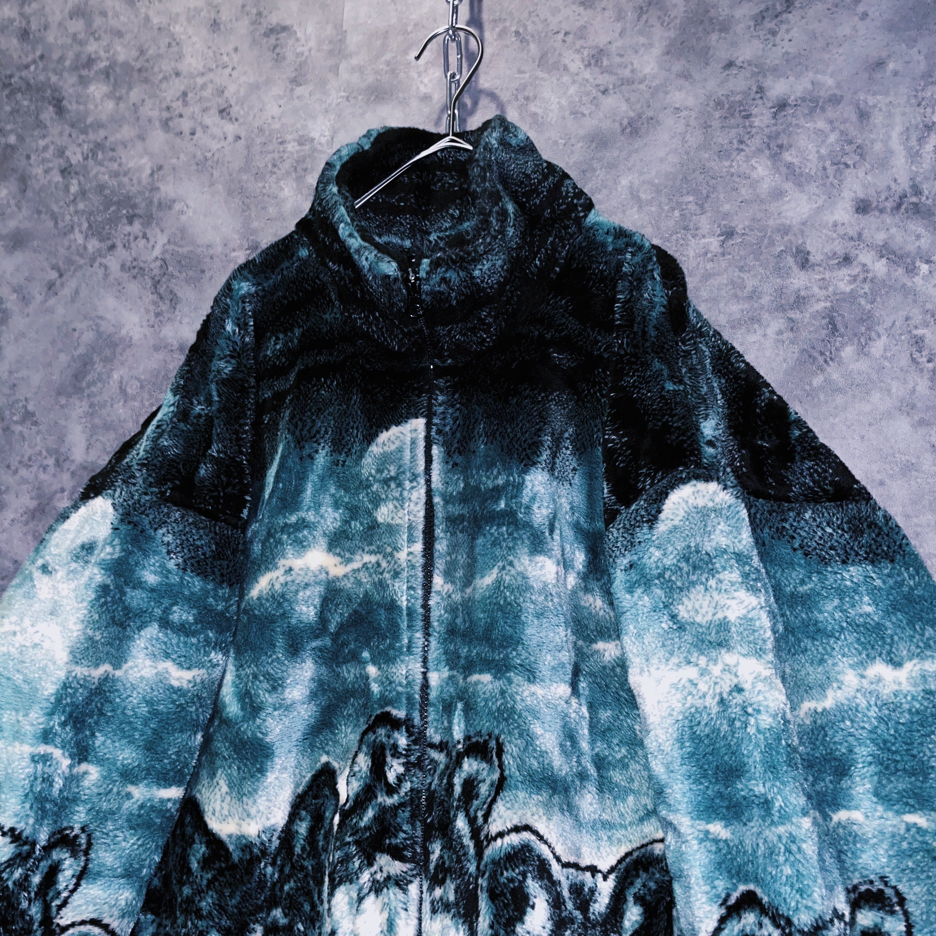 ヴィンテージウルフデザインジップアップフリースジャケット